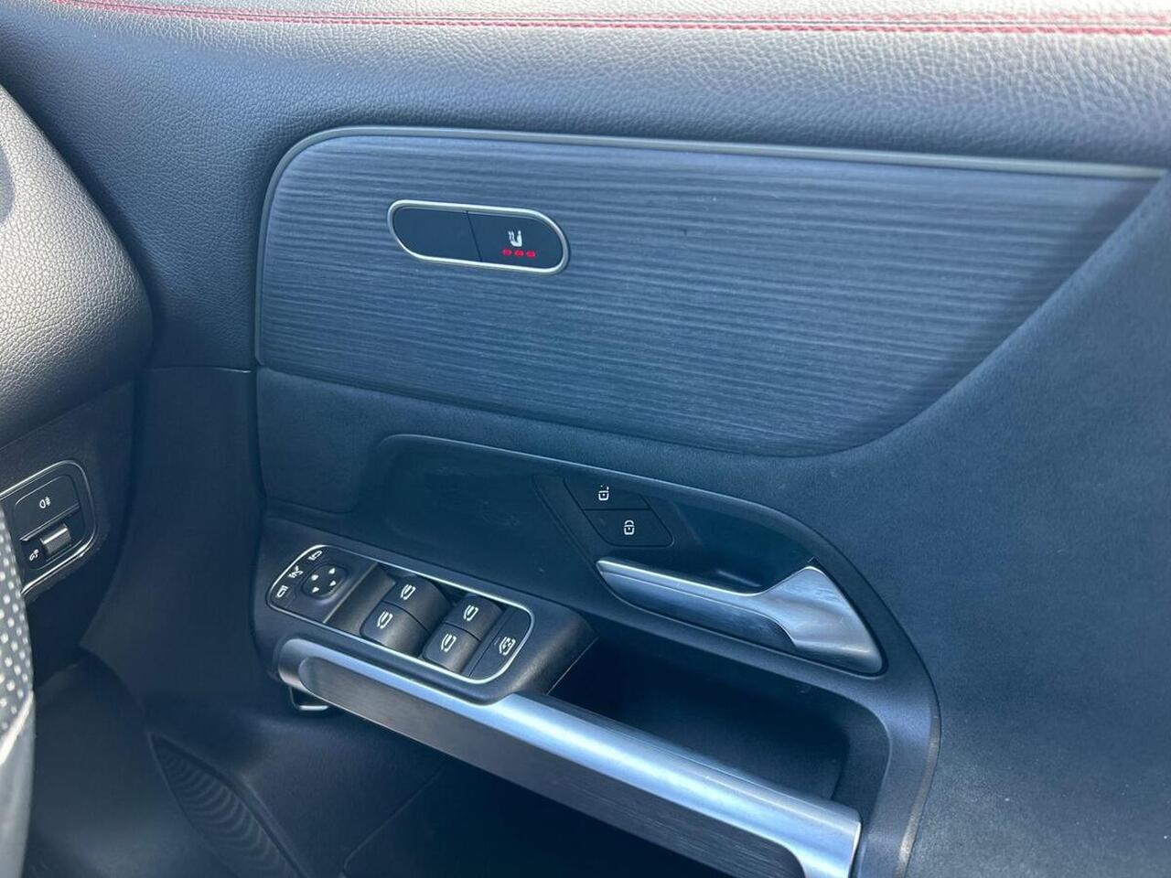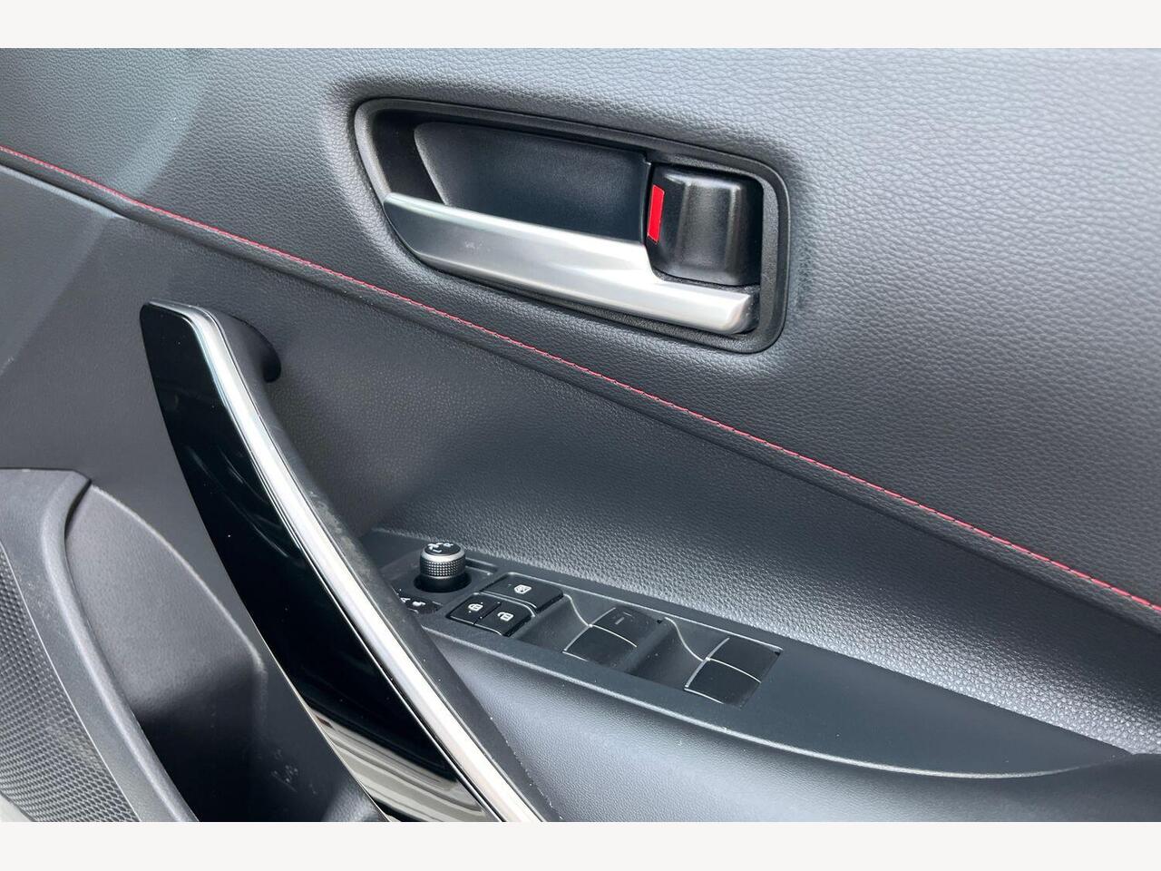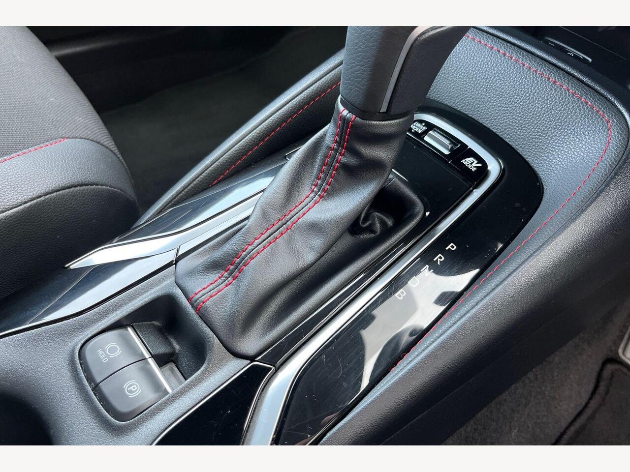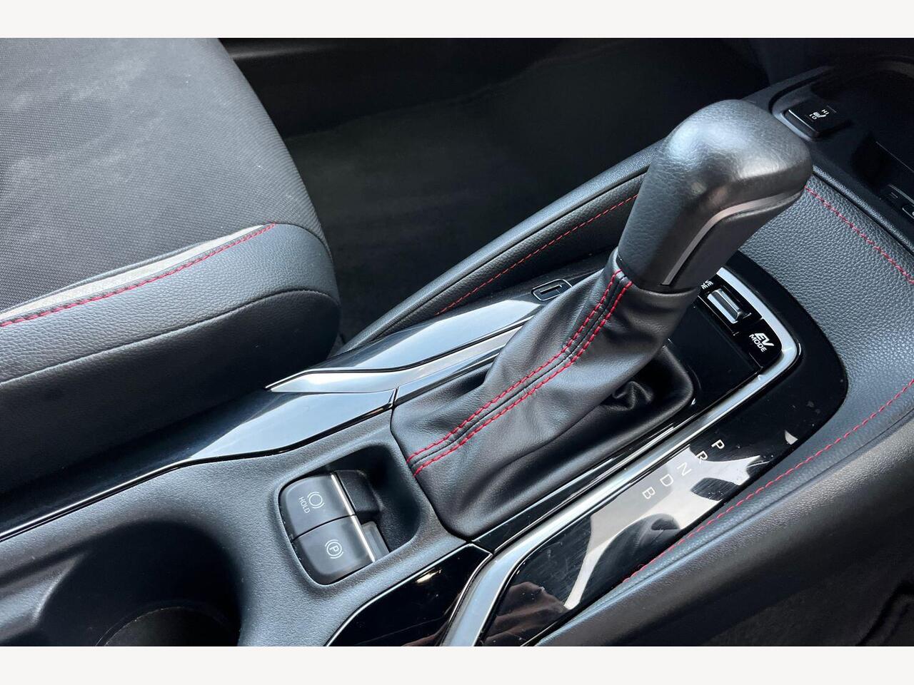 "Red stitching on gear shift",
