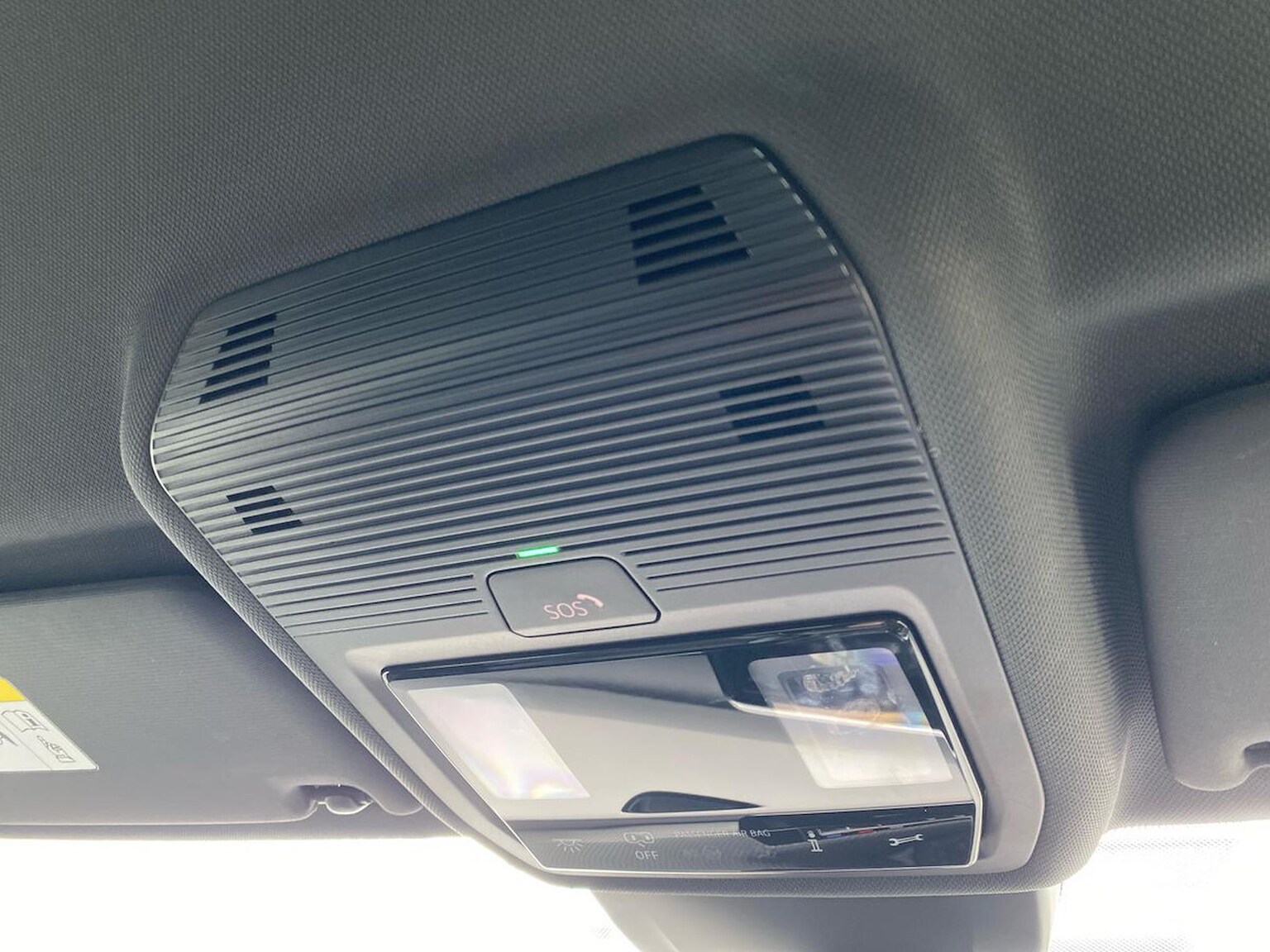 "Sunvisors with illuminated vanity mirrors and ticket pocket",