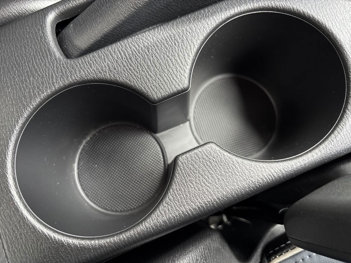 "2 front cupholder in centre console with clamping elements and matt black inlay",