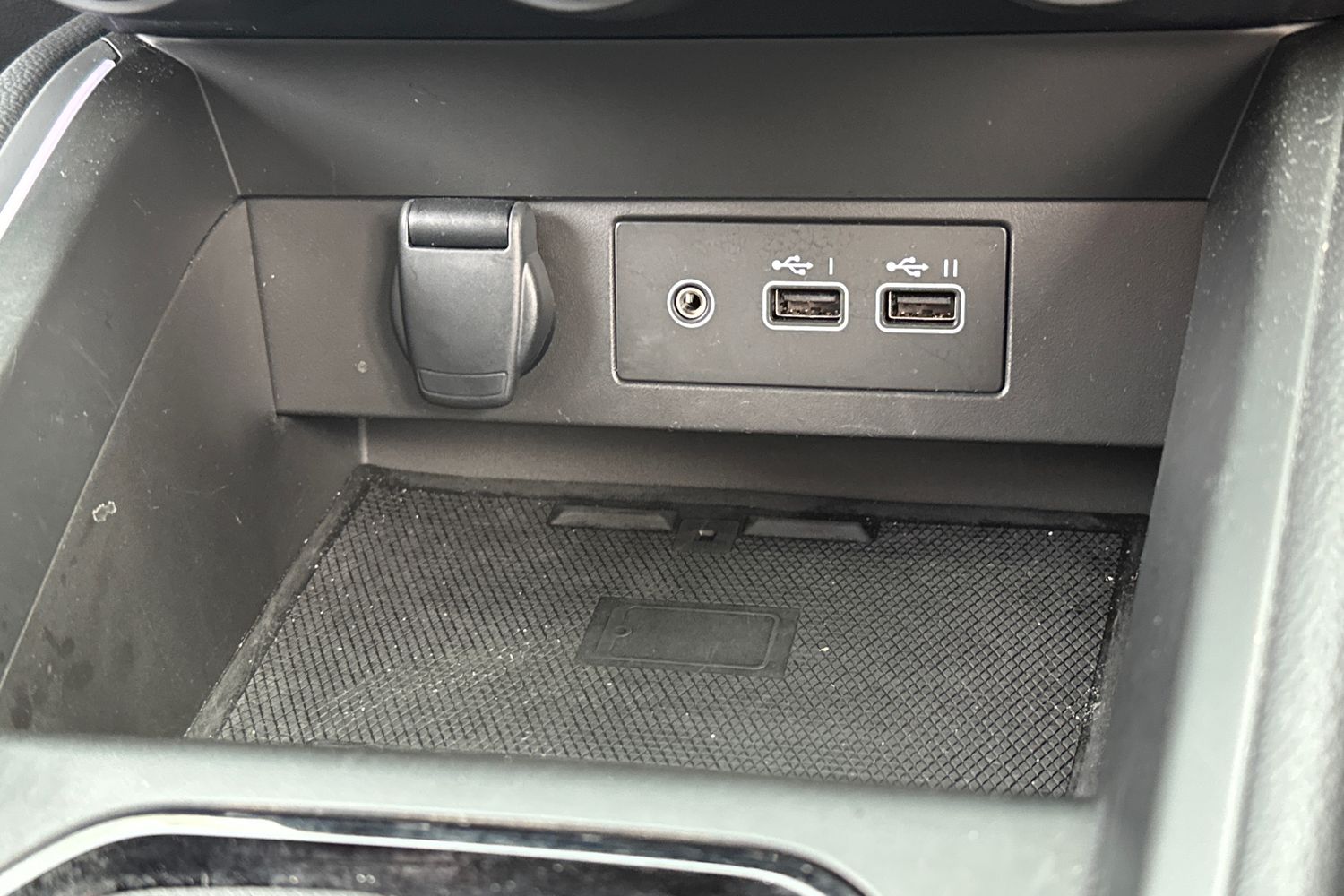 "Storage tray and compartment with cover in centre console",