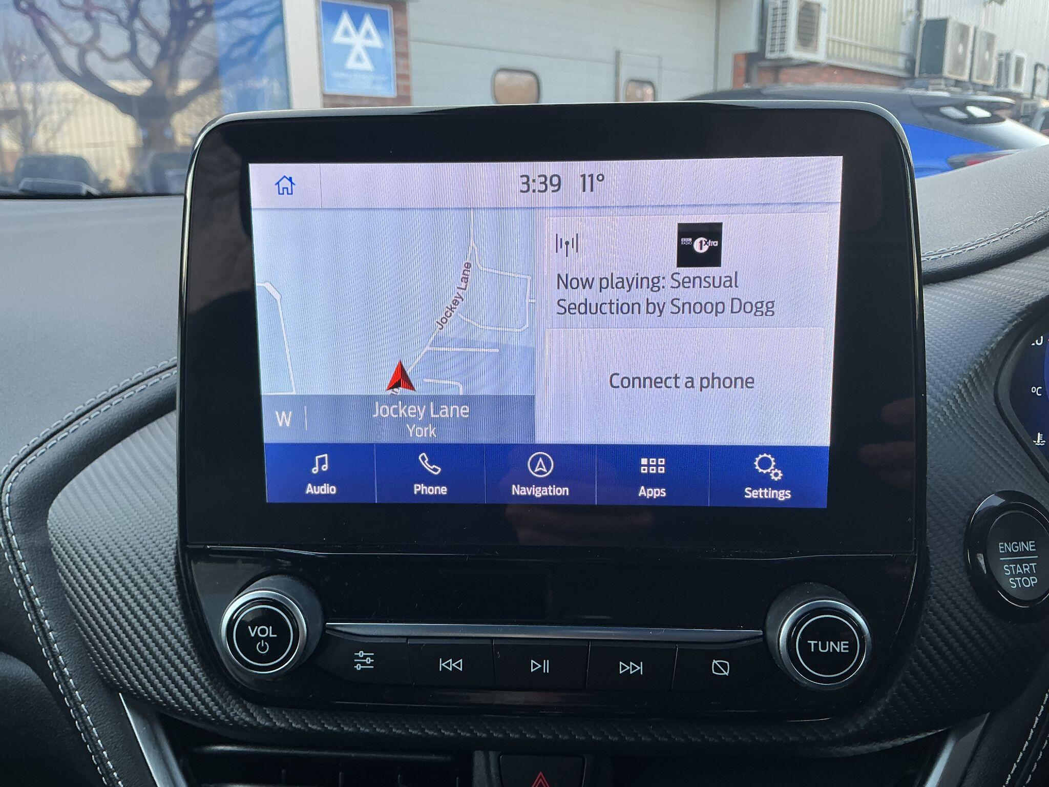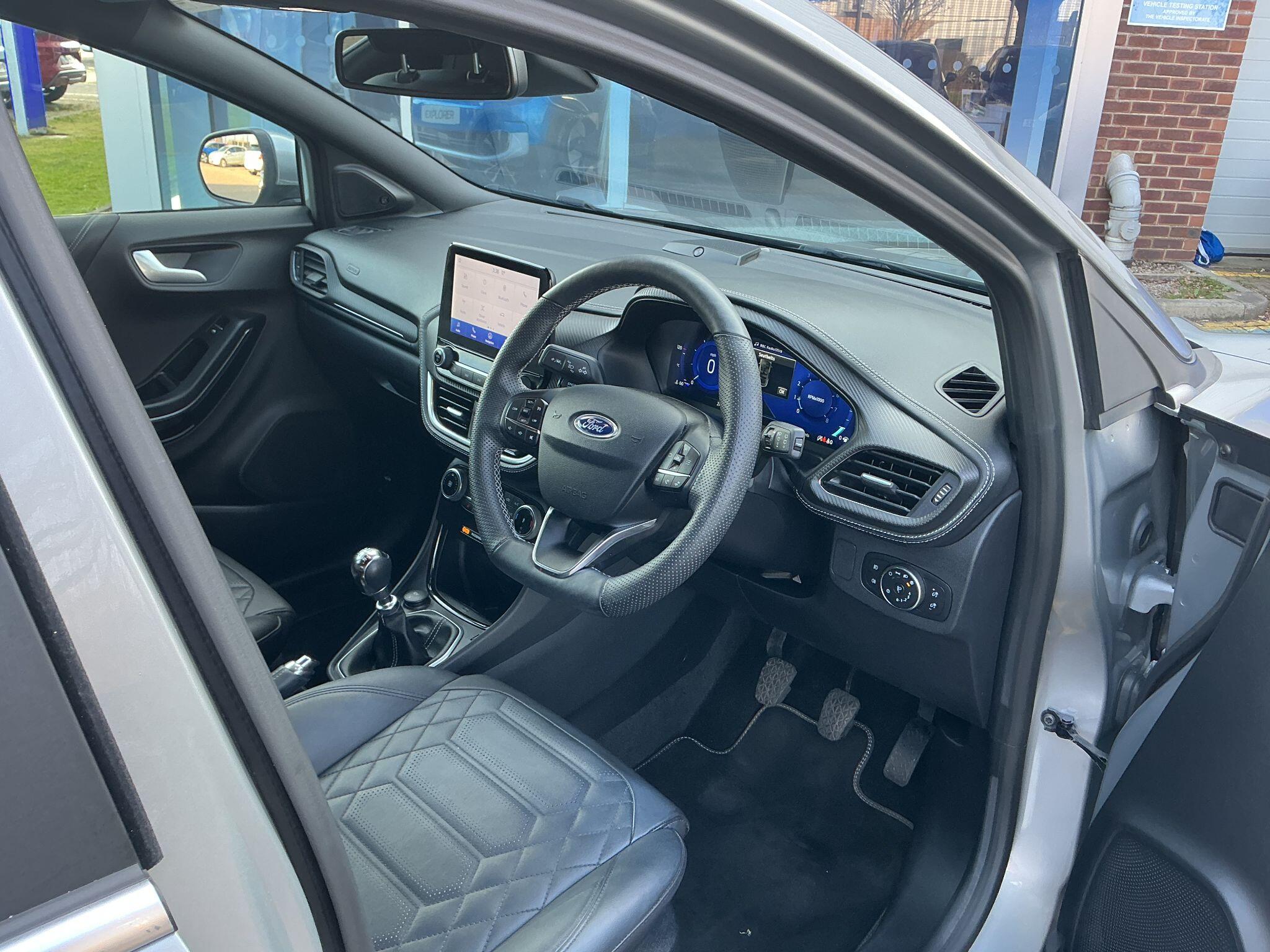 "features": "Bluetooth system, Electric power steering, Ford easy fuel, Ford SYNC 3 Navigation system incl 8\" touchscreen, 7 speakers, FordPass connect, Apple carplay, android auto, voice control and emergency assistance, Rear parking distance sensors, Selectable drive modes (Normal, Sport, Track), Trip computer, Sports suspension, 2 USB ports, Auxiliary input socket, DAB Digital radio, Steering wheel mounted controls, Body colour bumpers, Body colour door handles, Body colour large rear spoiler, Body coloured electrically operated and heated door mirrors with side indicators, Cornering front fog lights, Electric front windows/one touch facility, Electric rear windows, LED Night signature to rear lights, Quickclear heated windscreen, Rain sensing wipers and auto dimming rear view mirror, Rear privacy glass, Rear wiper, Unique ST-Line upper grille & full bodystyling kit with ST-Line wing badges, 3 spoke flat bottomed leather steering wheel, 60/40 split folding rear seat, Adjustable head restraints, Black headlining, Boot carpet, Centre console with opening armrest, 2x cupholders, 12v and USB, Chrome inner door handles, Cloth upholstery, Footwell illumination, Front floor mats in velour, Front map reading lights, Front seat and rear pockets, Illuminated glovebox, Leather gaiter, Load area light, Manual 2 way passenger seat adjust, Manual 4-way driver seat adjust, Manual air conditioning, Overhead console with sunglasses holder, Pollen filter, Rake/reach adjustable steering wheel, Sensico wrapped steering wheel, Sports front seats, NCAP Pack - Fiesta, 3 point seatbelts on all rear seats, ABS+EBA, Curtain airbags, Driver and passenger airbags, Drivers knee airbag, Electronic stability control with hill start assist, Front passenger airbag deactivation, Front side airbags, Seatbelt warning, Two tone horn, Tyre pressure monitoring system, Keyless start with 'Ford Power' starter button, MyKey system, Remote central locking & engine immobiliser, Thatcham Cat.1 alarm, 17\" 5 spoke alloy wheels with rock metallic finish, ",