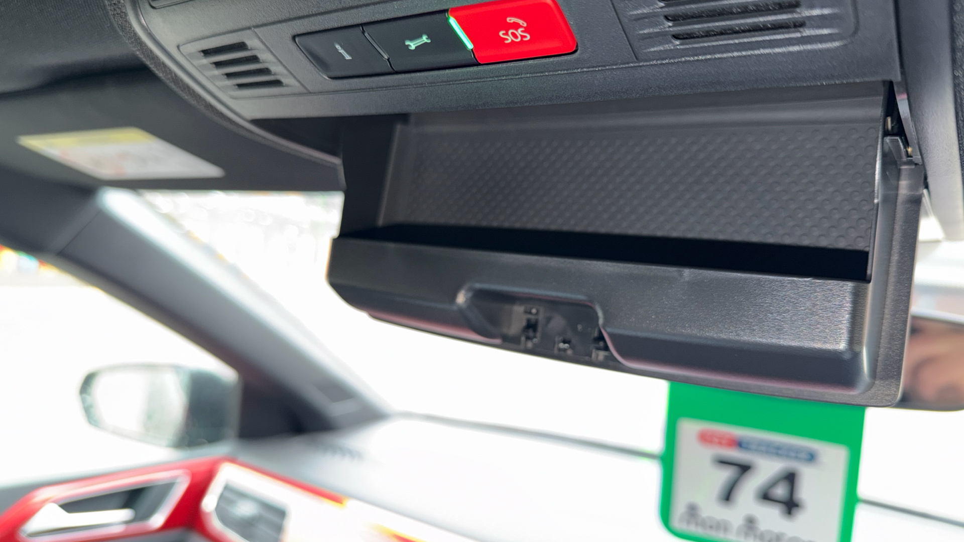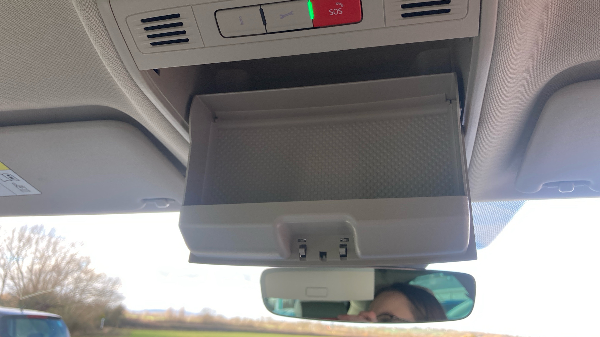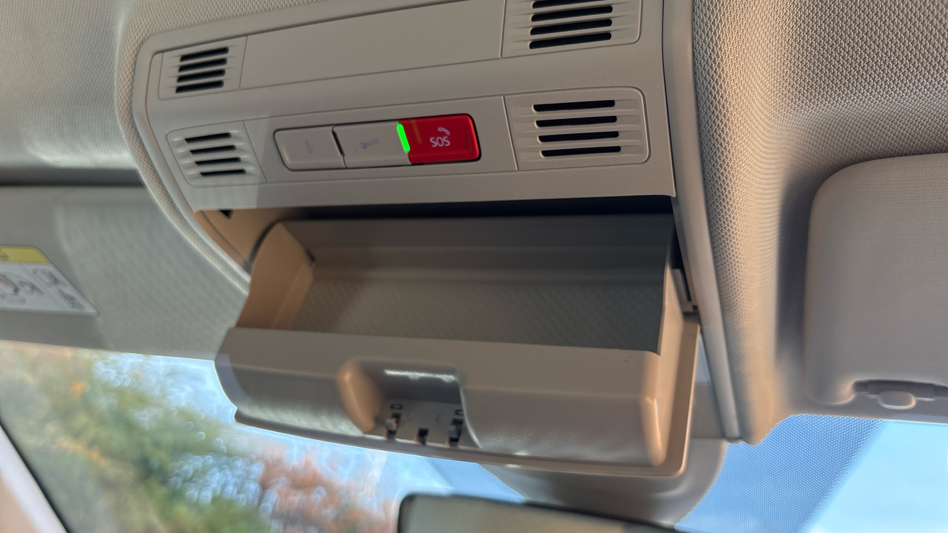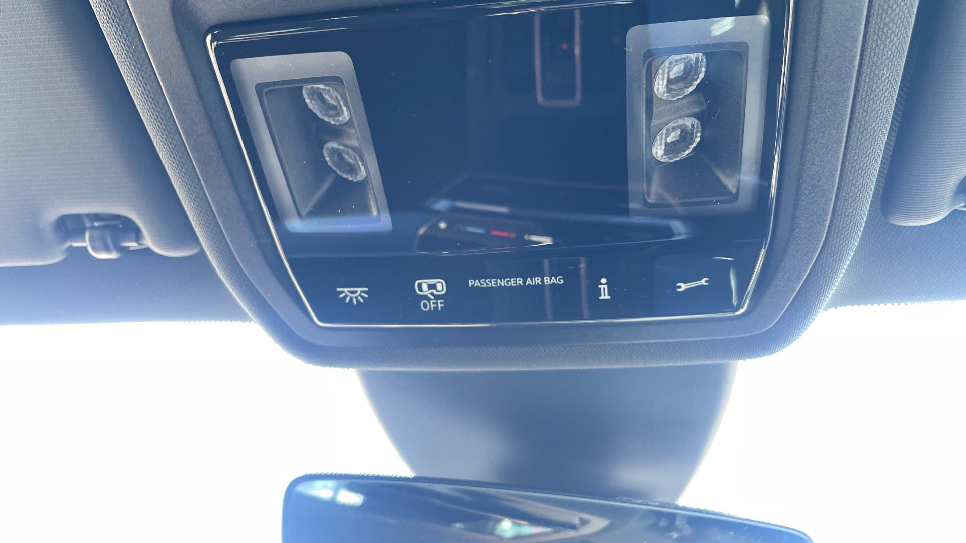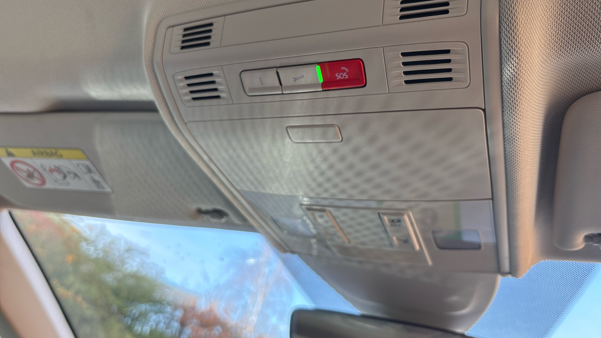 "Airbag label on sun visor and B-pillar",