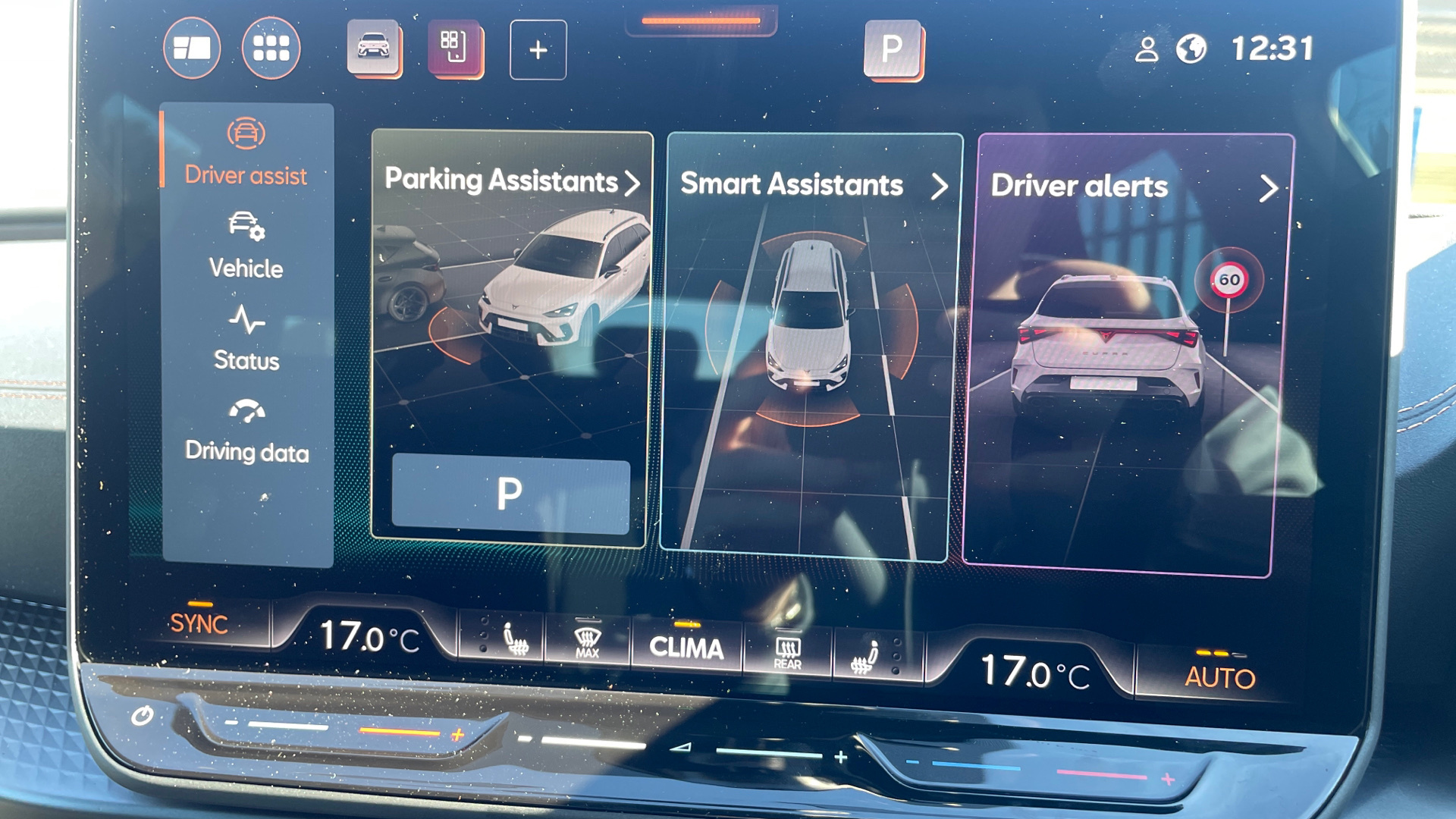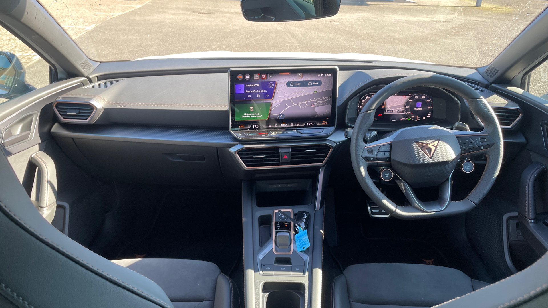"features": "5.3\" digital cockpit with 12\" central display infotainment system, Augmented reality head up display, Bluetooth without wireless charger, Driving profile selection - Range, Comfort, Performance, Individual, Dynamic steering, Emergency steering support with turn assist, Forward collision warning with automatic braking, Front/rear park distance control, Lane assist, PAS, Tailgate, Voice assistant, Wireless full link smartphone integration, 170kW DC charging capacity, 7.4 kW onboard charger, Shock absorption in front, Sports rear shock absorption, 2x USB sockets in front, 2x USB sockets in rear, charge only, DAB (Digital Audio Broadcasting) and AM/FM radio, Acoustic windshield, Auto dimming rear view mirror, Dark tinted rear windows, Daytime running lights, Electric adjustable/heated/folding door mirrors, Full LED headlights, Grey exterior mirrors, Heat insulated glass, Heated washer nozzles, LED 3rd brake light, LED rear lights, Rear side wing doors, Rear wiper, Transport protection film, Variable intermittent wiper, Welcome home function and adverse weather function, Windshield wiper with light/rain sensor, 2 seat bench in 2nd row, Aluminium pedals, CUPRA emblem on steering wheel, Dual zone climate control, Electric auxiliary air heater, Front bucket seats with 12 way electrically adjustable, pneumatically adjustable lumbar support and massage function, Heated front seats, Heated leather wrapped multi function steering wheel with satellite buttons, Integrated front head restraints, ISOFIX points in outer rear seats with top tether anchorage points, Multi-colour ambient interior lighting, Rear headrests, Single front passenger seat, Sunvisors with illuminated mirror, Unsplit rear seat bench, split folding backrest, with centre armrest, 2 x 3-point rear seatbelts, Driver and front passenger airbags with front passenger airbag deactivation, side airbag in front with curtain airbag and front interaction airbag, Extended safety system with proactive passenger protection system, Manual child lock in rear doors, Public e-call, Tiredness recognition system, driver alert system, Tyre pressure monitoring system, Visual and acoustic seat belt reminder, Anti theft alarm system with interior monitoring in cab, backup horn and towing protection, Anti theft wheel bolts, Keyless go central locking system, Tool kit, Tyre repair kit, ",