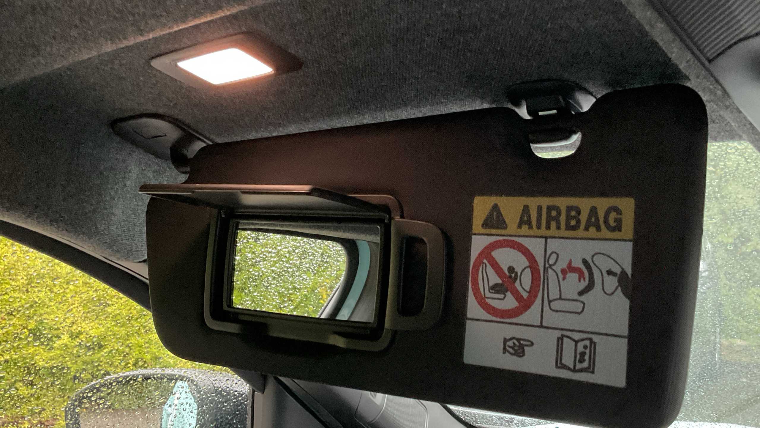 "Illuminated vanity mirrors + ticket holder",