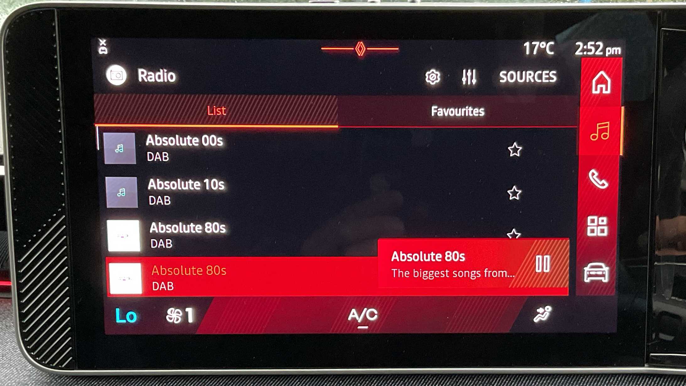 "9\" centre console touch screen",