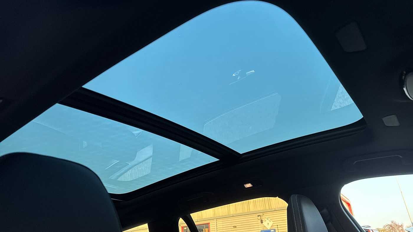 "Power glass tilt and slide panoramic sunroof with sun curtain",