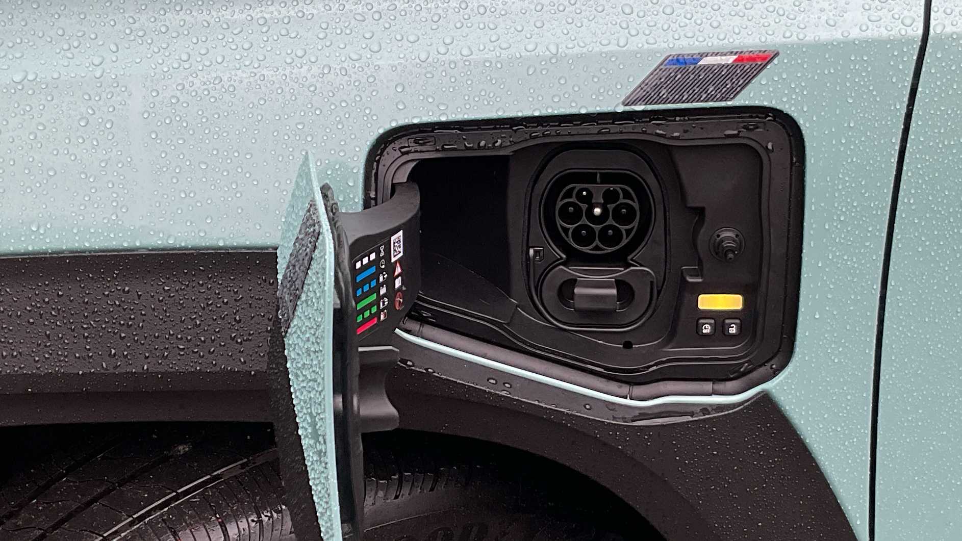 "Recharging port located in nearside front wing"