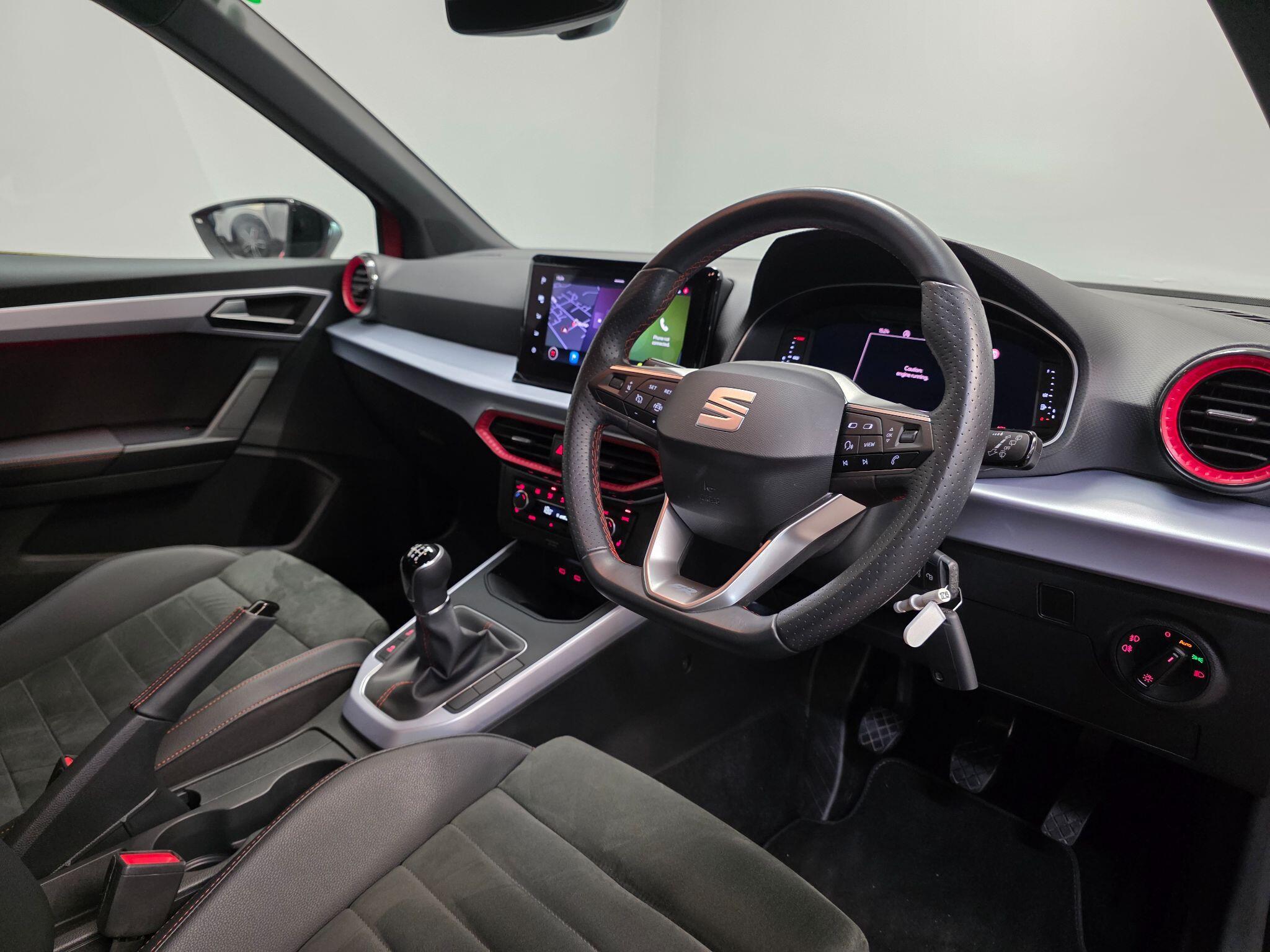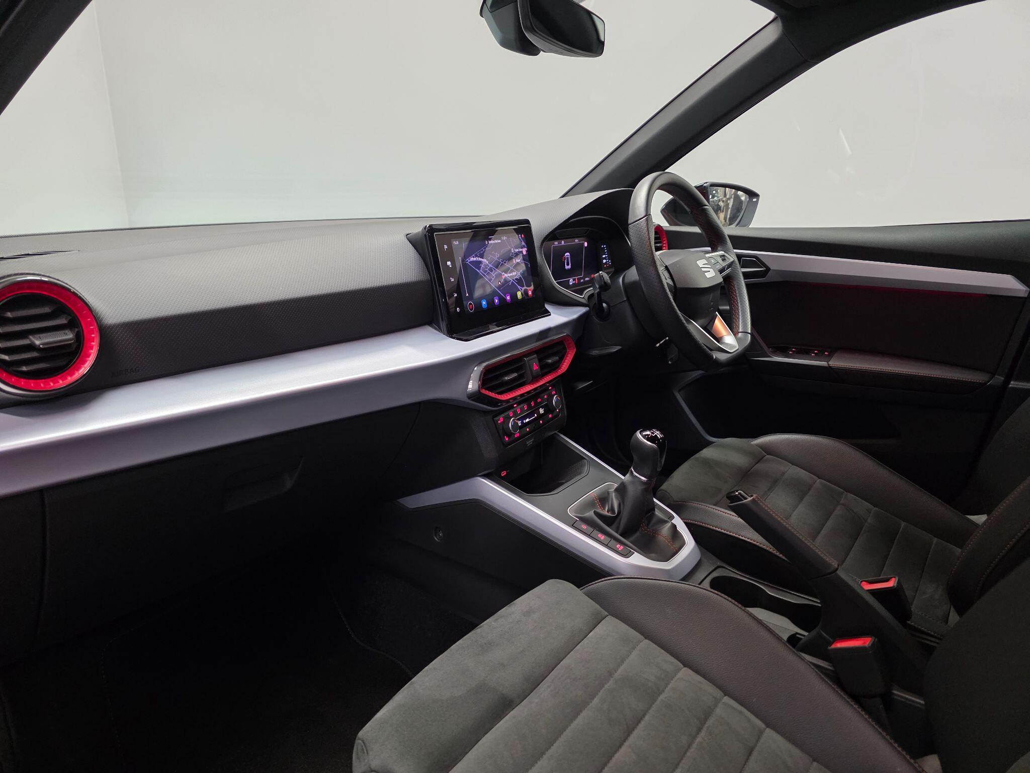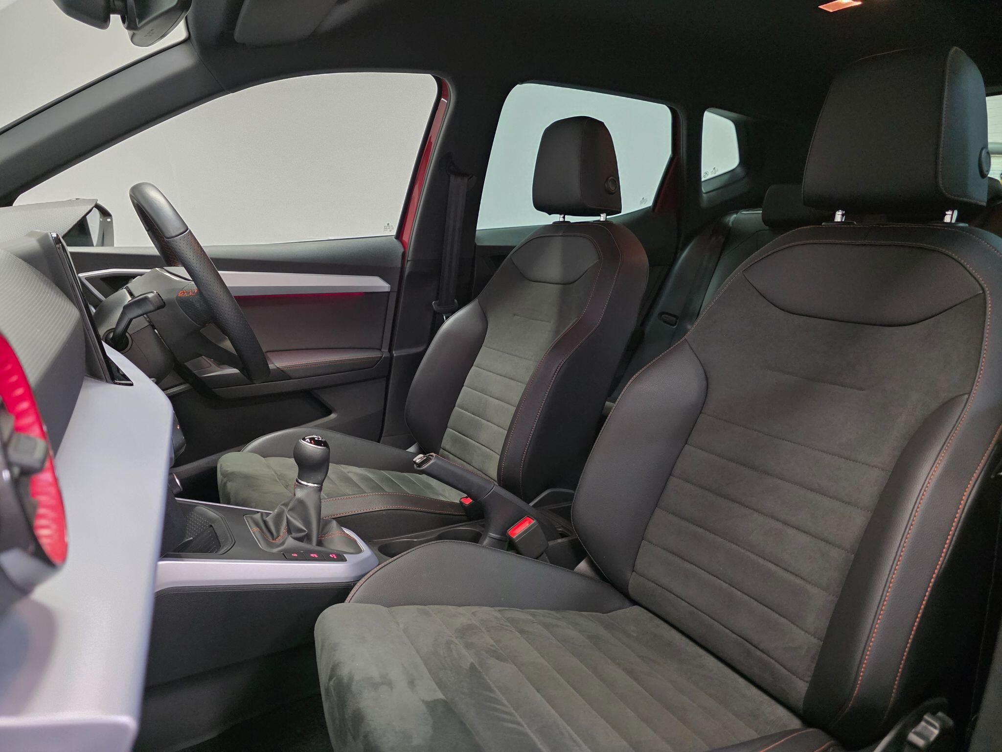 "features": "8\" Digital cockpit, 9.2\" touchscreen navigation system with type C USB socket, Voice control and DAB/AM/FM radio, Bluetooth audio streaming with handsfree system, Cruise control and speed limiter, E-call, Front parking sensors, Full Link Smartphone integration with Mirror Link, Apple Car Play, Google Android Auto with USB Type C cable for Apple and Android devices, PAS, Rear view camera, SEAT Drive profile - Four different models normal-sport-eco-individual, steering response, throttle response, Start/stop system, Sport suspension, Body colour mirror caps, Body coloured bumpers, Body coloured door handles, Dark tinted rear windows, Electric front and rear windows, Electrically adjustable, heated, folding exterior mirrors, FR styled rear diffuser, Front foglights with cornering functionality, Interior auto dimming rear view mirror, LED 3rd brake light, LED daytime running lights, LED license plate light, LED taillights, Rear fog lights, Rear side wing doors, Rear wash/wipe, SEAT Design Full LED automatic headlamps with signature dynamic headlight range control and coming and leaving home feature, 3 seat bench in 2nd row, 60/40 split and folding rear seats, Black headlining and chrome detailing, Cloth upholstery, Dual zone climate control with combination filter, Front integrated headrests, Front reading lights, Heated front seats, Height adjustable front seats, Height adjustable rear headrests, Interior ambient lighting in footwell, Isofix, Nappa leather multifunction flat bottomed sports steering wheel, Red coloured interior air vents with ambient lighting, Single front passenger seat, Sports bucket seats, Storage pockets on back of front seats, Sunvisors with mirrors and card holder on drivers side, Safe and Driving pack (S) - Ibiza, ABS, Child locks on rear doors, Driver and passenger airbags, Front driver and passenger side airbags with curtain airbag and front passenger airbag deactivation, Hill hold control, Three point seat belts on all rear seats, Tyre pressure monitoring system, Anti-theft alarm with interior monitoring, backup horn, and towing protection, KESSY Keyless entry and go with Safelock, Locking wheel bolts, 17\" Dynamic alloy wheels in Nuclear grey, ",