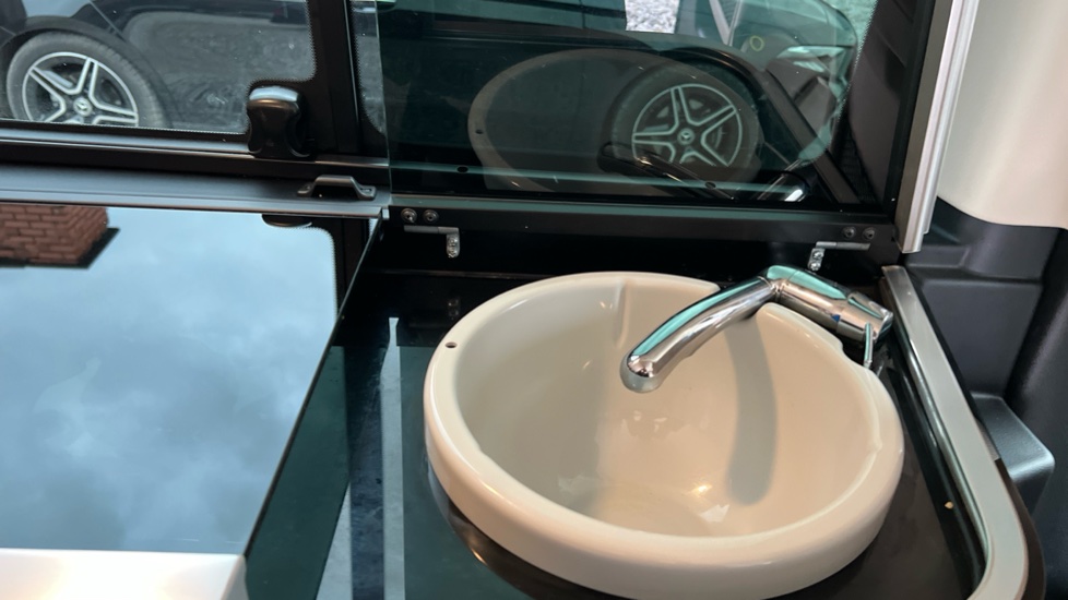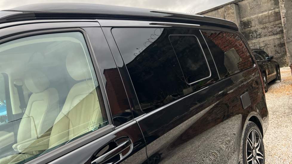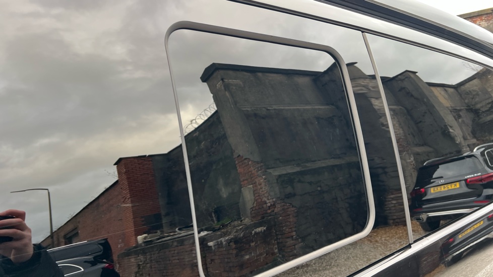 "Tinted safety glass with metallic infrared reflective coating across the roof"