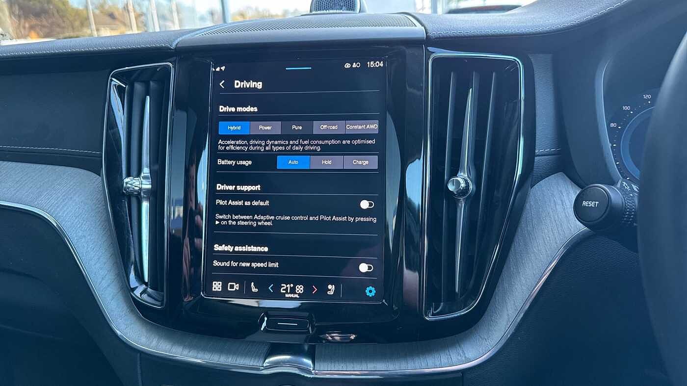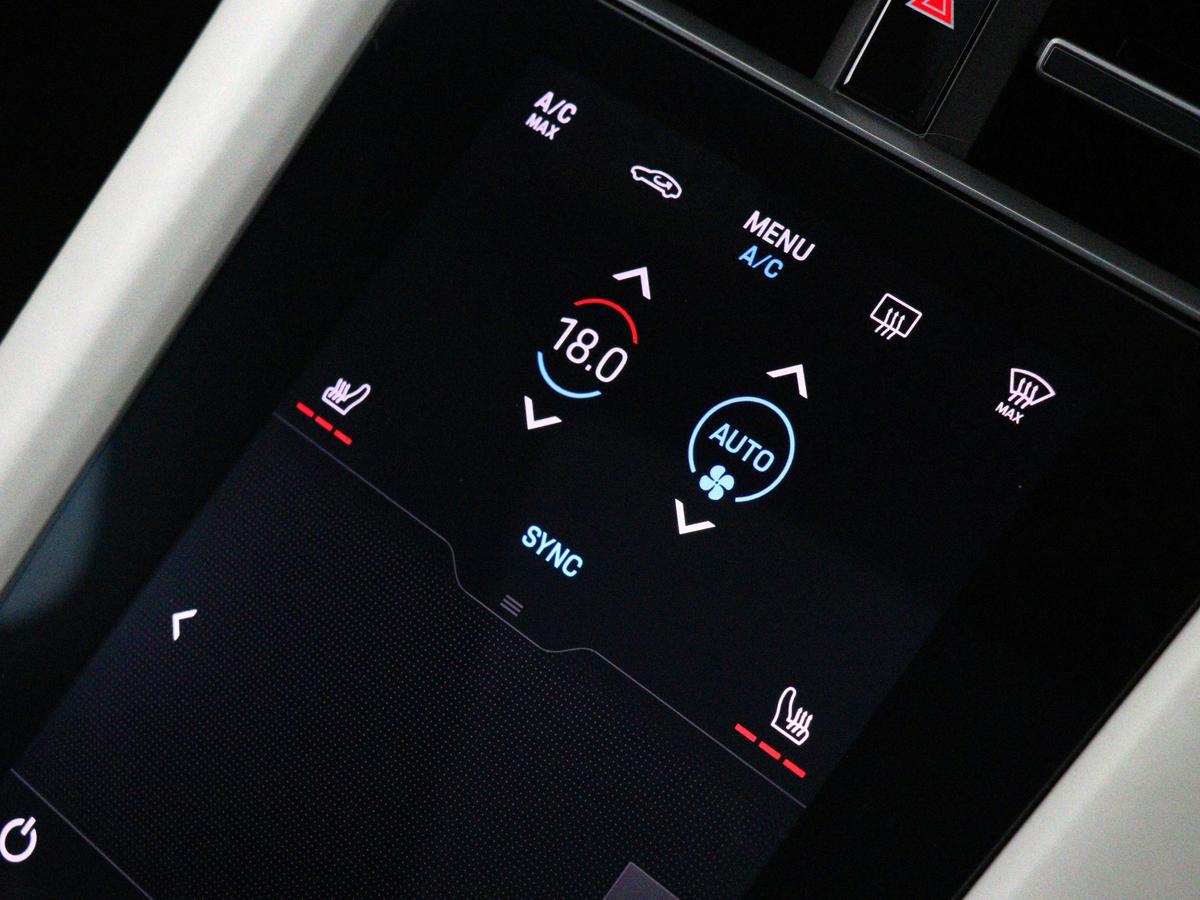 "Centre console with direct touch control includes climate settings, opening and closing charge port doors, battery level indicator, handwriting panel",