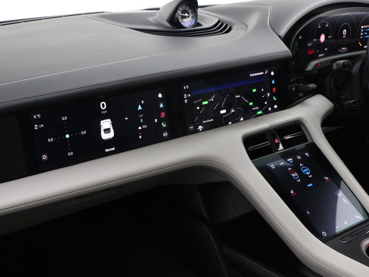 "Taycan badge on center console",