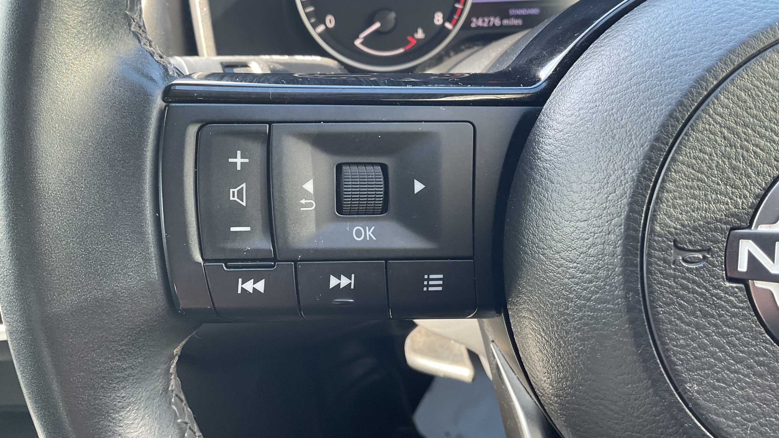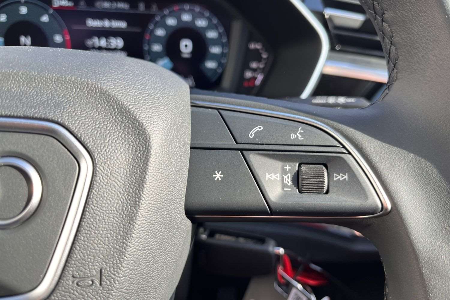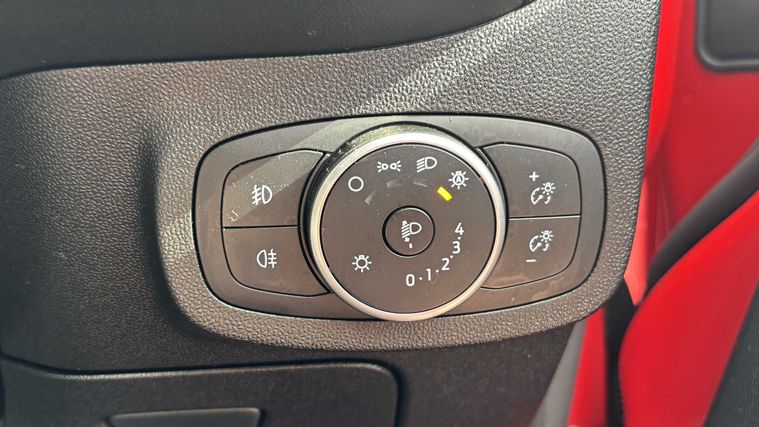 "Red stitching on steering wheel"