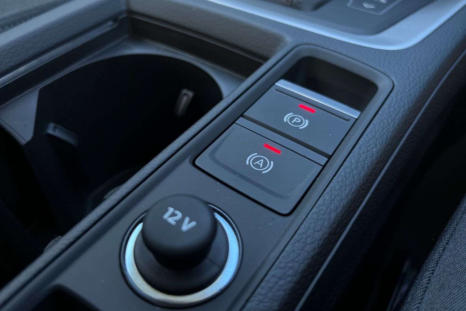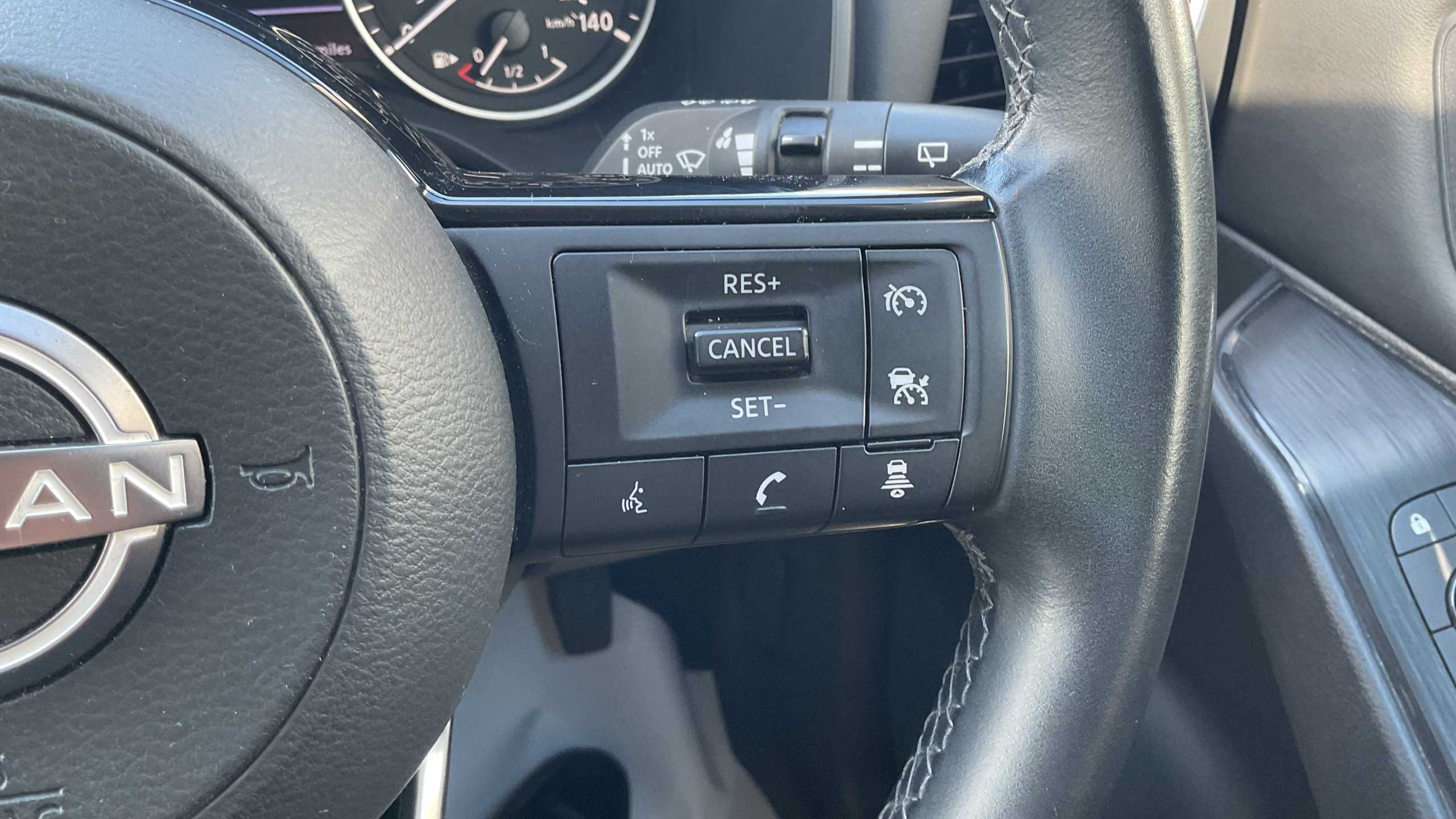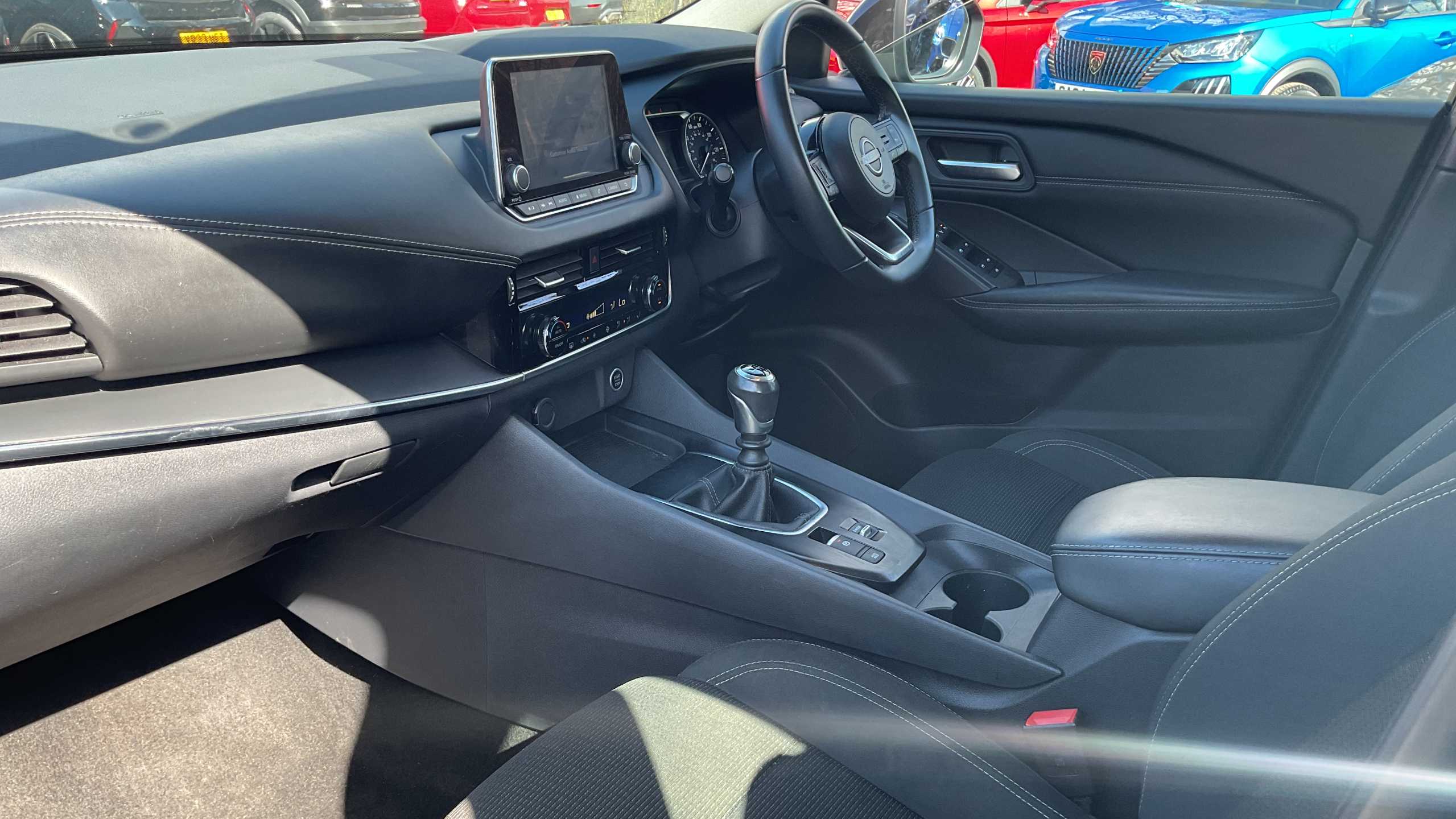 "Red stitching on steering wheel"