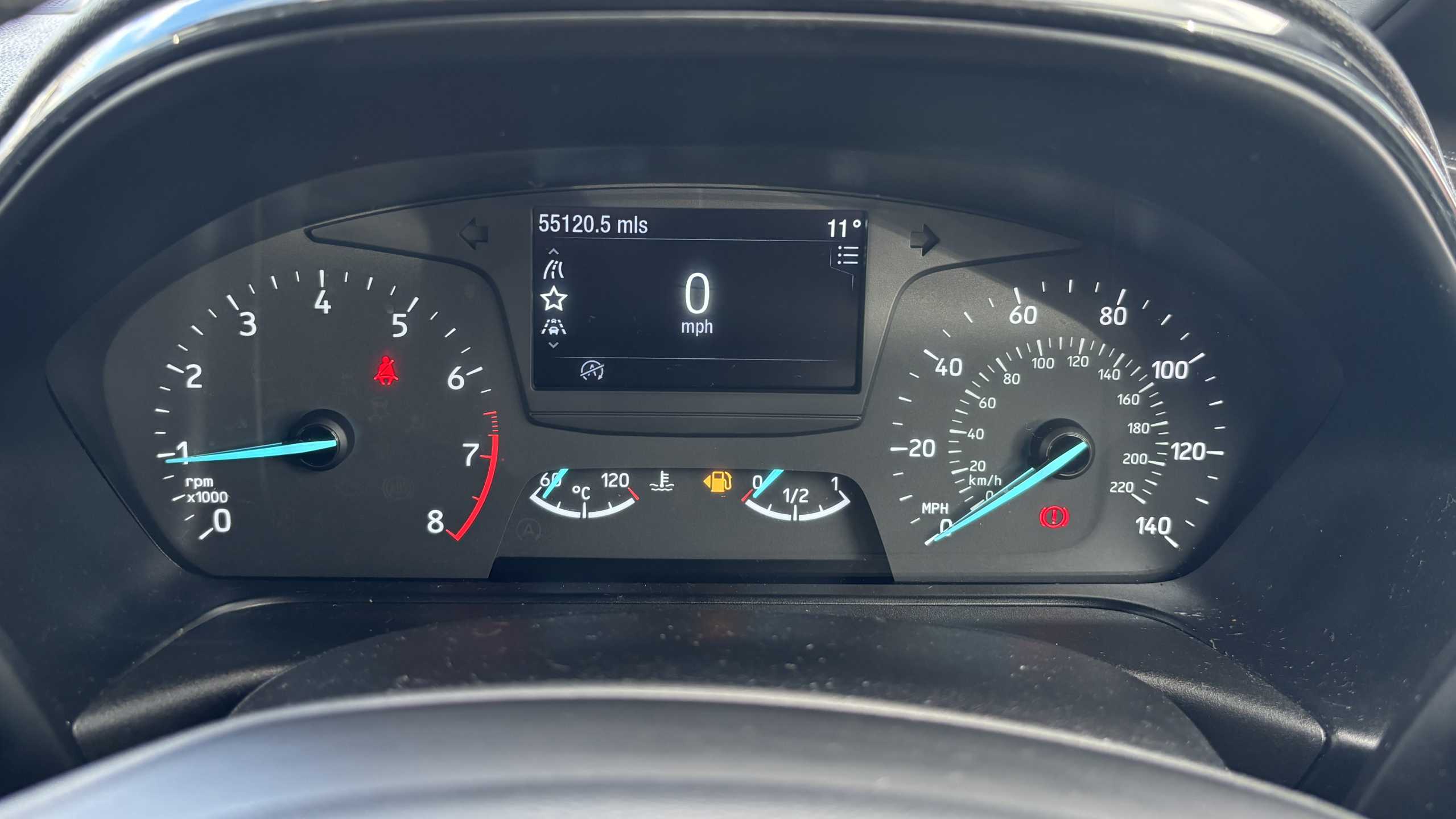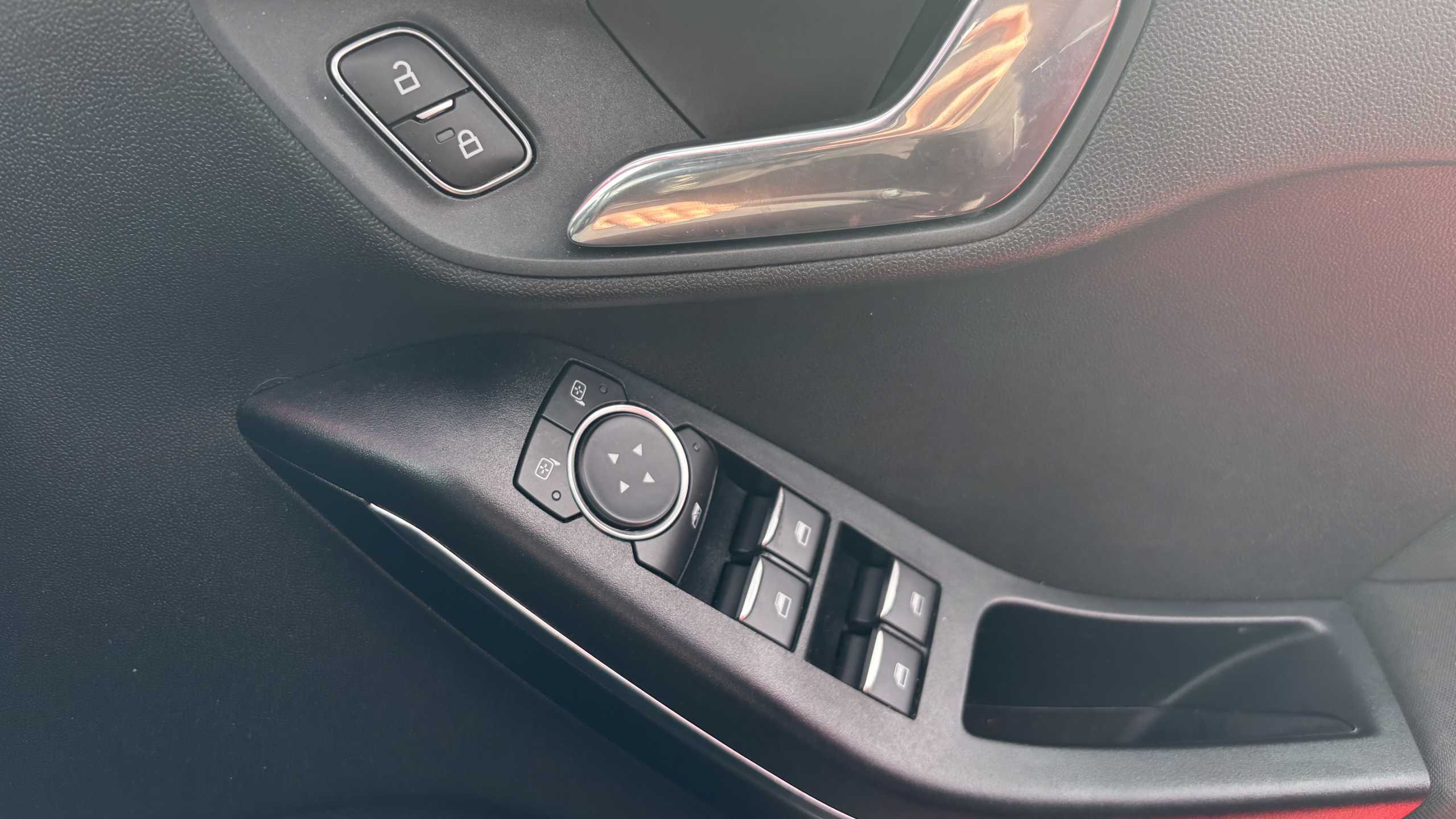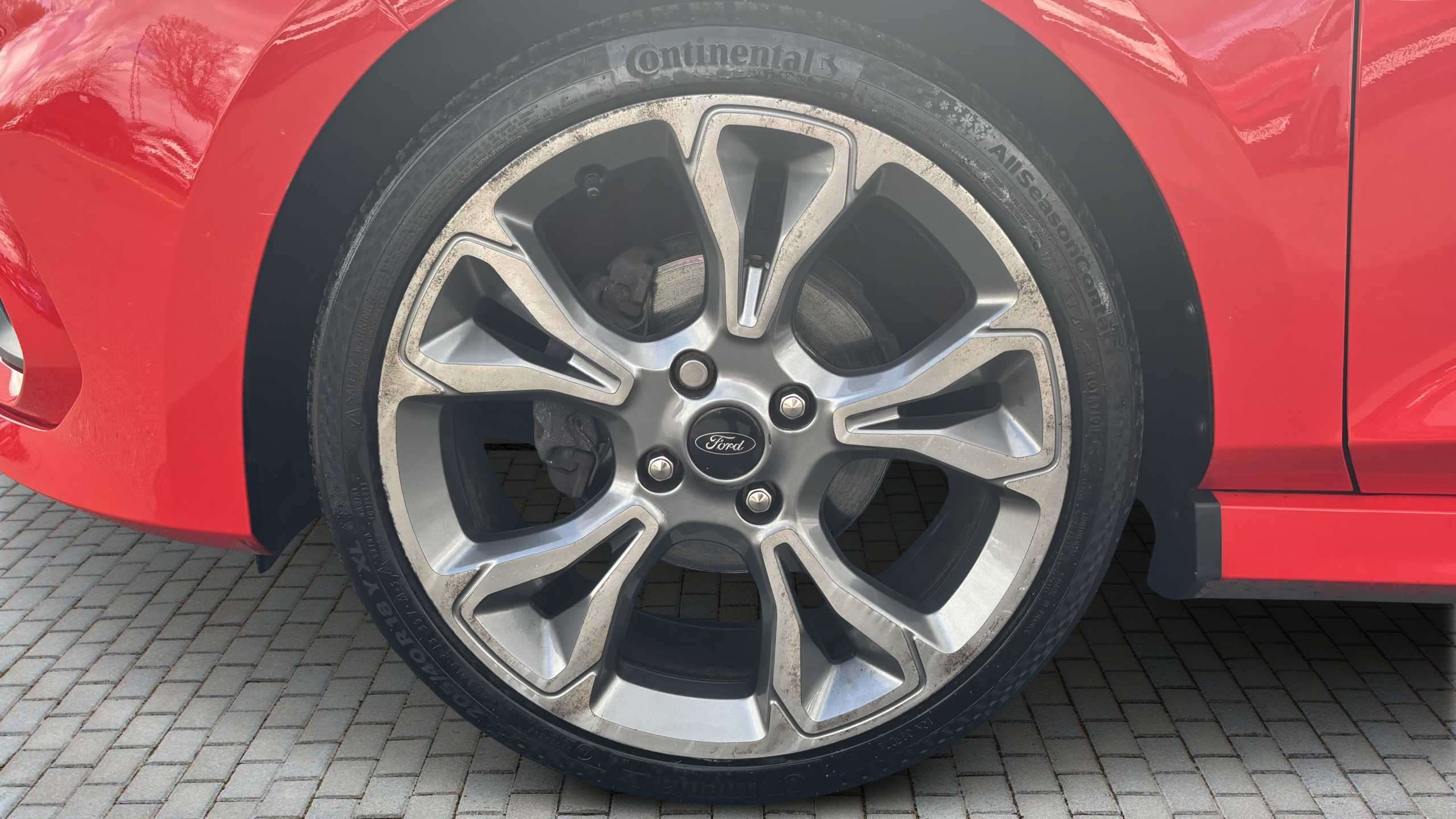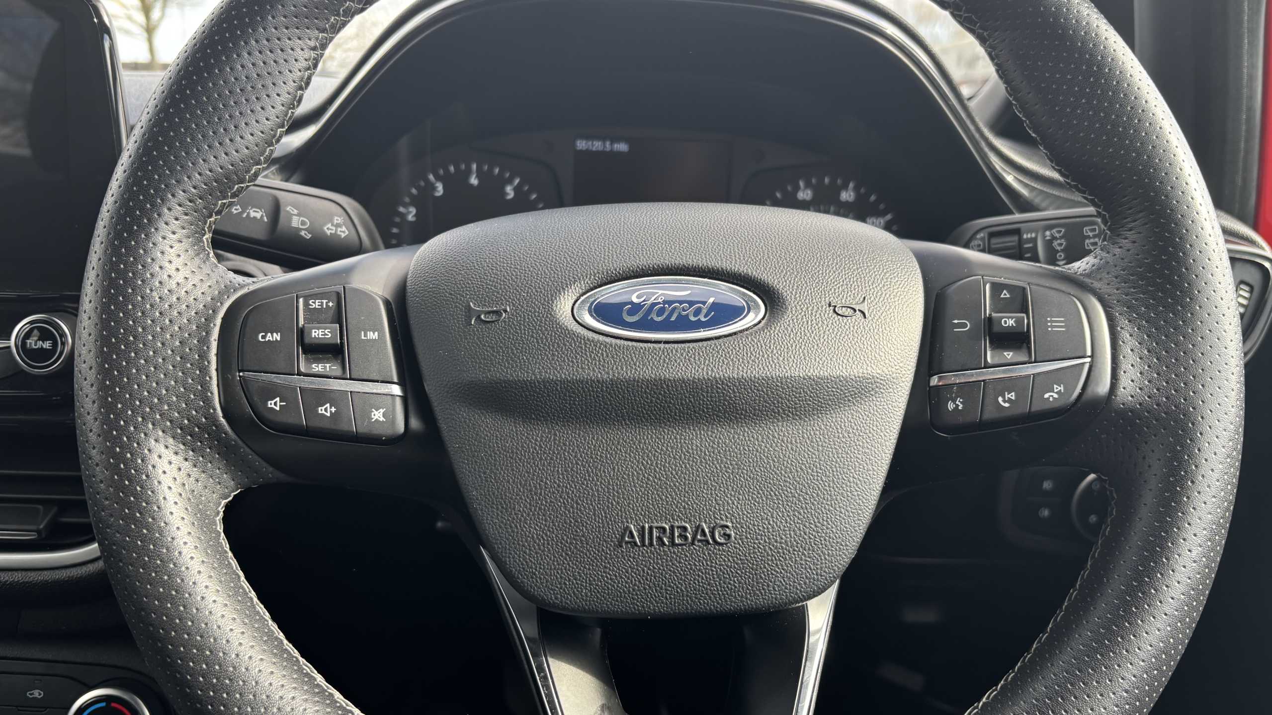 "features": "Bluetooth system, Digital clock, Easy fuel capless refuelling system, Eco mode, Ford SYNC 3 with 6.5\" TFT touchscreen, DAB radio and app link Android auto/Apple carplay, Lane keeping aid with lane departure warning, PAS, Selectable drive mode, Trip computer, Sports tuned suspension, 6 speakers, Aux input, 'Quickclear' heated windscreen/heated washer jets, Auto headlamps (on/off), Body colour large rear spoiler, Body colour side skirt, Body coloured bumpers, Body coloured door handles, Body coloured electrically operated and heated door mirrors with side indicators, Electrically operated front and rear windows with one touch opening and closing, Front variable intermittent wipers with electric wash, Halogen reflector headlamps, Heated rear window, LED daytime running lamp, LED front fog lamps with cornering function, Polished twin tailpipe, ST-Line upper and lower grille with full body styling kit and wing badges, Tailgate wash/wipe, 3 spoke flat bottomed leather steering wheel with red stitching, 60/40 split back and cushion rear seats with 2 height adjustable headrests, Alloy finish pedals, Aluminium gear knob, Centre console with armrest, Cloth upholstery with red stitching, Dark headliner, Driver's lumbar support, Driver's seat manual height adjust, Front floor mats, Height adjustable front headrests, Isofix child seat preparation, Manual air conditioning, Reach + rake adjustable steering column, Rear centre headrest, Red stitching on steering wheel, ABS+Electronic Brake force Distribution, Auto hold function, Driver airbag, Electronic parking brake, Electronic stability control, Front and rear seatbelt reminder, Front inertia reel height adjustable seatbelts with pre-tensioners, Front passenger airbag, Front side airbags, Hill start assist, Passenger airbag deactivate switch, Post collision braking, Pre collision assist with autonomous emergency braking and pedestrian/cyclist detection, Side curtain airbags, Three rear inertia reel lap/diagonal seatbelts, Tyre pressure monitoring system, Keyless start with 'Ford Power' starter button, MyKey system, Remote central locking & engine immobiliser, Thatcham category 1 alarm, Contrast stitching - Red, 17\" 5x2 spoke alloy wheels with rock metallic finish, Mini steel spare wheel, ",