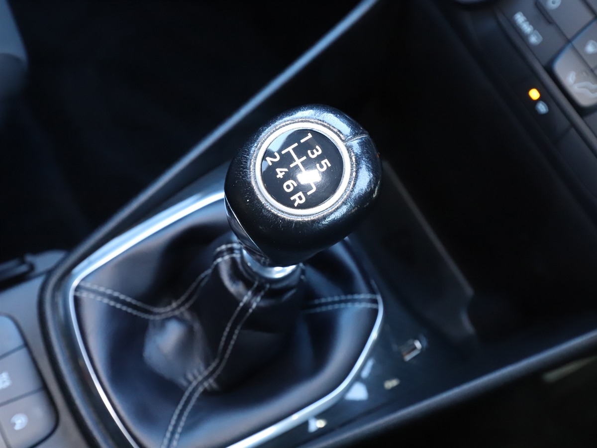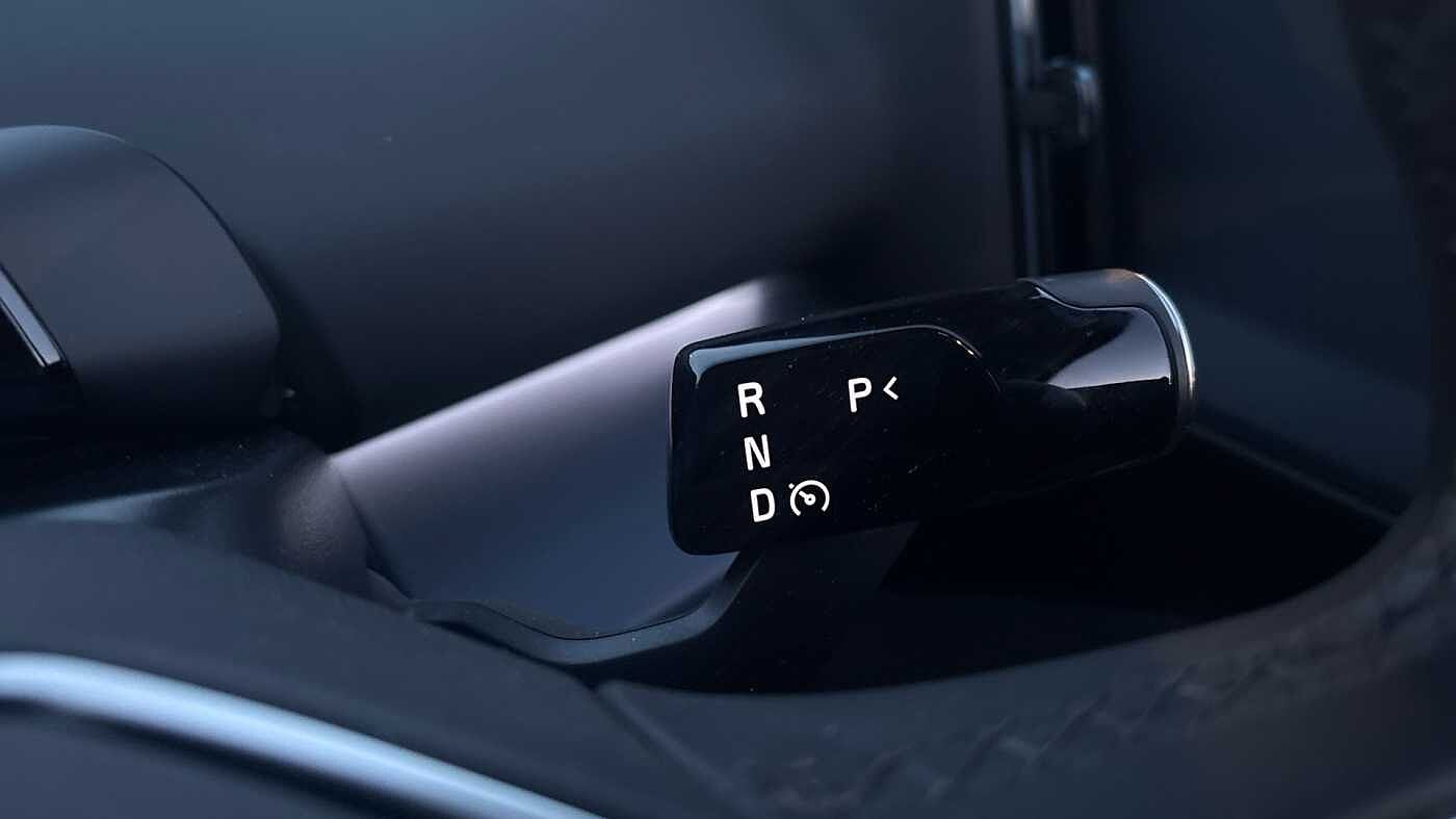 "Leather gear knob with chrome insert and gloss black surround",