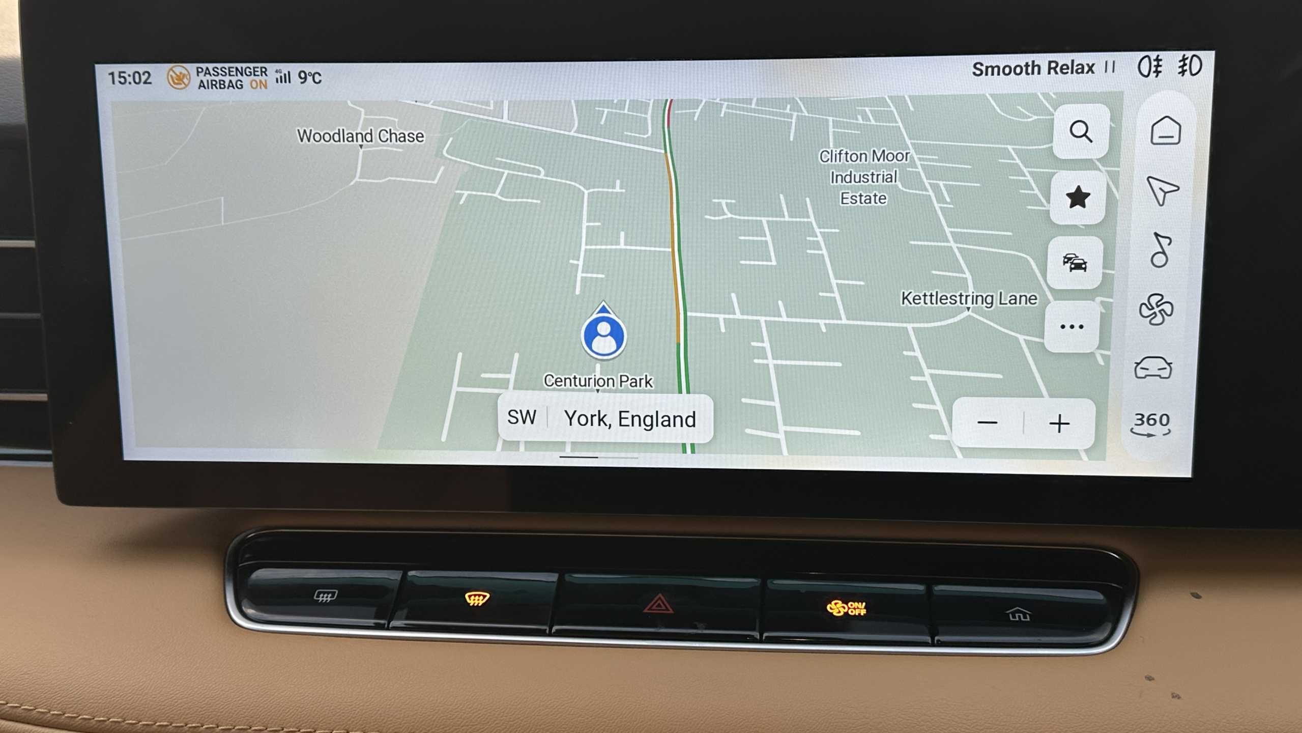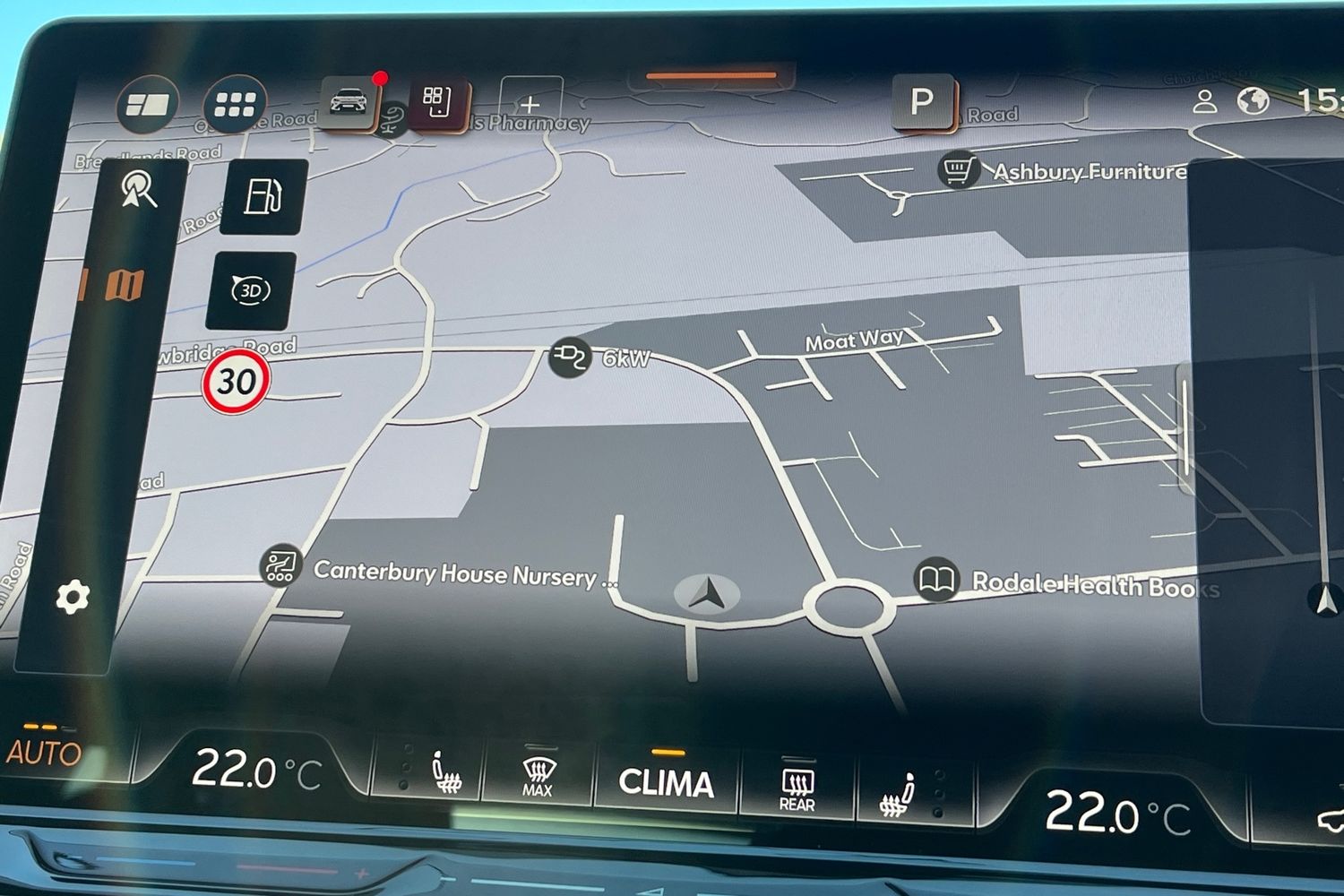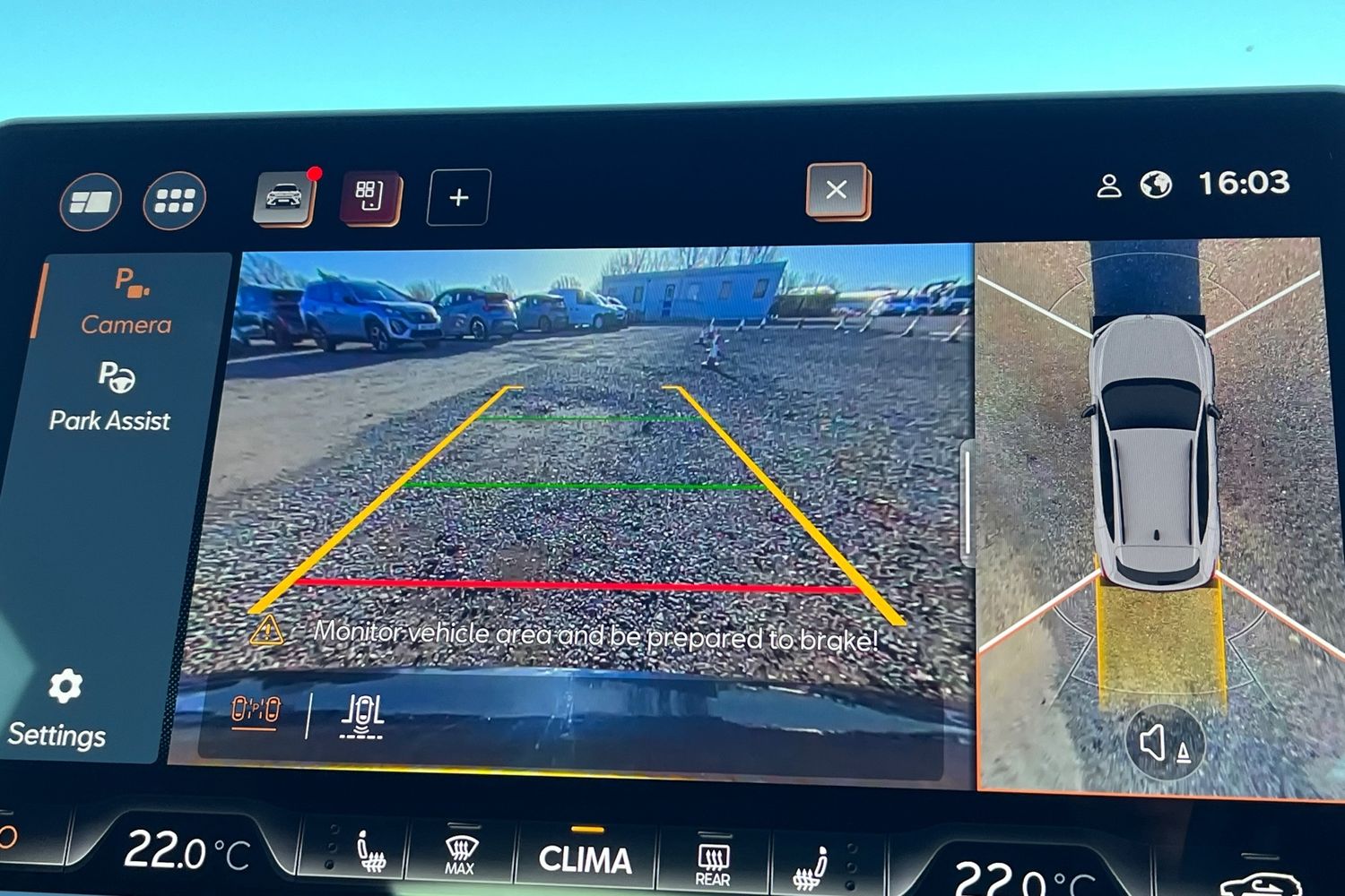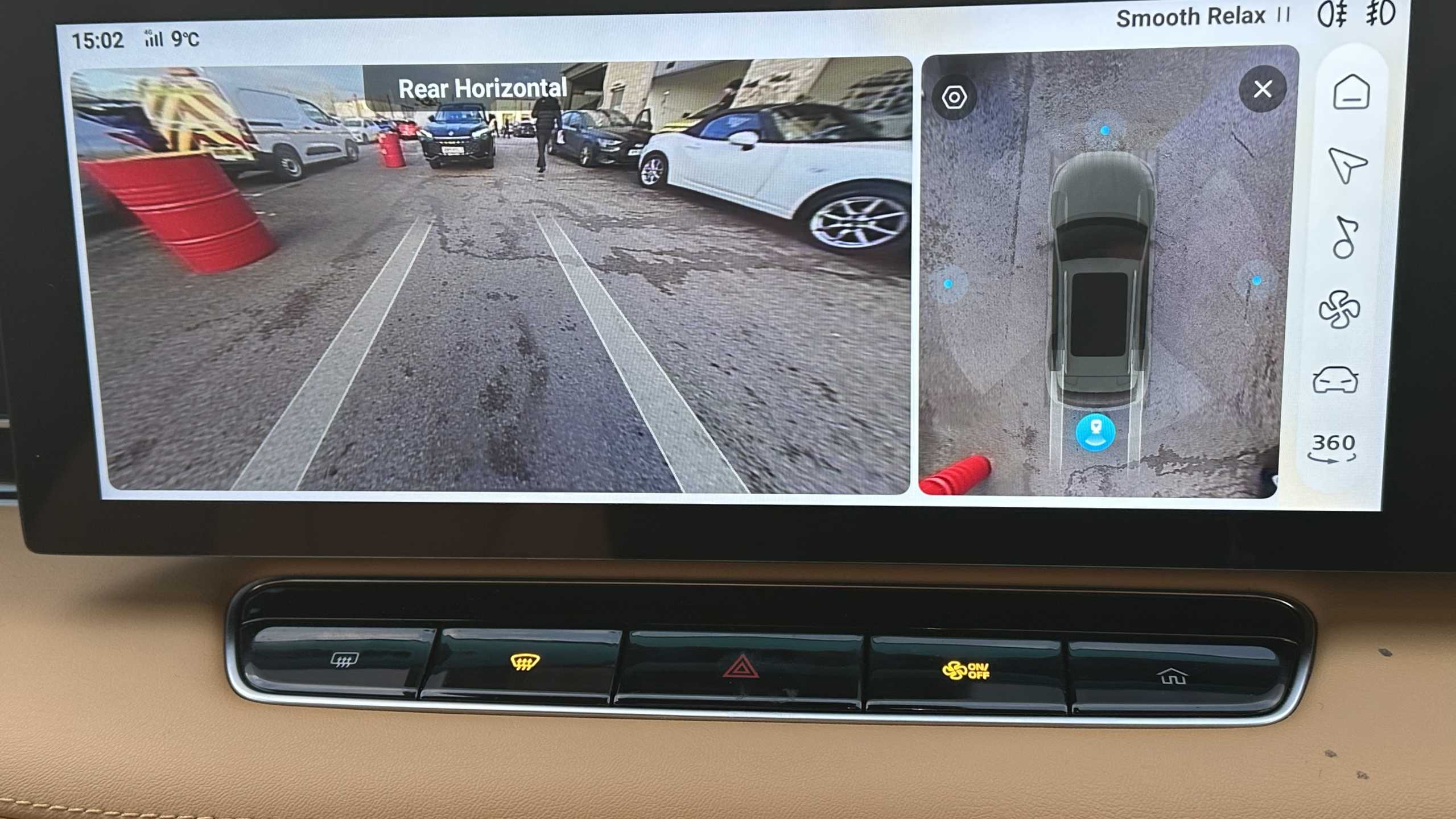 "Reversing camera system integrated into centre fascia screen",