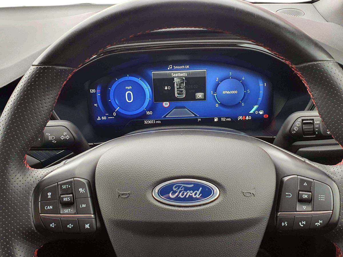 "features": "Cruise control, e-Call (emergency call), Easy fuel capless refuelling system, Ford SYNC 3 nav system with DAB radio,8\" screen, emergency assistance,Apple car play/Android auto, 2x USB, 6 speakers, Ford pass connect, Intelligent speed limiter, PAS, Rear parking sensors, Rear view camera, Traffic sign recognition, Trip computer, Sports suspension, Steering wheel mounted audio controls, Auto dimming rear view mirror, Automatic front wipers, Automatic headlights, Black roof rails, Body colour door handles, Body coloured bumpers, Chrome lower window surround, Electrically adjustable and heated door mirrors, Front fog lights, Front grille bars and surround in black, Headlight levelling control, Large rear roof spoiler, LED day running lights, LED third brake light, Power front and rear windows, Puddle lights, Quick-clear heated windscreen, Rear side wing doors, Rear wiper, ST Line body styling kit - Black headlamp bezel, front and rear sport bumpers, body colour lower door claddings, 12V socket in front and rear, 3 seat bench in 2nd row, 60/40 split rear seats, Ambient lighting, Centre console with sliding front armrest, Cooled glovebox, Courtesy lights with map reading light, Driver seat height/lumbar adjust, Driver's side glovebox, Driver/passenger sunvisors and lidded vanity mirrors, EATC - Electronic Auto Temperature control, Folding grab handles, Front head restraints, Front seat back map pockets, Illuminated glovebox, Illuminated luggage compartment, Isofix system on outer rear seats, Luggage compartment carpet, Neosuede/Partial sensico leather upholstery, Overhead console with sunglasses holder, Rake adjustable rear seats, Reach + rake adjustable steering column, Rear headrests, Sensico trimmed steering wheel, handbrake and gearshift gaiter with red stitching, Single front passenger seat, ST-Line Front floor mats with red stitching, Stainless steel sports pedals, Storage drawers under front seats, Tie down hooks, Variable boot floor, 3x3 point rear seatbelts, ABS, Autonomous emergency braking, Child locks on rear doors, Curtain airbags, Driver airbag, Drivers knee airbag, Electronic Stability Programme with hill launch assist, Front passenger airbag deactivation, Front side airbags, Passenger airbag, Pre collision assist system with AEB, Seatbelt reminder for driver and front passenger, Traction control, Tyre pressure monitoring system, Immobiliser, MyKey system, Remote central locking, Thatcham 1 volume sensing alarm, Low rolling resistance tyres, Tyre inflation kit, ",
