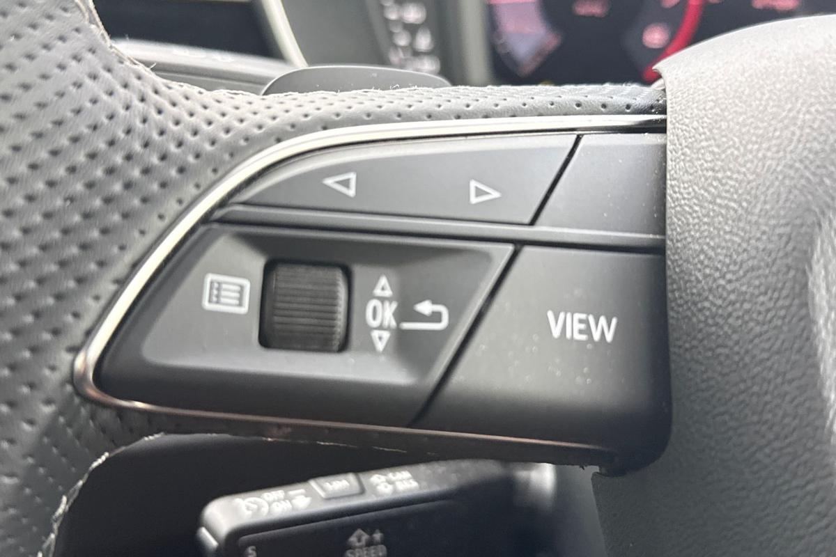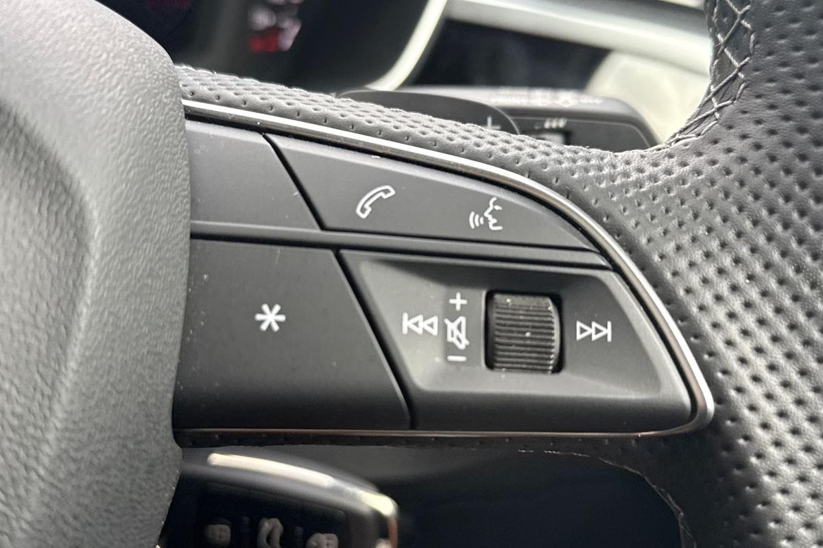 "Vegan leather trimmed steering wheel",
