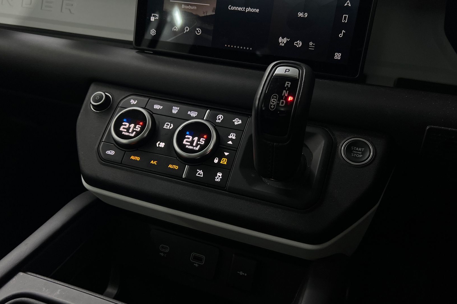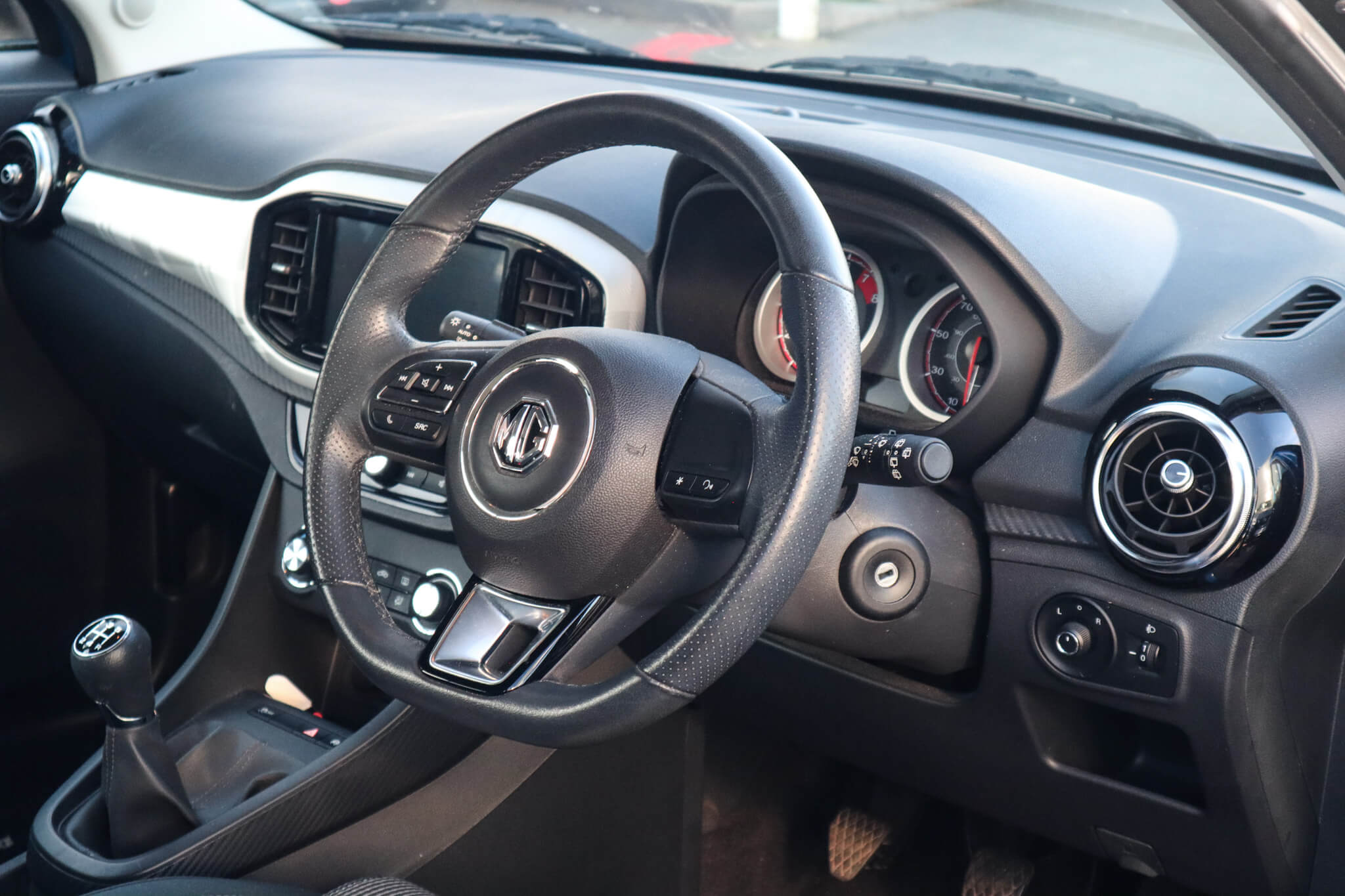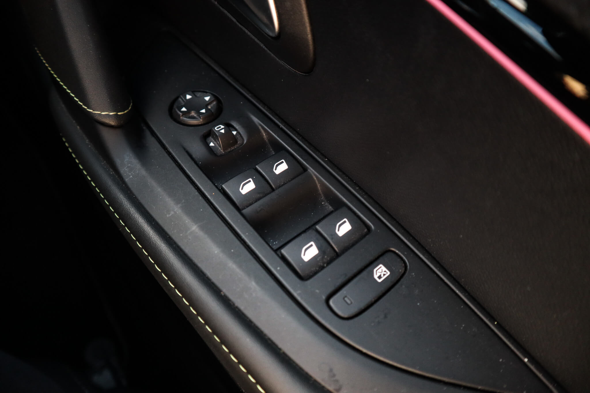 "Aikinite stitching in armrest, gear lever and dashboard facia",