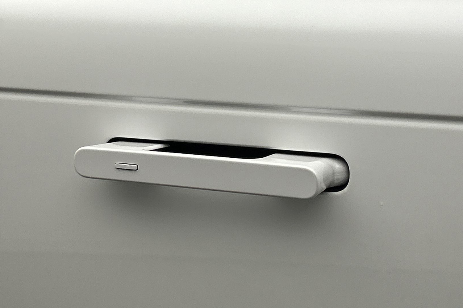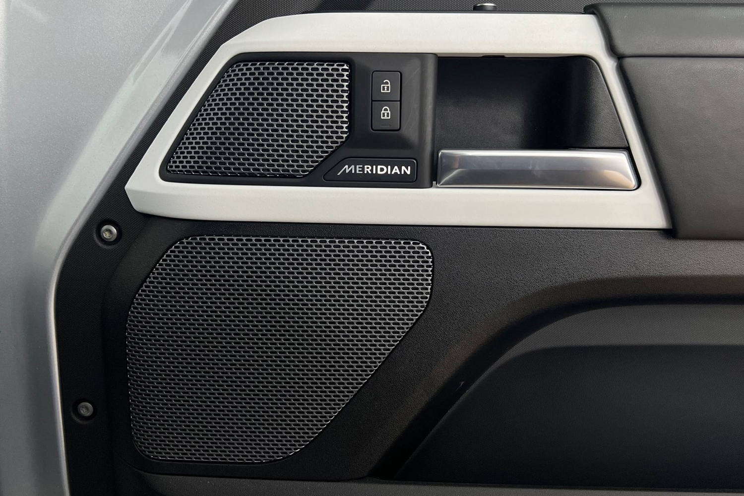 "Satin chrome front door panel recess trim",