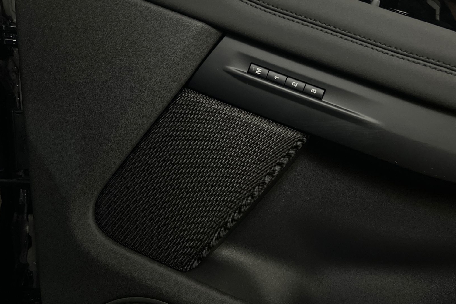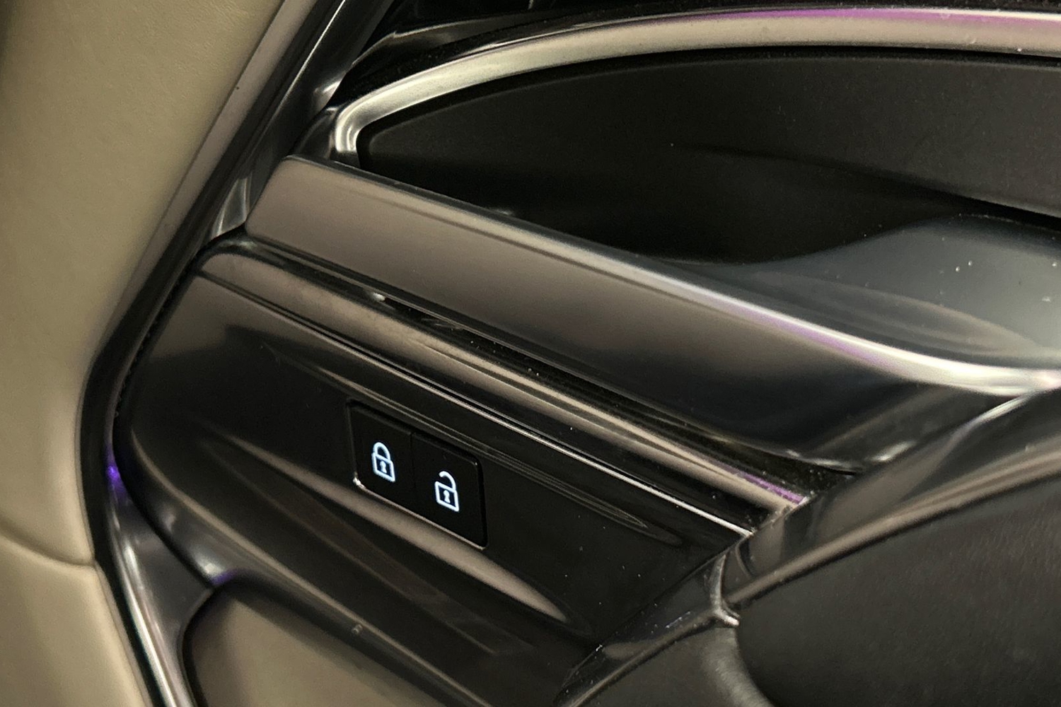 "Flocked front door pocket interior with blue ambient lighting",