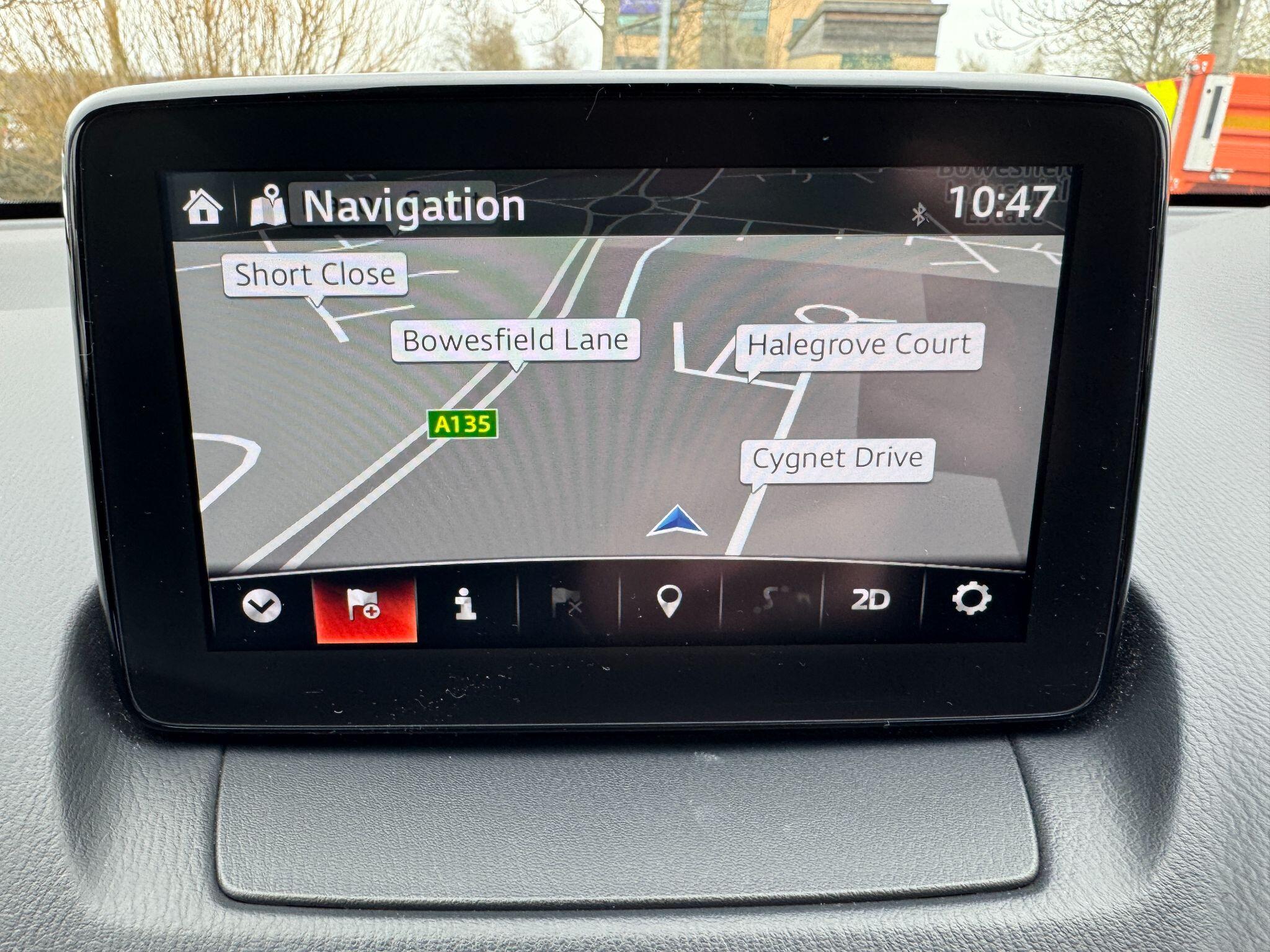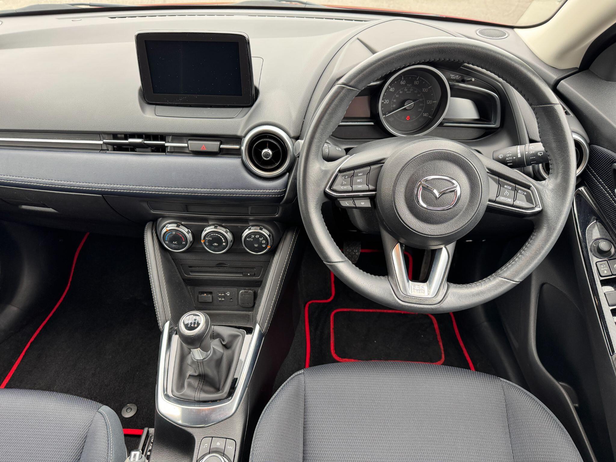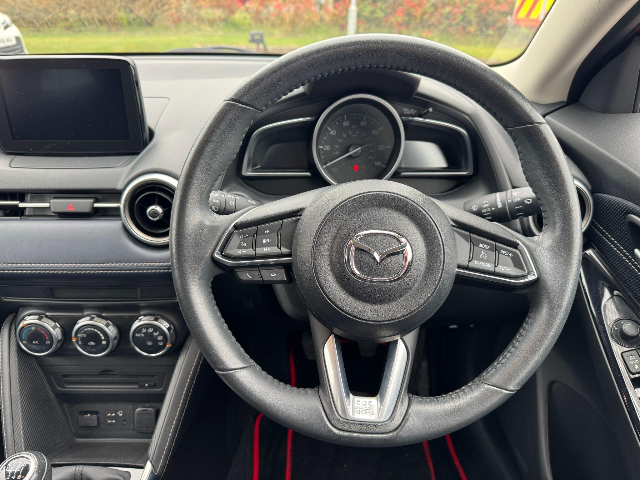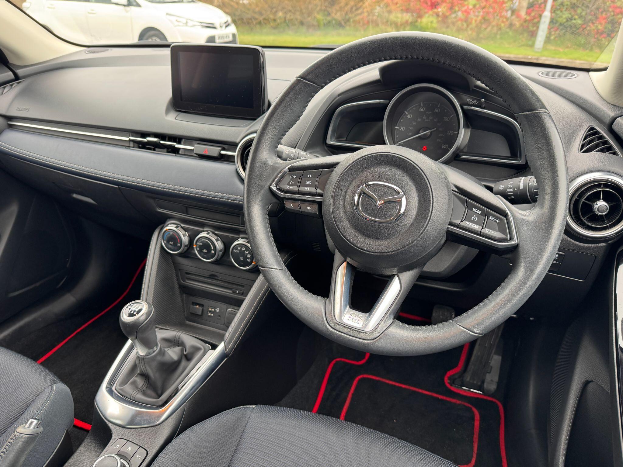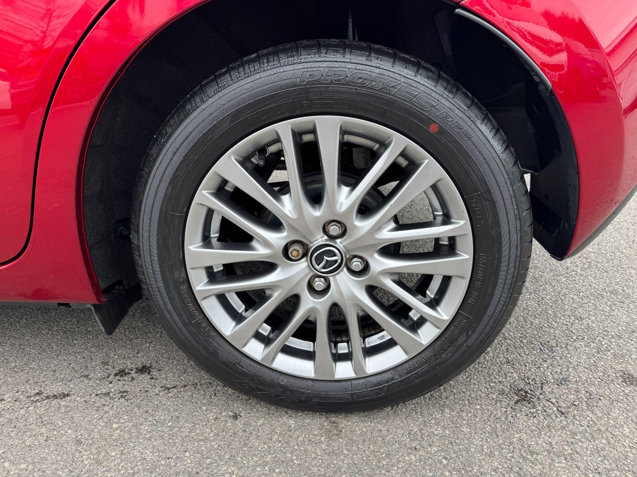 "features": "Adjustable speed limiter, Analogue speed display meter, Apple car play/Android Auto, Cruise control, Digital instrument cluster, Emergency stop signalling system, Integrated bluetooth with hands-free calling, bluetooth audio and easy access to phone contacts, Lane departure warning system, Lane keep assist, Mazda connect with 7\" colour touch screen, Multimedia Commander, Navigation system, PAS, Rear parking sensor, Service indicator, Trip computer, i-stop, 2 USB interfaces and Aux-In jack, Audio system with 6 speakers with 2 in driver headrest, AM/FM/DAB radio and single CD/MP3, Steering wheel mounted audio/bluetooth controls, Auto dimming rear view mirror, Body coloured bumpers, Chrome exhaust tailpipes, Chrome front lower bezel, Chrome rear lower bezel, Coming/leaving home lighting function, Dusk sensing headlights, Electric adjustable/heated/folding door mirrors, Electric front/rear windows with one touch, Gloss black front grille, LED indicator lights, LED third brake light, Privacy glass, Rain sensing front wipers, Rear wiper, Shark fin antenna, Signature LED headlights with LED daytime running lights, 60/40 split rear seats, Climate control air conditioning, Cloth upholstery, Driver, Front passenger and two rear grab handles with coathooks, Drivers seat manual slide recline and height adjustment, Drivers/front passengers covered vanity mirrors and drivers ticket holder, Folding rear seats, Front head restraints, Front passenger and driver door pockets, Front passenger seatback pockets, Gear shift indicator, Glovebox, Interior courtesy light with integrated spotlight, ISOFIX child seat anchorage points attached on outer rear seats, Leather handbrake, Leather steering wheel and gear knob, Luggage compartment light, Passenger seat manual slide and height adjustment, Three height adjustable rear head restraints, Tilt/telescopic adjustable steering wheel, 3 point seatbelts on all seats, Anti-lock braking system (ABS), Collision mitigation braking system, Dual front airbags, Dynamic stability control + Traction control, ESP, Front and rear curtain airbags, Front driver, passenger and rear seat seatbelt warning, Front side airbags, Front smart city brake support, G-Vectoring control plus, Hill hold assist, Passenger airbag cut-off switch, Tyre pressure monitoring system, Alarm, Immobiliser, Remote central locking, Smart keyless entry, Dark blue soft touch dashboard, 16\" alloy wheels, Emergency tyre repair kit, ",