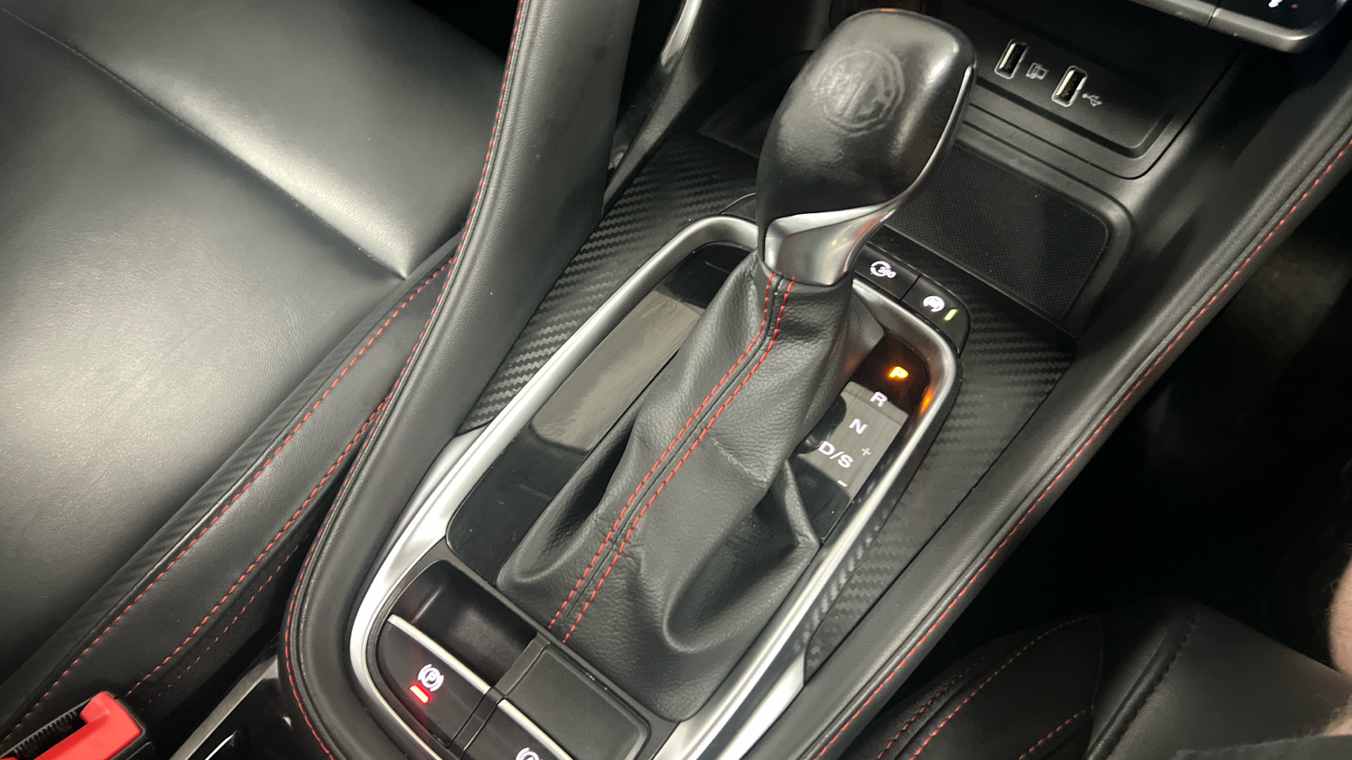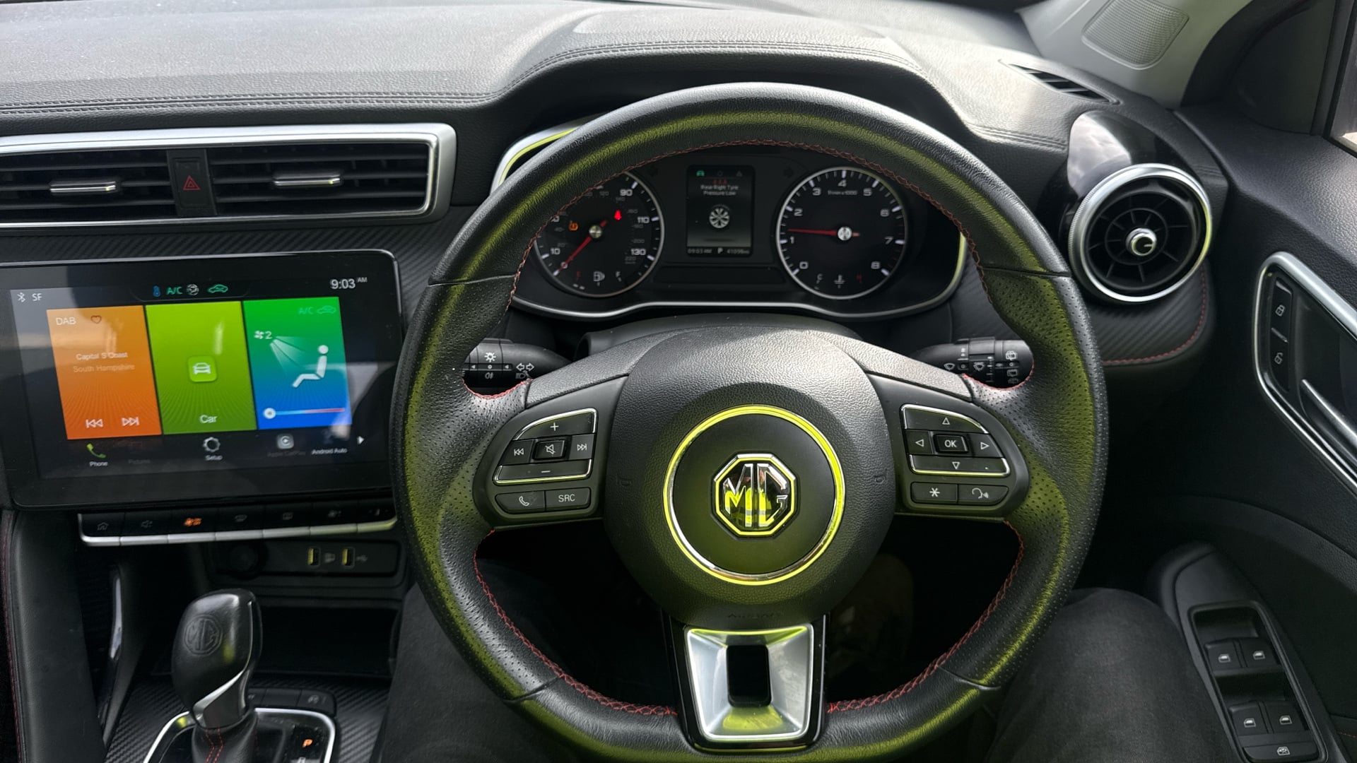 "Leather wrapped steering wheel and gear knob",