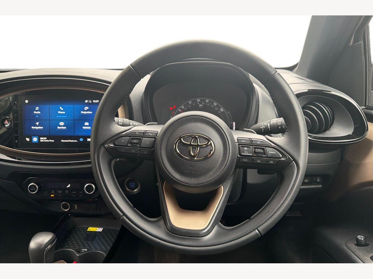 "features": "4.2\" TFT colour screen, Adjustable speed limiter, Analogue speedometer, Bluetooth connectivity, Digital tachograph, Driver attention alert system, eCall emergency call system, ECO-driving indicator, Electric power steering, Front and rear parking sensors with auto brake, Intersection turn assist, Key reminder warning, Noise reduction kit, Pre collision system with emergency steering assist, Remote boot door release on key, Reversing camera with static guide lines, Smart entry and push button start, Speed limit display, Start and stop, Wireless charger, Wireless Smartphone Integration includes Apple CarPlay and Android auto, Vehicle Stability Control (VSC), 4 speakers, 9\" HD multimedia display touch screen with Toyota smart connect, DAB digital audio broadcast, USB connector, Auto headlights, Auto wipers, Automatic headlights cut-off, Automatic high beam On/Off switch, Bicycle towing hook, Black fog light surrounds, Black side protection mouldings, Black wheel arch mouldings, Body colour door handles, Body coloured front bumper, Boot door scuff plate, Eclipse black rear bumper, Electric heated door mirrors, Follow me home headlights, Front and rear underruns in silver, Front fog lights, Front power windows, Gloss black door mirrors, Gloss black upper front grille, Headlight cut-off reminder, LED daytime running lights guide, LED front light guide, LED High mounted stop lamp, LED projector headlights, Manual day/night rear view mirror, Manual headlight levelling, Pagoda roof, Power adjustable door mirrors, Power back door, Privacy glass, Rain sensor, Rear combination lights LED bulb type, Rear side wing doors, Rear windscreen defogger, Rear windscreen wiper, Remote hazard lights system, Short antenna, Variable intermittent windscreen wipers, 12v power outlet - front, 2 seat bench in 2nd row, 3 spoke leather steering wheel, 50/50 split folding rear seat, Adhesive roof headlining, Adjustable speed limiter switch on steering wheel, Audio and telephone switches on steering wheel, Auto air conditioning, Black roof lining, Body colour satin anodised insert on steering wheel, Boot light, Centre room light, Chrome interior door handles, Chrome surround on air conditioning buttons, Clean air filter, Console box storage, Floor mats, Front and rear cup holders, Front head rest deco art, Front head restraints, Gear shift indicator, Height adjustable driver seat, Intelligent adaptive cruise control switch on steering wheel, ISOFIX child restraint system on rear seats, Lane departure alert switch on steering wheel, Leather gearshift knob, Light blue ambient lighting in centre console, Manual tilt steering wheel, Manually reclining and sliding driver seat, Manually reclining and sliding front passenger seat, Multimedia switches on steering wheel, Paddle shift levers on steering wheel, Partial synthetic leather upholstery, Pollen filter, Rear door pockets, Rear head restraints, Remote air-conditioning system, Satin silver insert on gear shift knob, Single compartment glovebox with lights, Single front passenger seat, Soft tonneau cover, Sun visors with mirror on driver and passenger side, Voice recognition switch on steering wheel, Toyota safety sense pack - Aygo X, Anti lock braking system + Electronic brake force distribution, Child safety door lock, Emergency brake light signal (EBS), Hill start assist control (HAC), Passenger airbag on/off switch, Seat belt reminder for front and rear seats, Supplement restraints system (SRS) - 6 airbags, Traction control, Tyre pressure warning system, Immobiliser, Remote power door locks, Black wheel centre caps, Tyre repair kit, ",