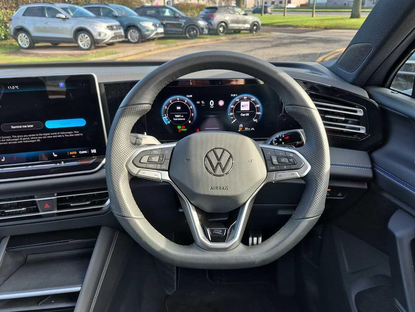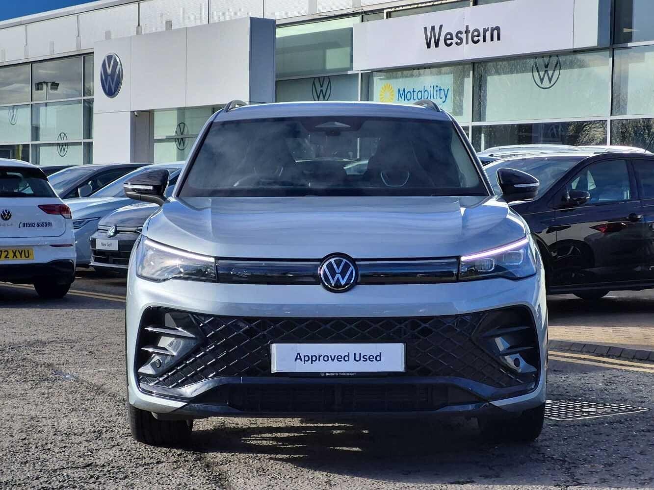 "remarks": "This 2025 Volkswagen Tiguan eTSI R-Line presents an exceptional opportunity with its remarkably low mileage of just 1661 miles, a testament to its careful single ownership. As a Volkswagen manufacturer approved vehicle, it offers peace of mind, boasting a 1.5 litre petrol hybrid engine and meeting Euro 6 emission standards. This R-Line trim level is further enhanced by the striking Black Style Package, featuring 20 inch York alloy wheels in a sleek black finish. Inside, you'll appreciate the convenience of a Bluetooth mobile phone interface and the comfort of heated front seats, all contributing to a refined driving experience.The Tiguan eTSI R-Line excels with its impressive performance, achieving 0 to 62 miles per hour in a swift 9.1 seconds, demonstrating its dynamic capabilities. This acceleration figure highlights its advantage over many similar vehicles. Furthermore, the generous boot space ensures practicality for all your needs, making it a versatile choice for families and individuals alike. This combination of low mileage, single owner provenance, desirable R-Line specification with the Black Style Package, and practical features makes this Tiguan a standout option.Pre-Owned Delivery Charge of ?£99 includes the following benefits: > Prices are checked regularly to guarantee Permanently Good Value. > Fixed Price - No haggle, hassle-free buying. > Mileages are checked independently and guaranteed. > All vehicles are checked against the insurance & finance databases to guarantee no major claims or outstanding finance. > Every vehicle goes through the VW preparation process.",