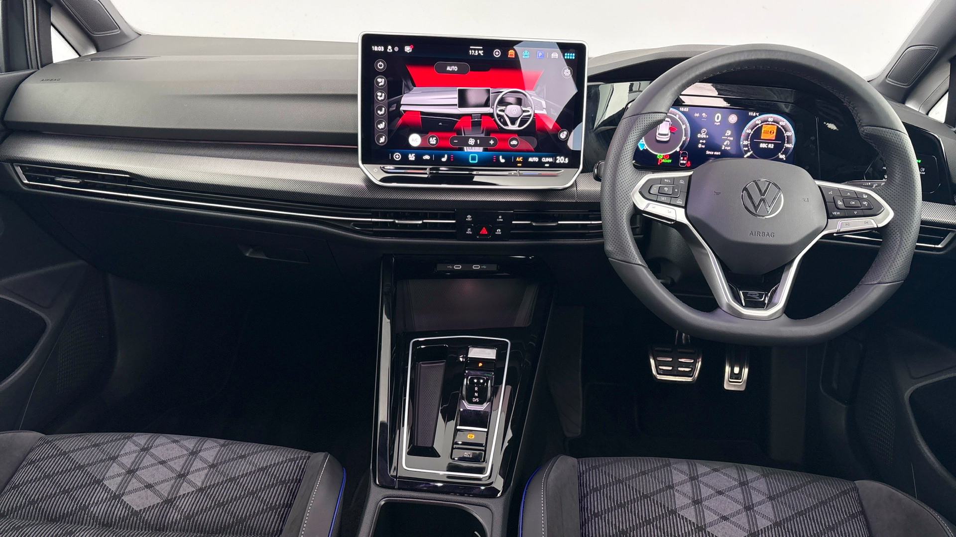 "features": "Activated carbon canister, Adaptive cruise control (ACC), Advanced driver attention and drowsiness monitor, Dynamic road sign display, Dynamic steering, E-Sim card for online connectivity, eCall emergency call system, Multi-color Digital cockpit pro, selection of different info profile possible, Multifunction front facing camera for distance control, Navigation system, Oncoming vehicle braking when turning including swerve support, Speed limiter, Speedo, rev counter, electronic odometer, trip, service interval display, exterior temperature and fuel gauge, Traffic jam assist, Voice enhancer and voice control, Warning signal and warning light for front and rear seatbelts not fastened, We connect plus preparation, We connect preparation, Wireless app connect, Hybrid propulsion system, Petrol Particulate Filter, Start-stop system with battery regeneration (recuperation - energy recovery during braking), XDS electronic differential lock for improved traction and handling, 2 USB C ports in front, 2 USB charging sockets on the centre console in the rear charging capacity upto 45W, Digital radio reception (DAB), Diversity antenna for FM reception, Gaming platform via car app, Infotainment system with 12.9\" display, Mobile phone interface with inductive charging feature, 3rd brake light, Auto dimming rear view mirror, Automatic headlamp activation with Coming home and Leaving home feature, Body colored bumpers in R-Line style, Body colour door handles, Exterior ambient lighting, Exterior mirrors convex on the left and aspherical on the right, Front and rear electric windows, Heat insulating windshield made of laminated glass, LED separate daytime running light, Rain sensor, Rear exhaust tailpipe, Rear fog light on one side and reversing lights on both sides, Rear side wing doors, Rear windscreen washer and wiper with interval delay, Remote electrically foldable door mirrors, puddle lights and reverse activated passenger's door mirror, Volkswagen logo in front, illuminated lighting animation with wake up/goodbye scenario and illuminated door handles, Welcome light with surround lighting, 12V socket in front centre console, 12V socket in luggage compartment, 3 rear head restraints, 3 seat bench in 2nd row, Ambient lighting with 30 colour including LED light unit in front footwell with selectable light colour, Black roof lining, Brushed stainless steel pedals, Chrome plated radiator grille inserts, air vent surrounds and light switch surrounds, Door insert, side trim panel and arm support in leatherette, Front + rear black carpet mats, Front centre armrest, Front seat lumbar support adjuster, Integrated front head restraints, ISOFIX anchors for child seats on outer rear bench seats and on front passanger seat compatible for i-Size, Luggage compartment lighting, Manual height adjustable front passenger seat, Manually height adjustable driver seat, Plastic gear knob, Premium sports seats in front, Rear cupholder and loadthough, Sardegna cloth upholstery with front and outer rear seats Art Velour inner sides of bolsters, Single front passenger seat, Split folding backrest with centre armrest and unsplit rear seat bench, Sun visors with illuminated vanity mirrors, Titanium black instrument panel, Black exterior Styling package with Matrix LED headlights - Golf, Winter package - Golf DSG Estate/Hatchback, 3 point height adj front seatbelts + pretensioners, 3 rear three point seatbelts, ABS, Autonomous emergency braking front assist with pedestrian and cyclist monitoring, Child locks on rear doors, Driver and front passenger airbag with front passenger airbag deactivation, Electronic parking brake with auto hold, ESC (Electronic Stability Control), Extended pedestrian protection measures, Hill start assist, Rear disc brakes, Two tone horn, Tyre pressure loss indicator, Volkswagen roadside assistance, Anti theft wheel bolts, Preparation for alcohol interlock, Decorative inserts carbon grey for dashboard and front door trim panels, 18\" Leeds alloy wheels, Tool kit for tyre mobility set, Tyre mobility kit Includes 12V compressor and tyre sealant, ",