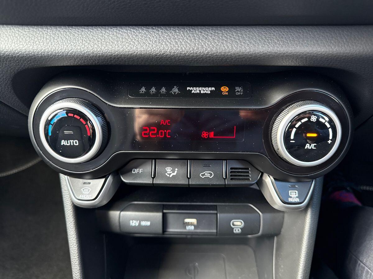 "features": "4.2\" driver display screen, 8\" touchscreen navigation, Apple car play/Android Auto with voice control, Blind spot collision avoidance assist, Cruise control + speed limiter, Emergency call service, Emergency stop signalling system, External temperature gauge, Forward Collision-Avoidance Assist (FCA) 1.5 - City/Pedestrian/Cyclist/Junction turning, Intelligent speed limit assist, Kia Connect (UVO), Lane Follow Assist 1.0, Lane keep assist, Motor driven power steering, Rear parking sensors, Reversing camera system, Tachometer, Trip computer, Wireless Smartphone charger, 4 speaker audio system, Bluetooth with music streaming, USB ports for connection of a media device, Automatic defog system, Automatic headlight control system, Body colour bumpers, Body coloured door mirrors, Body coloured side sills, Body coloured wheel arches, Electric adjustable/heated/folding door mirrors with LED indicators lights, Electric front and rear windows, Electric front touch drivers front window, Gloss black radiator grille, GT-Line exterior styling, Headlamp levelling, Heated rear window, High mount brake light, LED daytime running lights, LED Headlights, LED rear lights, Privacy glass - Rear windows and tailgate, Rain sensor, Rear fog lights, Rear side wing doors, Rear wiper, Silver window surround, Speed variable front wipers, Sunroof with tilting and sliding function, Tinted windshield glass, Visible VIN plate, 12V power point front, 3 seat bench in 2nd row, 60:40 Split folding rear seats, All round height adjustable headrests, Alloy pedals, Artificial leather steering wheel, Artificial leather upholstery, Automatic air conditioning, Centre console storage box, Driver side sunvisors with illuminated vanity mirrors, Front and rear door storage, Front cabin lights, Front passenger side sunvisor with vanity mirrors, Front passenger USB-C charging port, Glovebox, Grey headlining, GT-Line Interior Styling, Heated front seats, Heated steering wheel, ISOFIX Child seat top tethers and anchor fixings outer rear seats, Luggage area light, Luggage area parcel shelf, Luggage board, Luggage net + hook, Manual adjust steering wheel, Manual adjustable driver and front passenger seat, Rear USB charging port, Single front passenger seat, All round 3-point seatbelts, Anti-lock braking system (ABS), Electronic stability control, Front + rear side airbags, Front airbags, Front passenger airbag cut-off switch, Front seatbelt height adjusters, Hill hold control, Hill start assist control (HAC), Rear airbags, Seatbelt warning, Side impact protection, Torque vectoring brake based and straight line stability (SLS), Traction control, Tyre pressure monitoring system, Vehicle stability management, Central door locking, Folding key, Locking wheel nuts, Manual child locks, Rear occupant alert, Smart key with engine start/stop button, Smart key with motion sensor, Thatcham category 2 security alarm and immobiliser, 16\" alloy wheels with GT-Line styling, Tyre mobility kit, ",