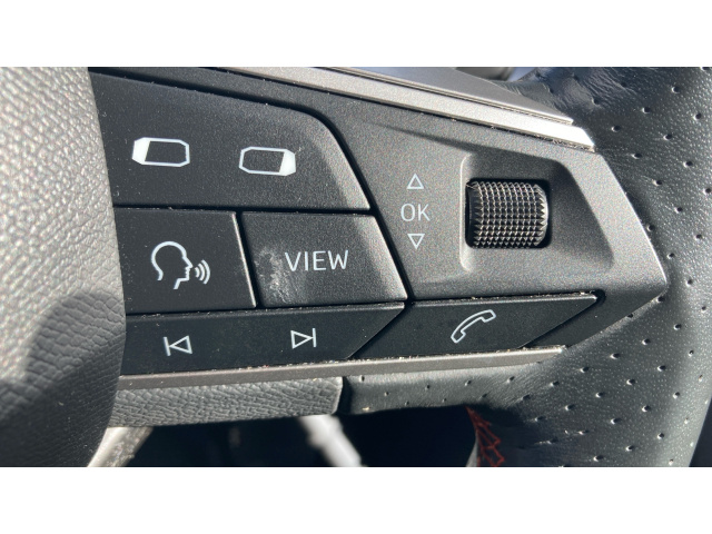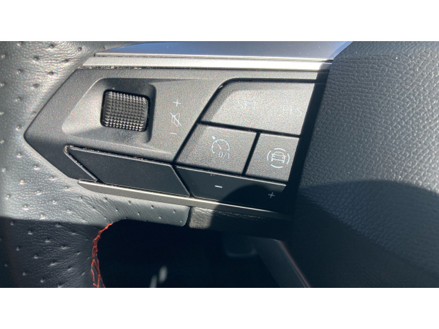 "Eco Leather steering wheel with cruise speed limiter controls",