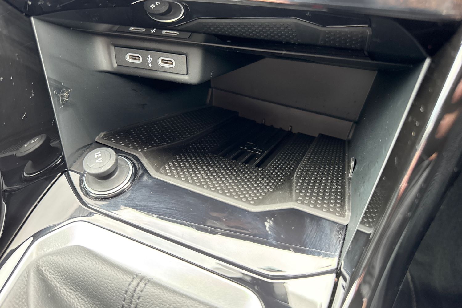 "12V outlet in front and tray",