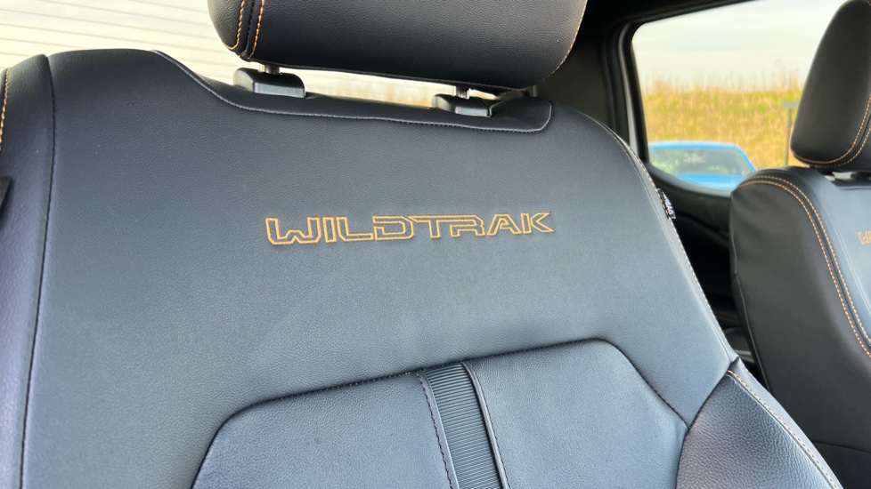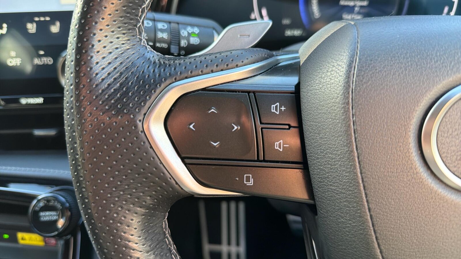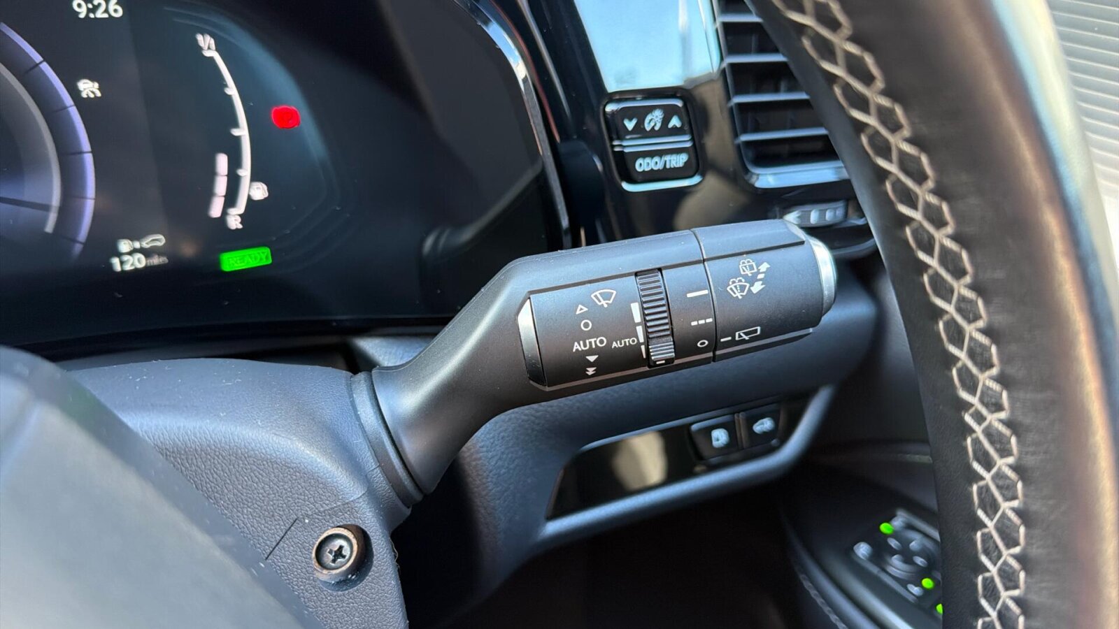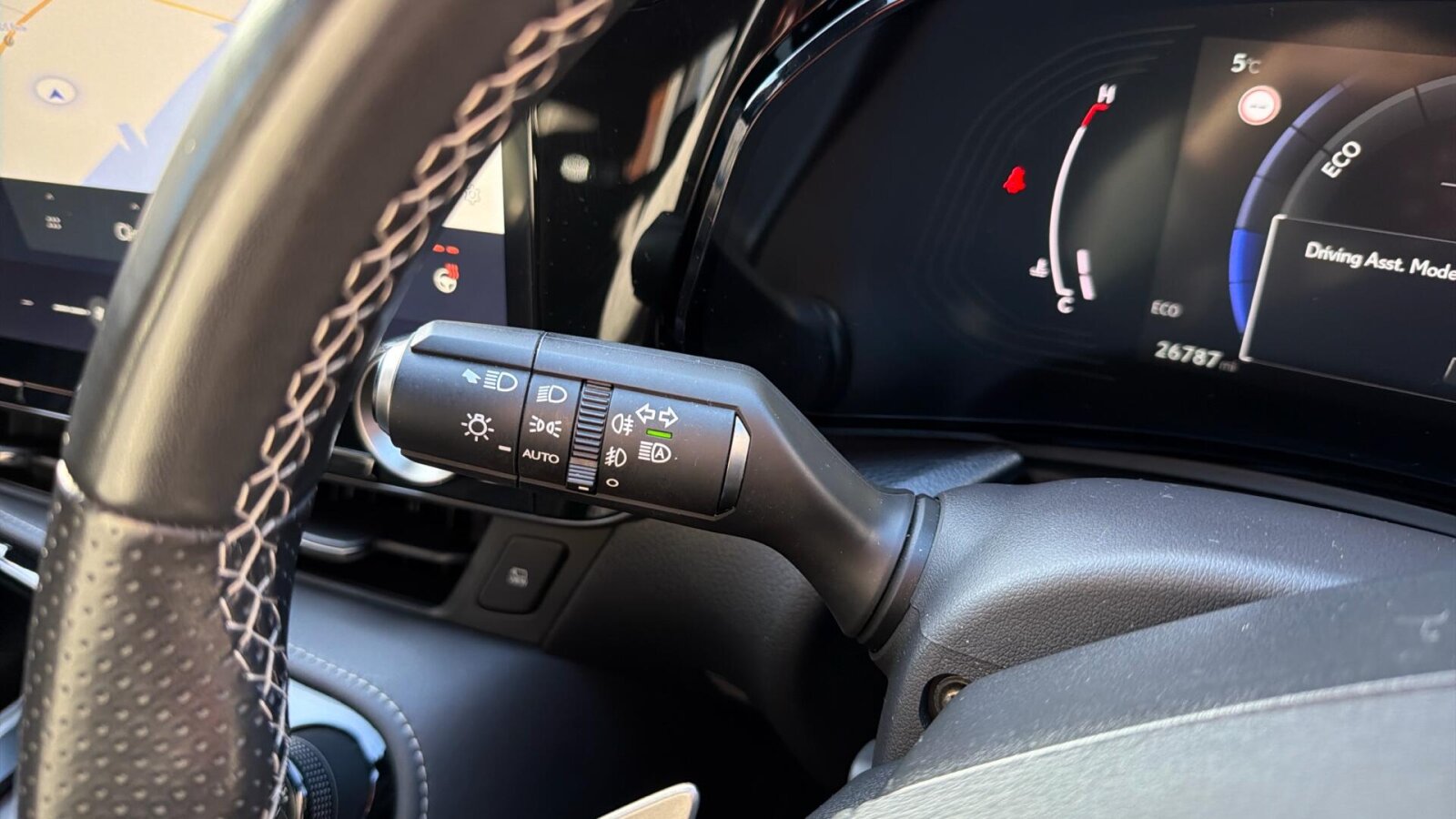 "Leather steering wheel with detail stitch",