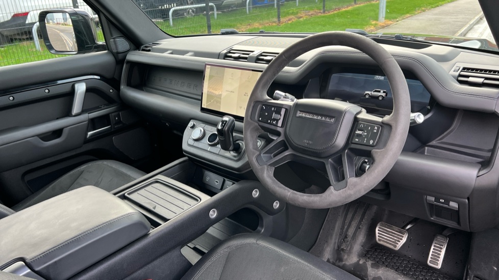 "features": "11.4\" touchscreen, 360 degree parking aid, 3D Surround Camera with 360 View, 180 Rear View, Front Traffic Detection, Forward Vehicle Guidance, Tow Hitch Assist and clear sight Ground View, Adaptive cruise control, Android Auto, Apple CarPlay, Assisted tailgate with soft close, Blind spot assist, Bluetooth system, Brake pad wear indicator, Clear exit monitor, Connected navigation pro, Driver condition monitor, Electric power assisted steering (EPAS), Interactive driver display, Lane keep assist, Push button start, Rear collision monitor, Rear traffic monitor, Traffic sign recognition with adaptive speed limiter, Trip computer, Wade Sensing, 8 speed automatic transmission, All wheel drive system, Twin speed transfer box, DAB Radio (Digital Audio Broadcasting), Meridian 400w sound audio system with 11 speakers and subwoofer, Pivi pro connected, Automatic headlight levelling, Automatic headlights, Black exposed rear recovery eyes, Centre high mounted stop light, ClearSight interior rear view mirror, Electric heated/power fold door mirrors with approach lights and auto dimming driver side, Electric windows with one touch open/close and anti-trap, Follow me home lighting, Front fog lights, Heated rear window with timer, Heated windscreen, LED tail lights, Privacy glass, Puddle lights, Rain sensing windscreen wipers, Rear fog lights, Rear side wing doors, Rear wiper, Side hinged tailgate, Trailer stability assist, X-Dynamic badge, 12V power socket in loadspace, 14 way heated and cooled electric adjustable memory front seats with 4 way manual headrests, 3 seat bench in 2nd row, Alpine lights, Configurable cabin lighting, Durable rubber cabin flooring, Durable rubber loadspace flooring, Electric reach + rake adjustable steering column, Extended leather upgrade, Footwell lights, Front passenger isofix child seat attachment, Heated steering wheel, Loadspace cover, Loadspace Hook, Multifunction steering wheel, Overhead stowage for sunglasses, Premium cabin lighting, Rear headrests, Rear ISOFIX, Rear reading lights, Single front passenger seat, Standard seat configuration, Storage glovebox, Sunvisors with illuminated vanity mirrors, Online pack with data plan - Defender, 5 x 3 point seatbelts, ABS, Brake hold function, Cornering brake control (CBC), Customer configurable autolock, DSC - Dynamic Stability Control, EBD - Electronic brakeforce distribution, Electric parking brake (EPB), Emergency brake assist, Emergency braking, ESP + traction control, Front airbags with passenger seat occupant detector, HDC - Hill descent control, Hill launch assist, Low traction launch, Power operated child locks, Remote for (e-Call,Optimised assistance call,InControl app,Climate,beep and flash and door), RSC - Roll stability control, Seat belt reminder, TPMS (Tyre pressure monitoring system), Alarm, Immobiliser, Intrusion sensor, Keyless entry, Locking wheel nuts, ",