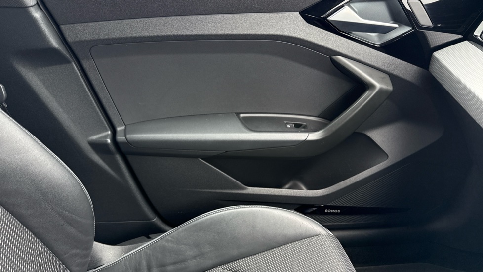 "Door and side trim panel in foam film and woven fabric",