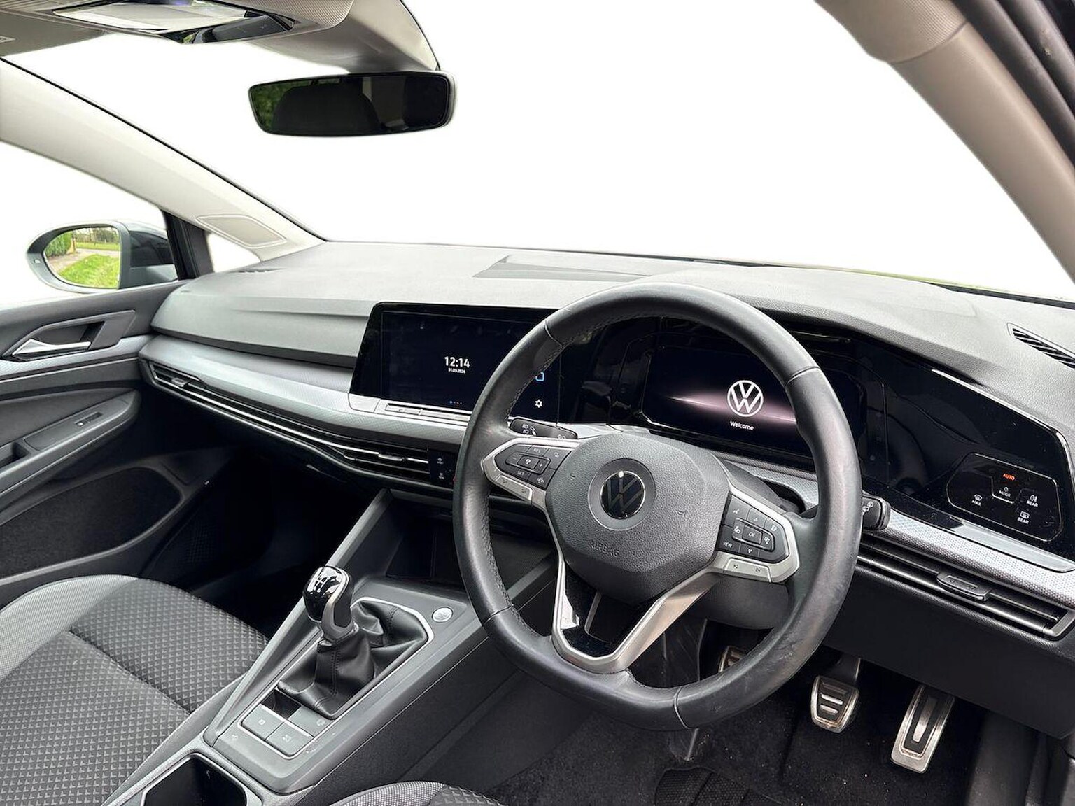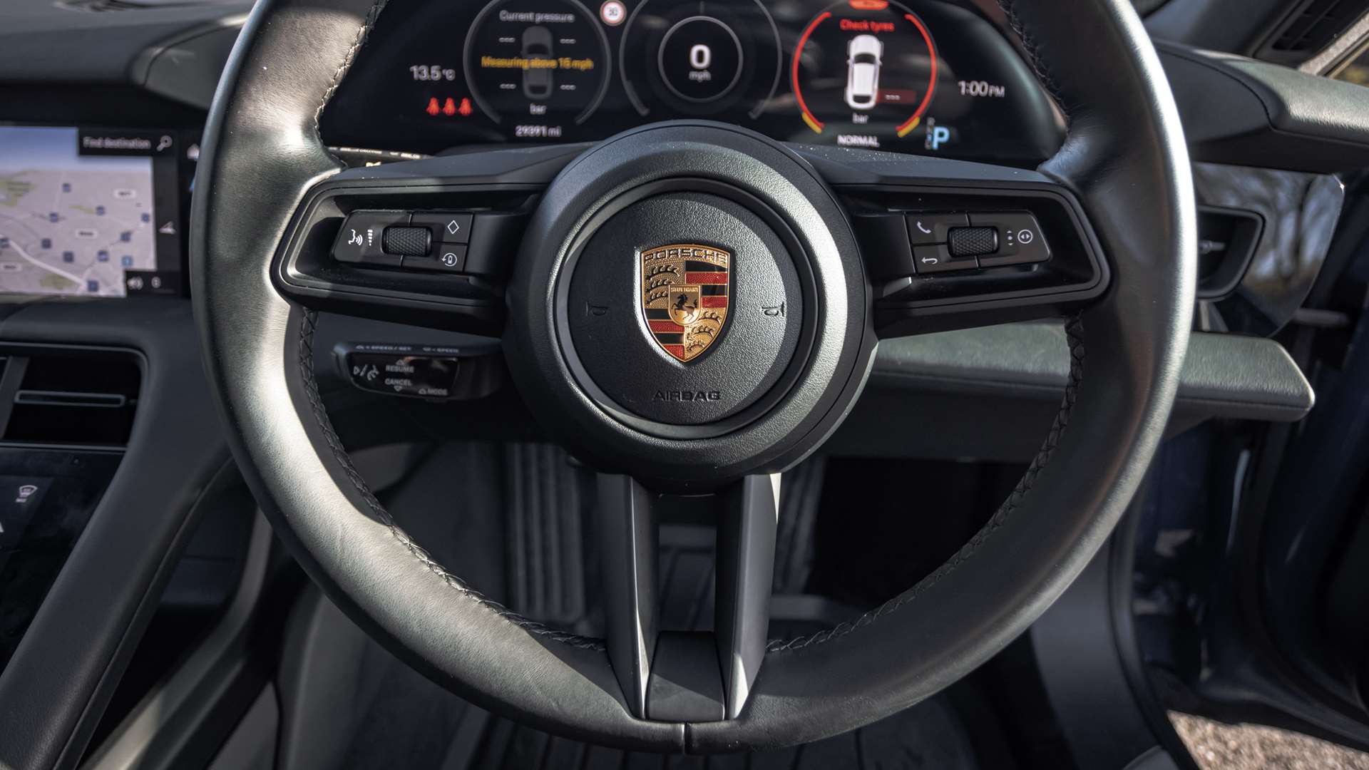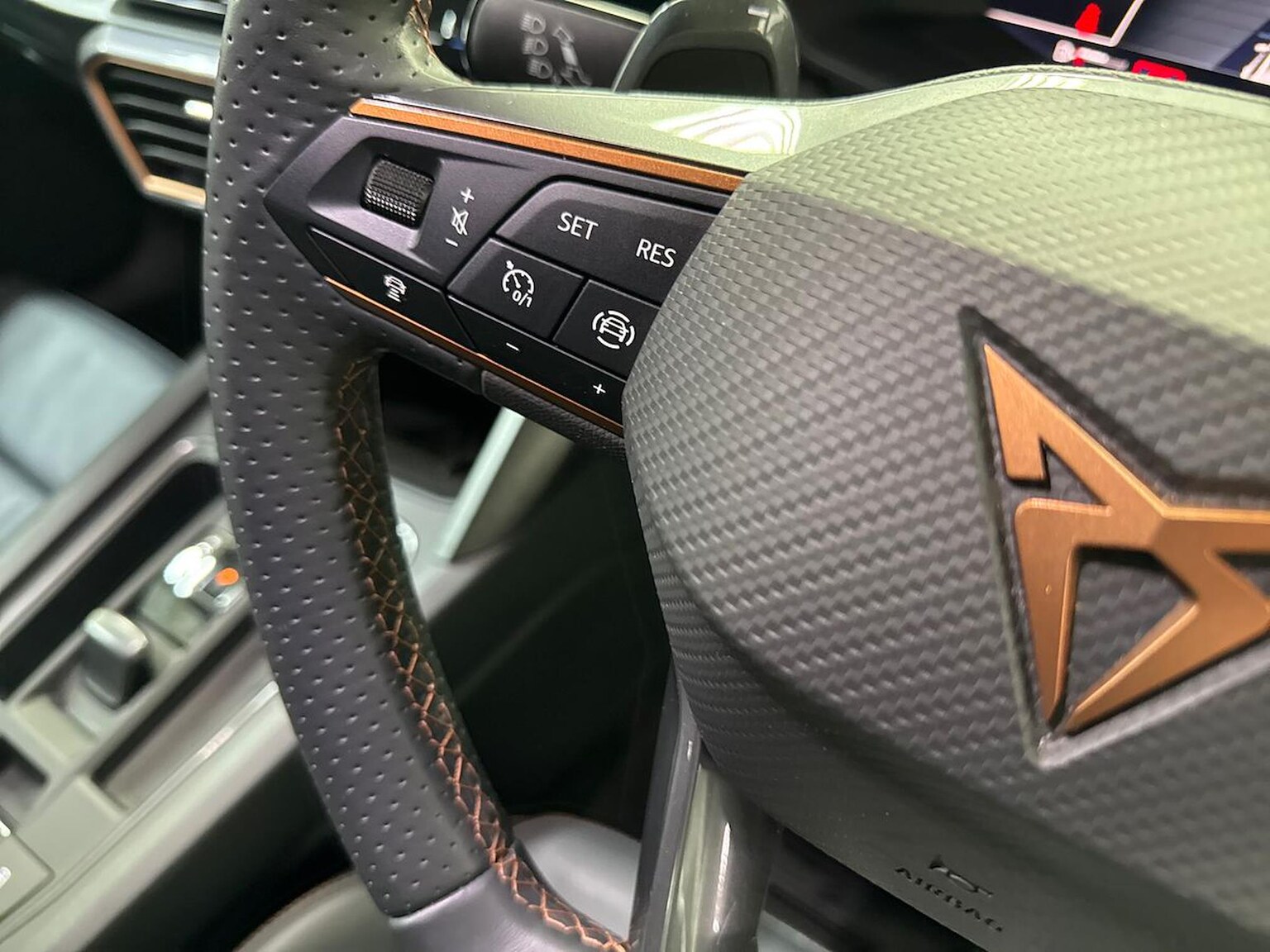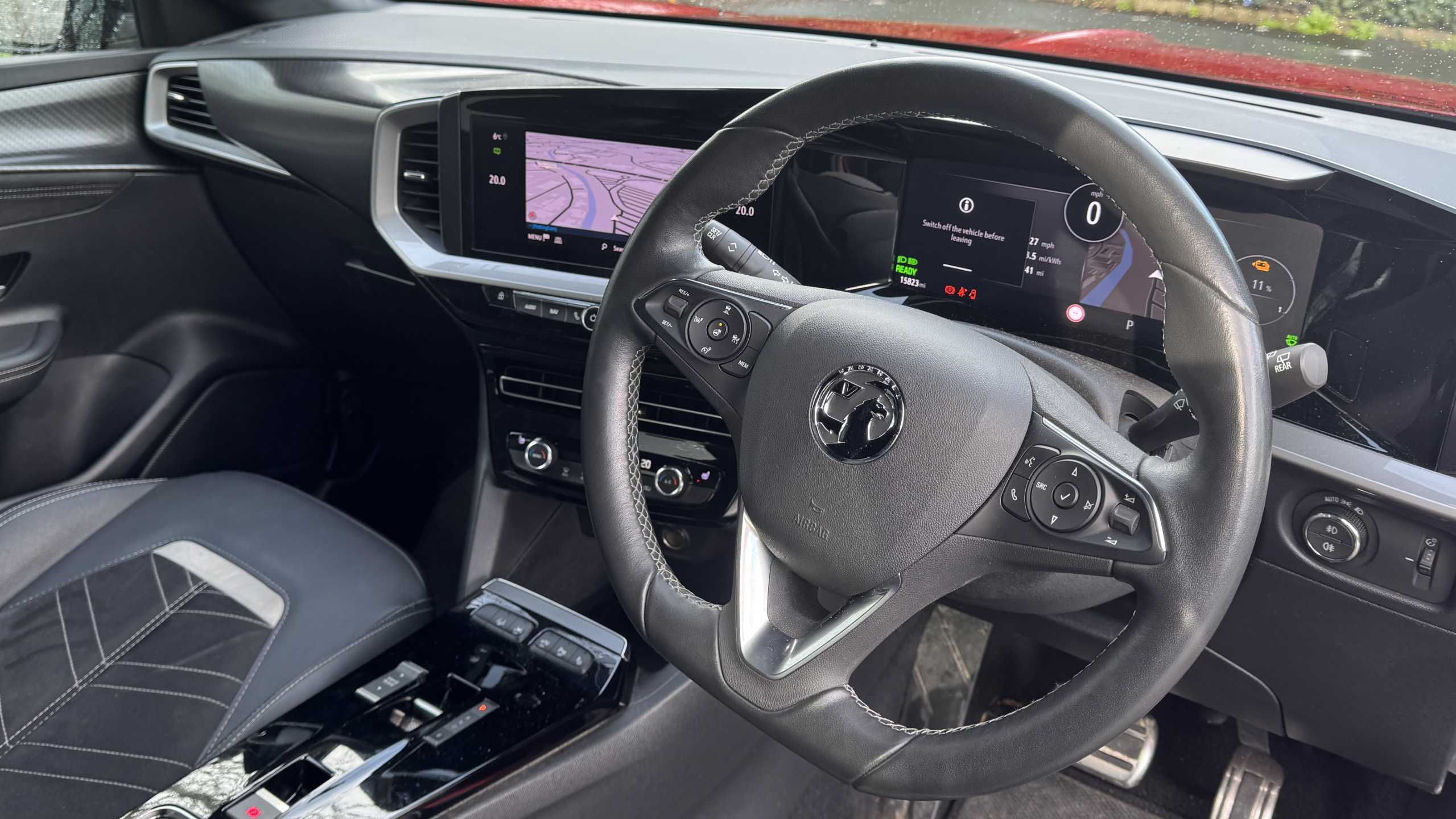 "3 spoke flat bottomed multifunction plus sports contour leather wrapped steering wheel with shift paddles",