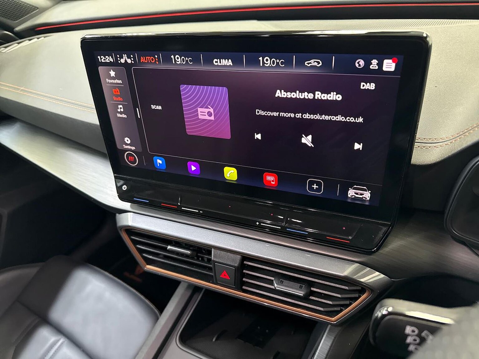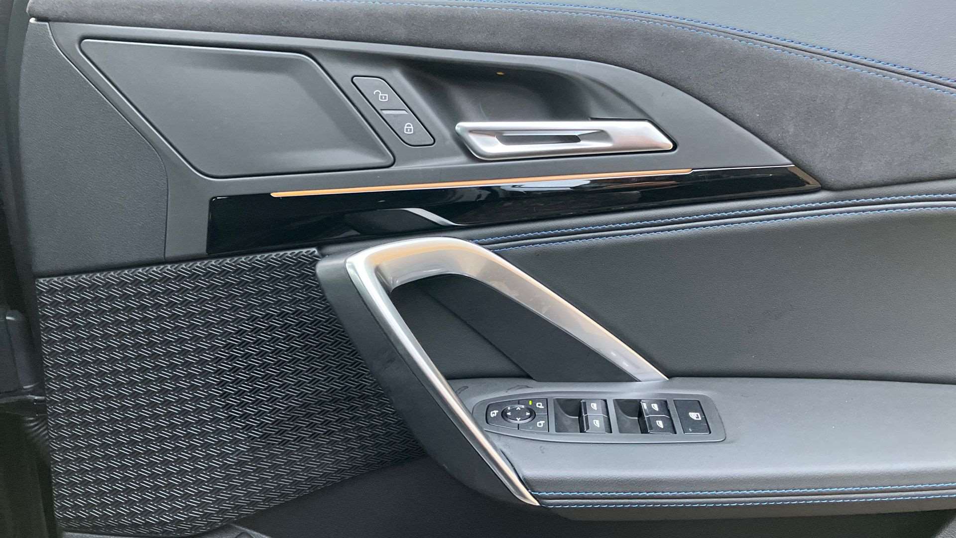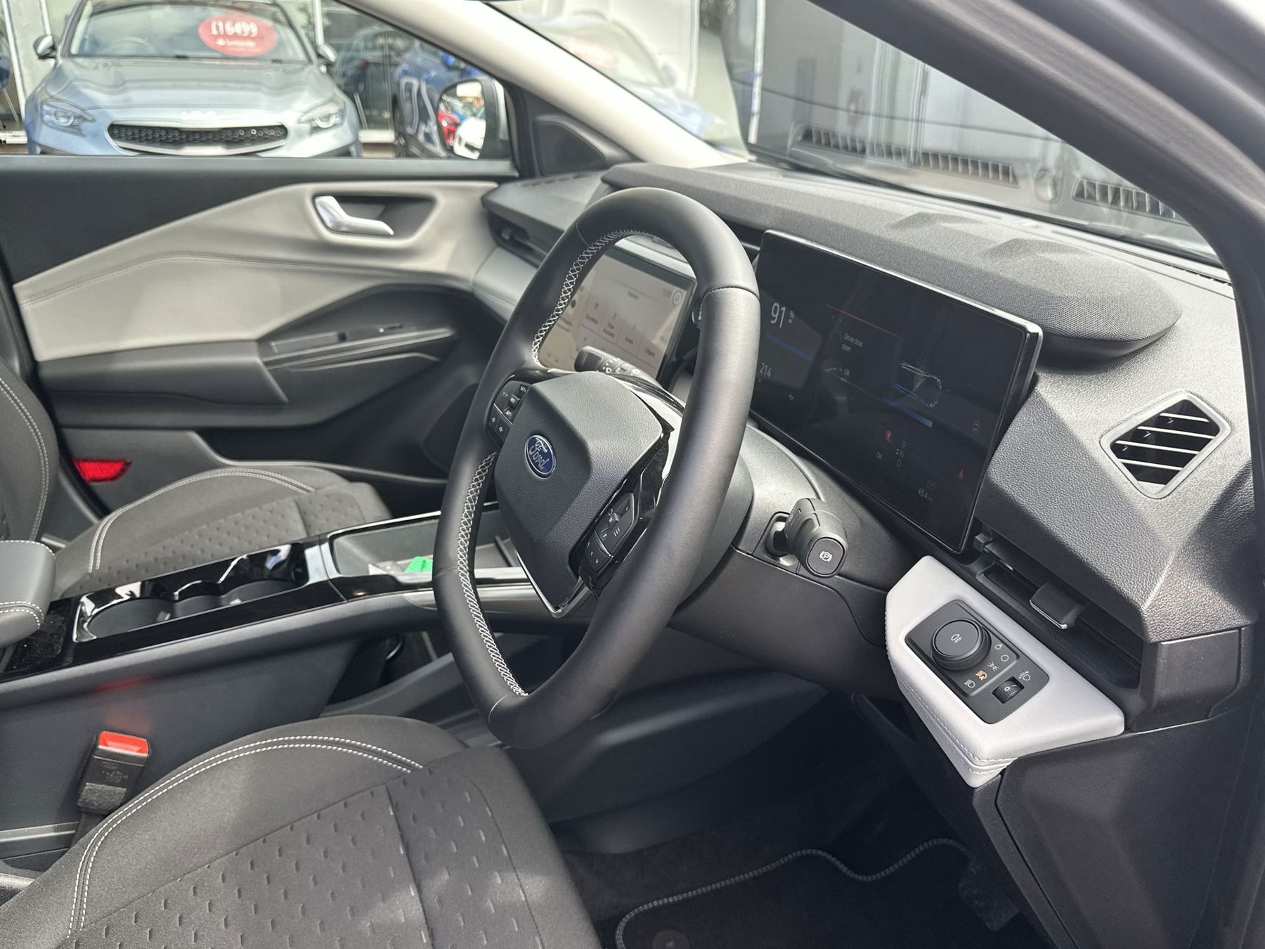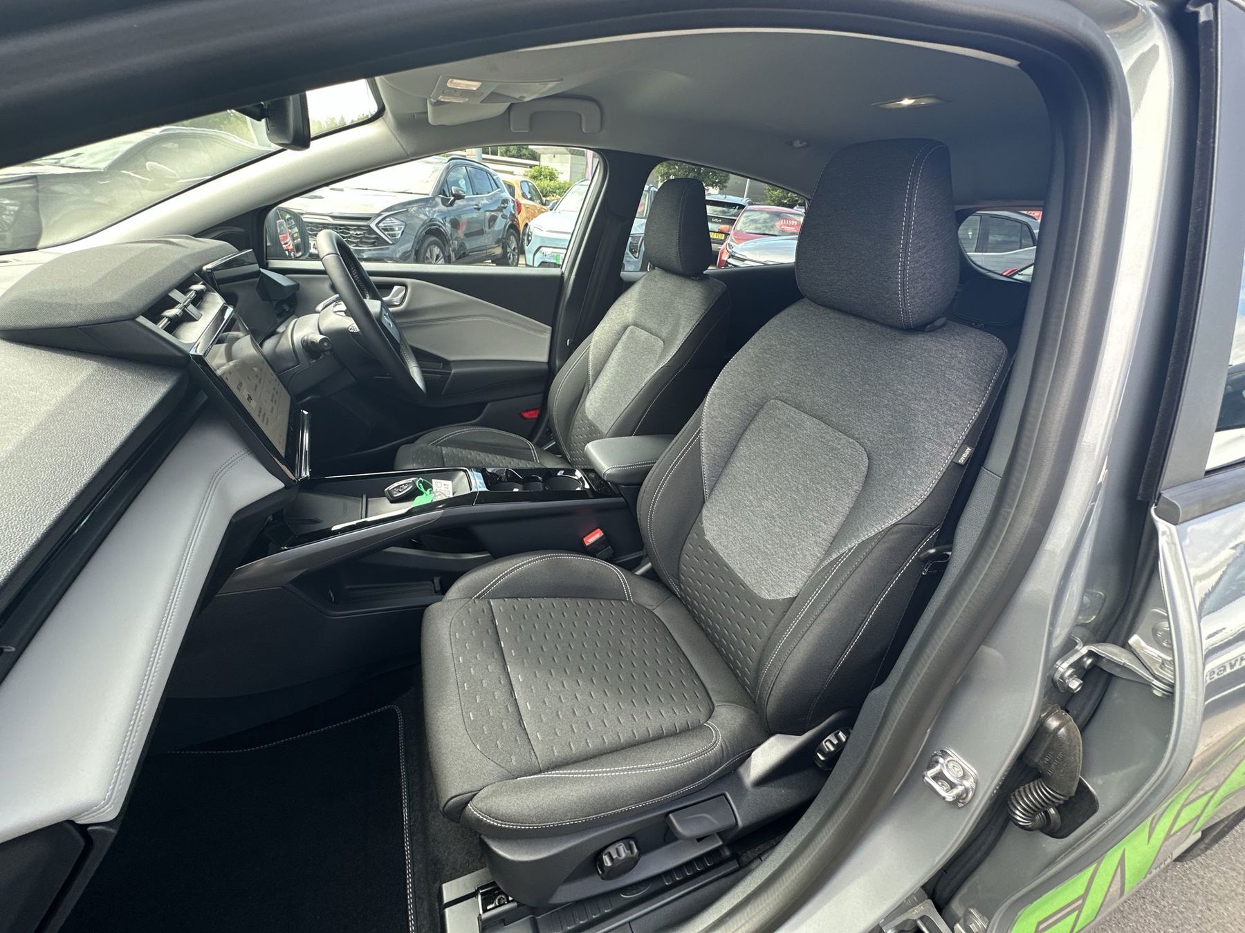 "Accent surfaces in the dashboard and centre console in platinum grey silk effect paint finish",