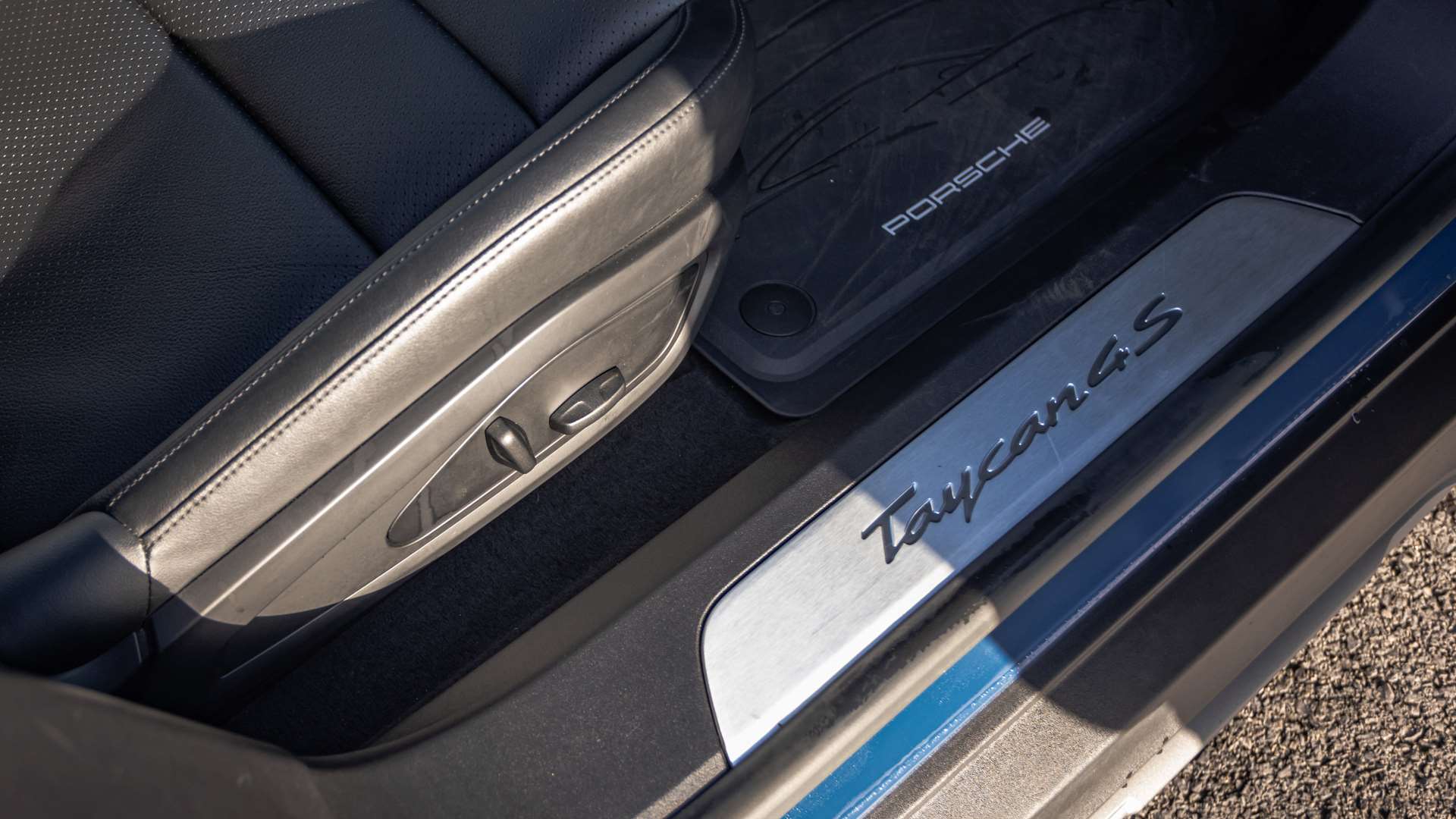 "Illuminated aluminium inserts front door sills with S logo",