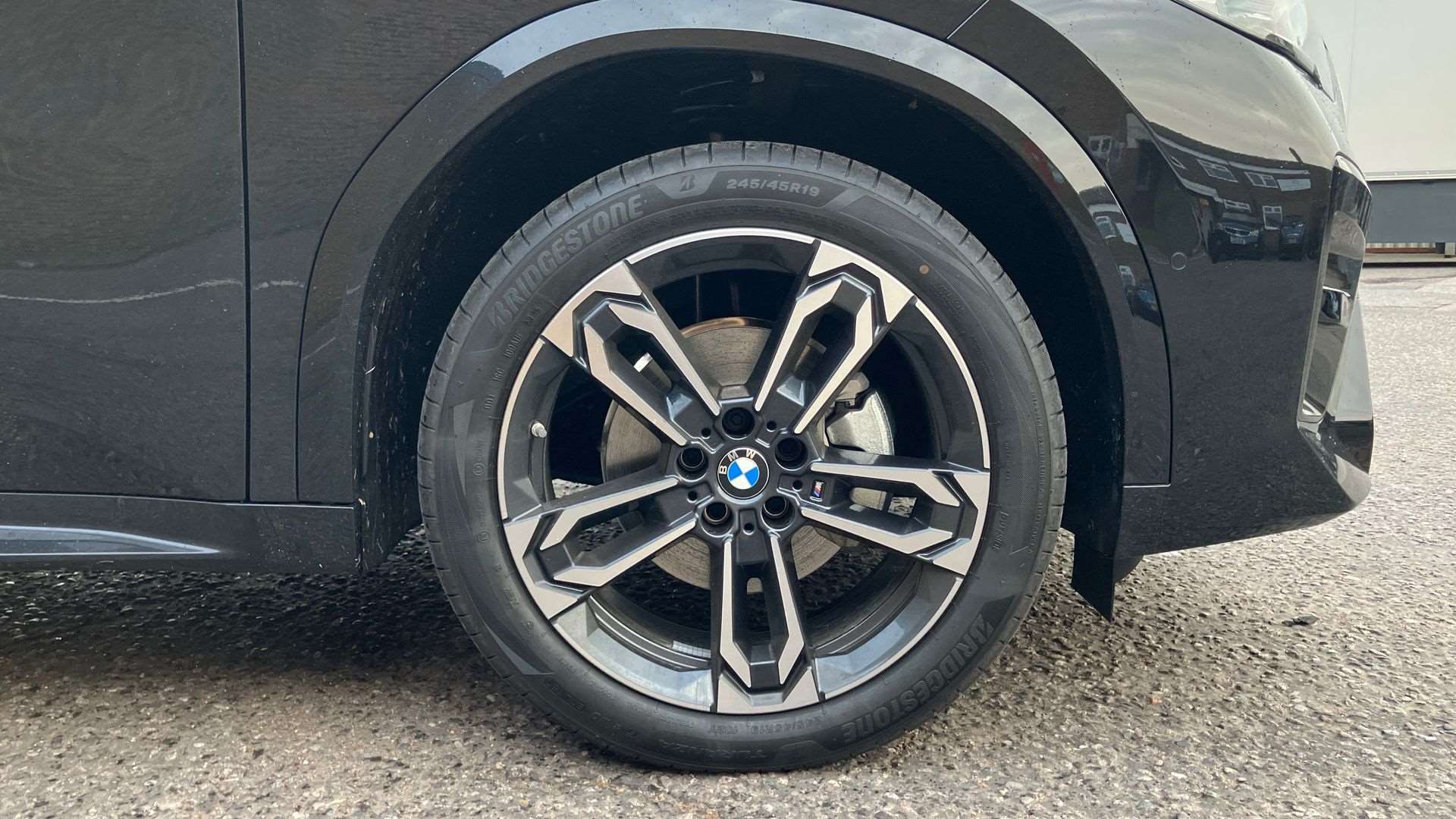 "19\" 5 arm trapezoid design alloy wheels in titanium matt grey with diamond cut finish"