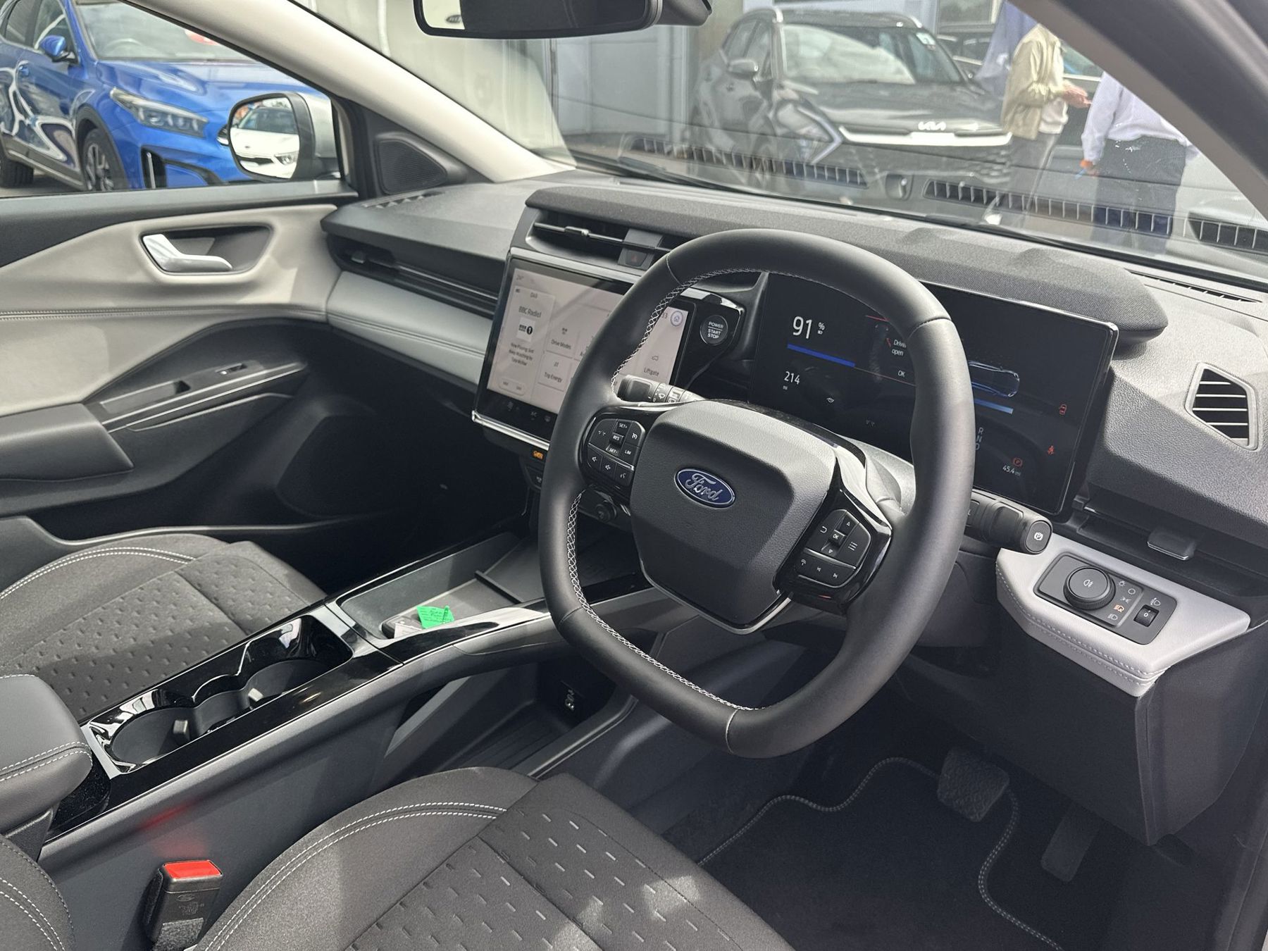 "features": "5G embedded modem, Apple CarPlay and Android Auto (wireless), Column stalk shifter, Cruise control with Intelligent speed assist, Driver impairment monitor, EcoCoach - Efficient driving monitoring system, Emergency call service, Lane departure warning, Lane keeping aid, Manual tailgate, Power assist steering, Rear parking sensors, Rear view camera, Selectable drive modes(Normal, sport, Eco, trail, slippery), Speed sign recognition, Vinyl wrapped instrument panel (High Level), Wireless charging, Wrong way alert, Blue oval charge network - Lifetime access, Standard suspension, 12.8\" Digital cluster, 2 USBs, connected navigation center, 6 radio speaker, Ford pass connect and emergency assistance, SYNC 4 with 12\" Touchscreen display, Acoustic laminated windscreen, Active grille shutters, Auto dimming interior rear view mirror, Auto headlights, Auto high beam, Automatic windshield wiper, Front and rear electric windows with one-touch up/down, Front headlamp leveling, Gigabox and frunk, LED daytime running lights, LED projector headlamps, LED rear lamps, LED third brake light, Lower bumpers, wheel arches, side claddings body color with spears in high gloss black, Power adjustable door mirrors with manual folding function, Privacy glass, Quickclear heated windscreen, Rain sensing wipers, Rear side wing doors, Rear wiper, Unique aerodynamically styled front bumper, rear bumper and spoiler, 3 seat bench in 2nd row, 4 way manually adjustable drivers seat, Centre console, Deluxe headliner, Driver's seat with lumbar adjustment, Electronic automatic temperature control (EATC), Fabric upholstery, Front and rear head restraints, Front and side airbags for driver and passenger, Manual 4 way passenger seat with lumbar support, Multi colour ambient lighting, Premium front floor mats, Sensico steering wheel, Single front passenger seat, Standard foot pedals, 3 rear seatbelts, Air curtain restraint, Anti-lock brake system (ABS), Autonomous emergency braking, Child safety lock, Electric parking brake, ESP with electric brake boost, Front disc brakes and rear drum brakes, Non painted brake calipers, Pedestrian/cyclist detection & post-collision braking, Pre collision assist system, Tyre pressure monitoring system (TPMS), Ford Power start button, Locking wheel nuts, Thatcham alarm with power door dead locks, 17\" Alloy wheels, Tyre repair kit, ",