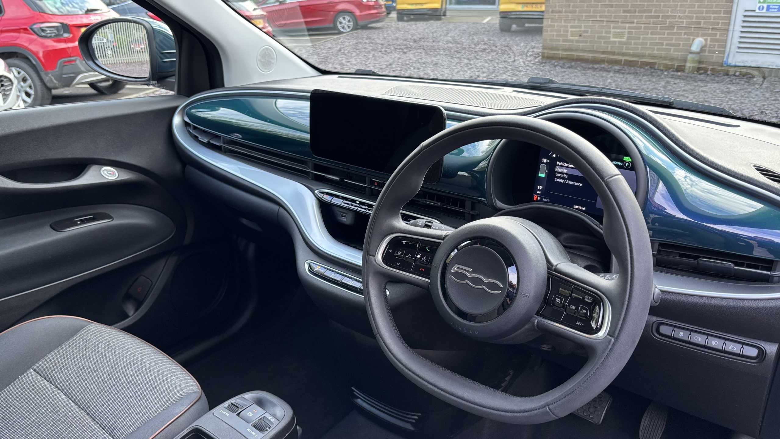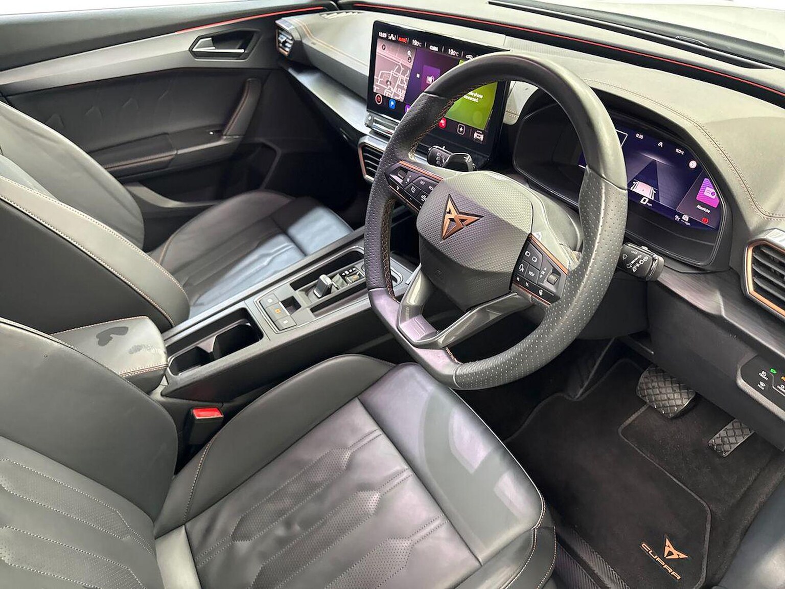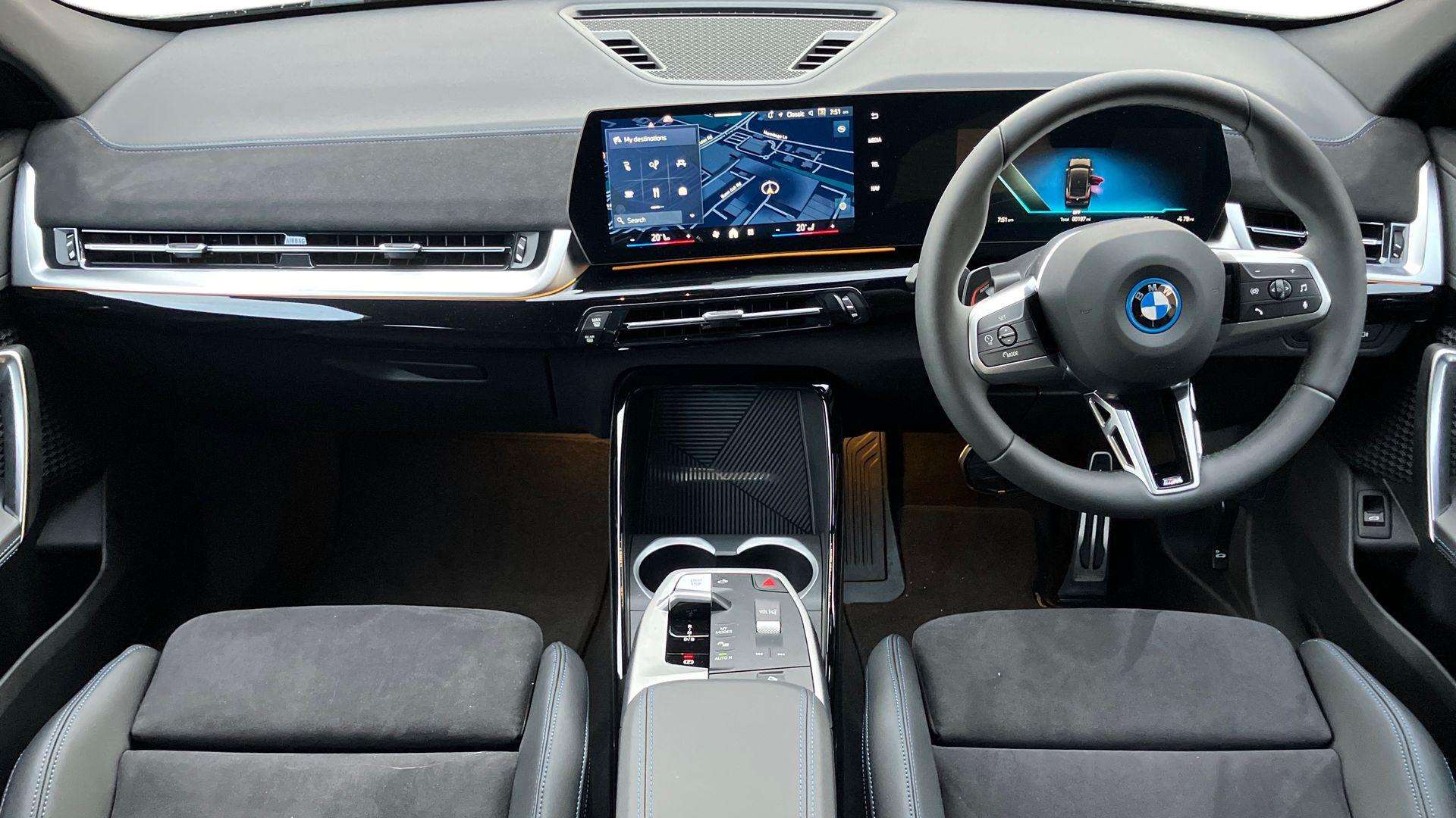 "Alcantara/twin leather upholstery with front sports seats S embossed logo",