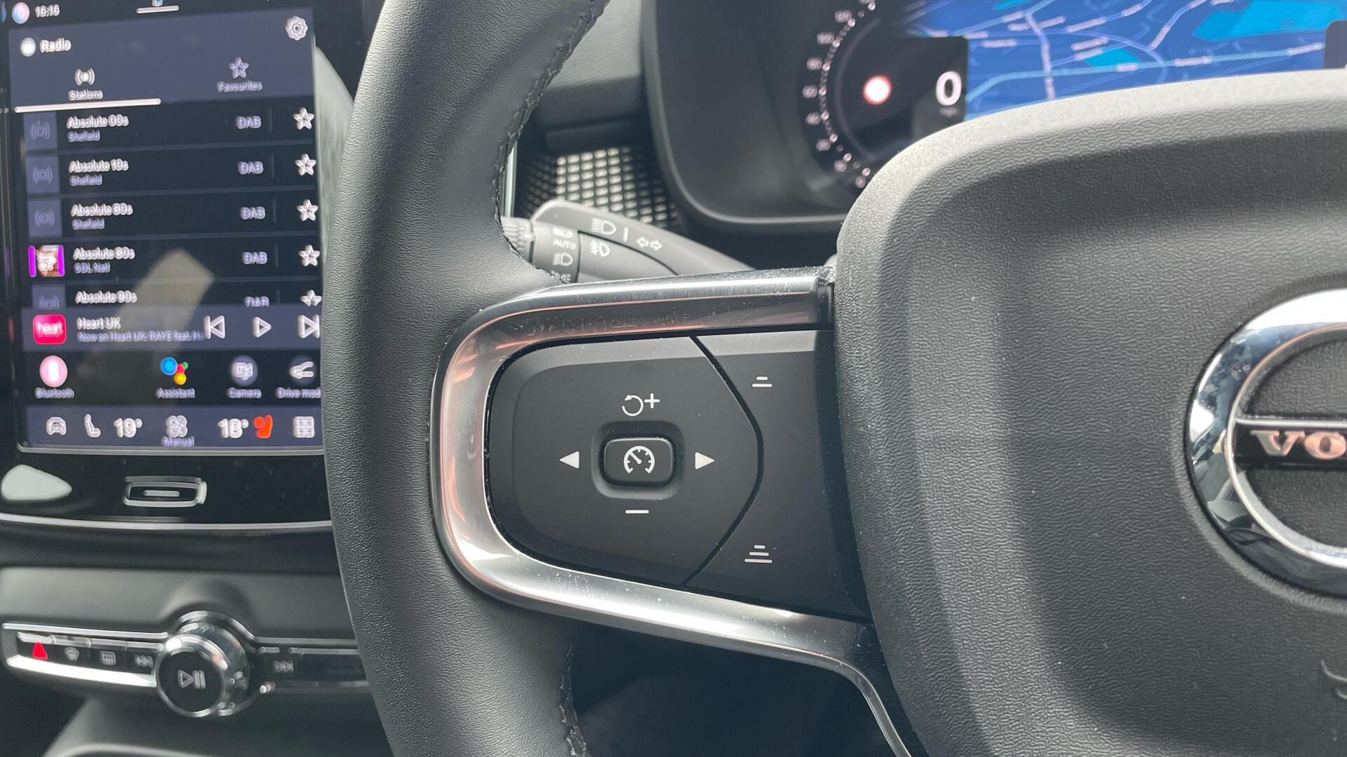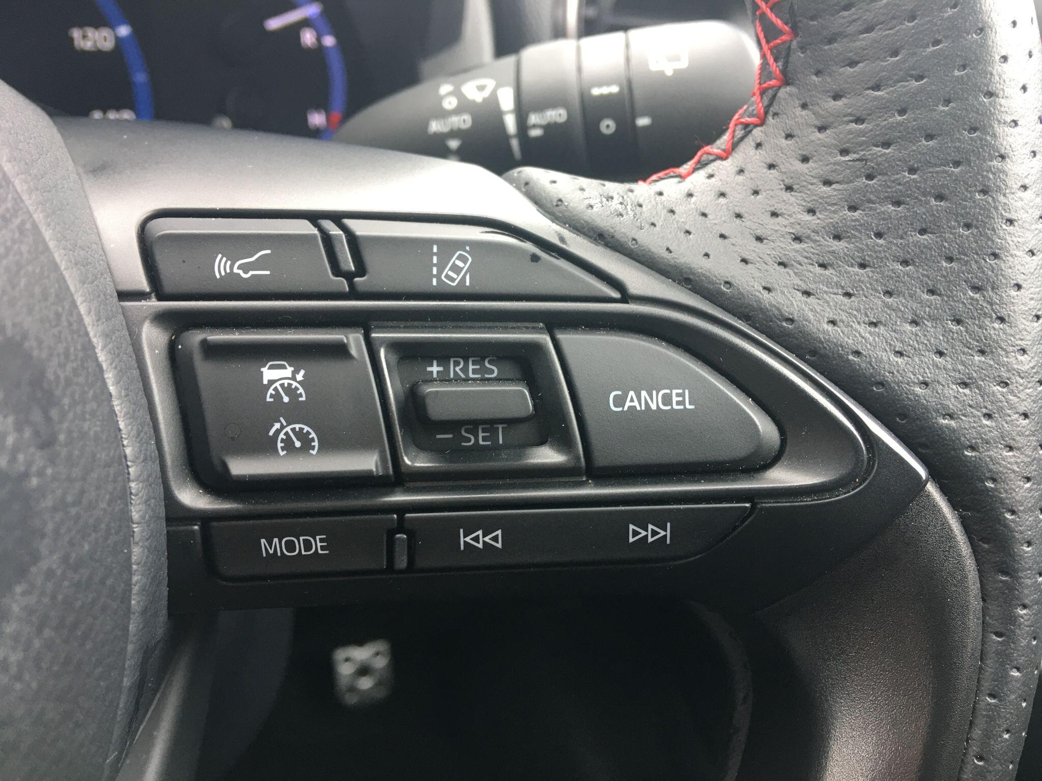"Cruise control switch behind steering wheel",