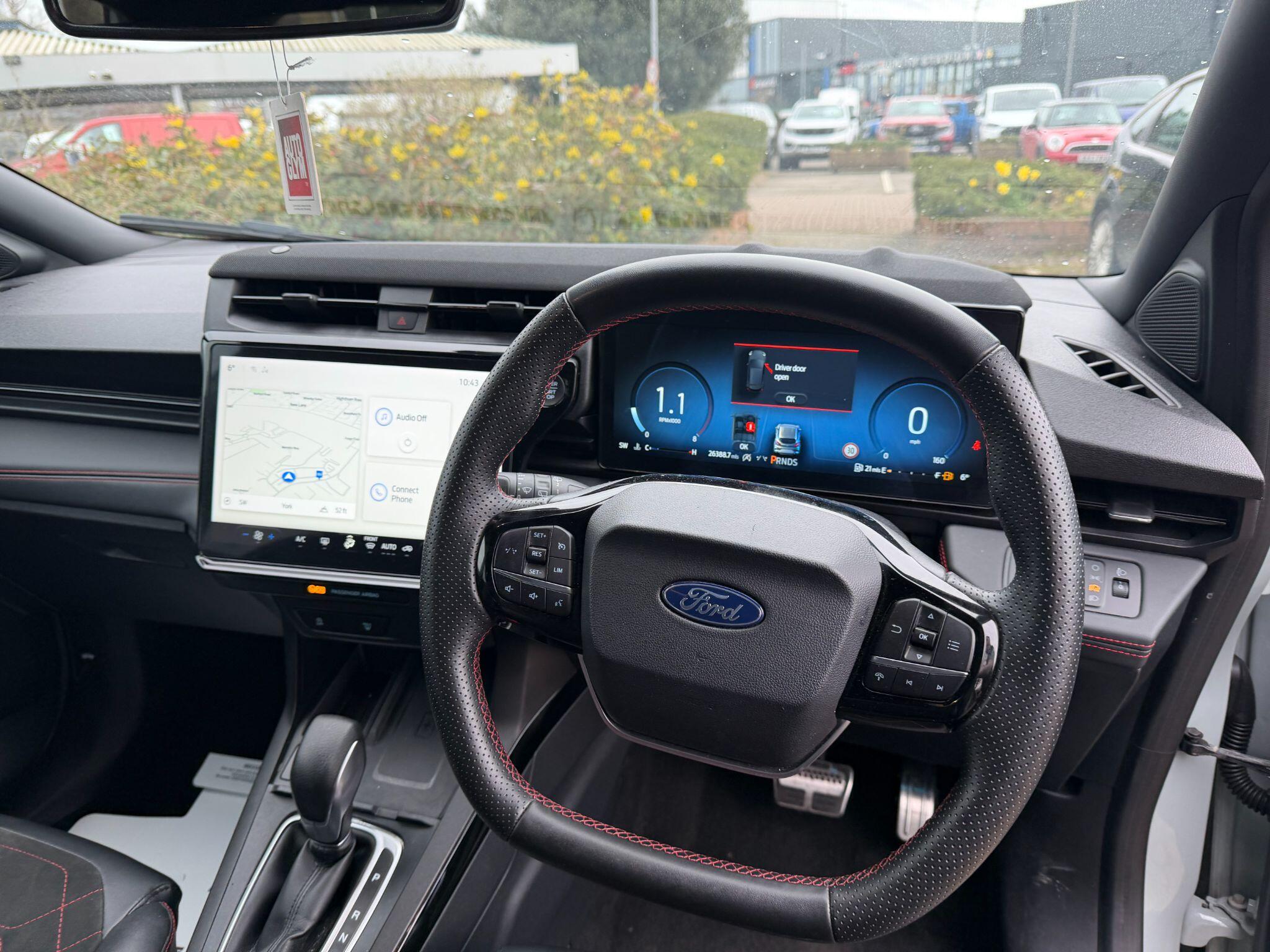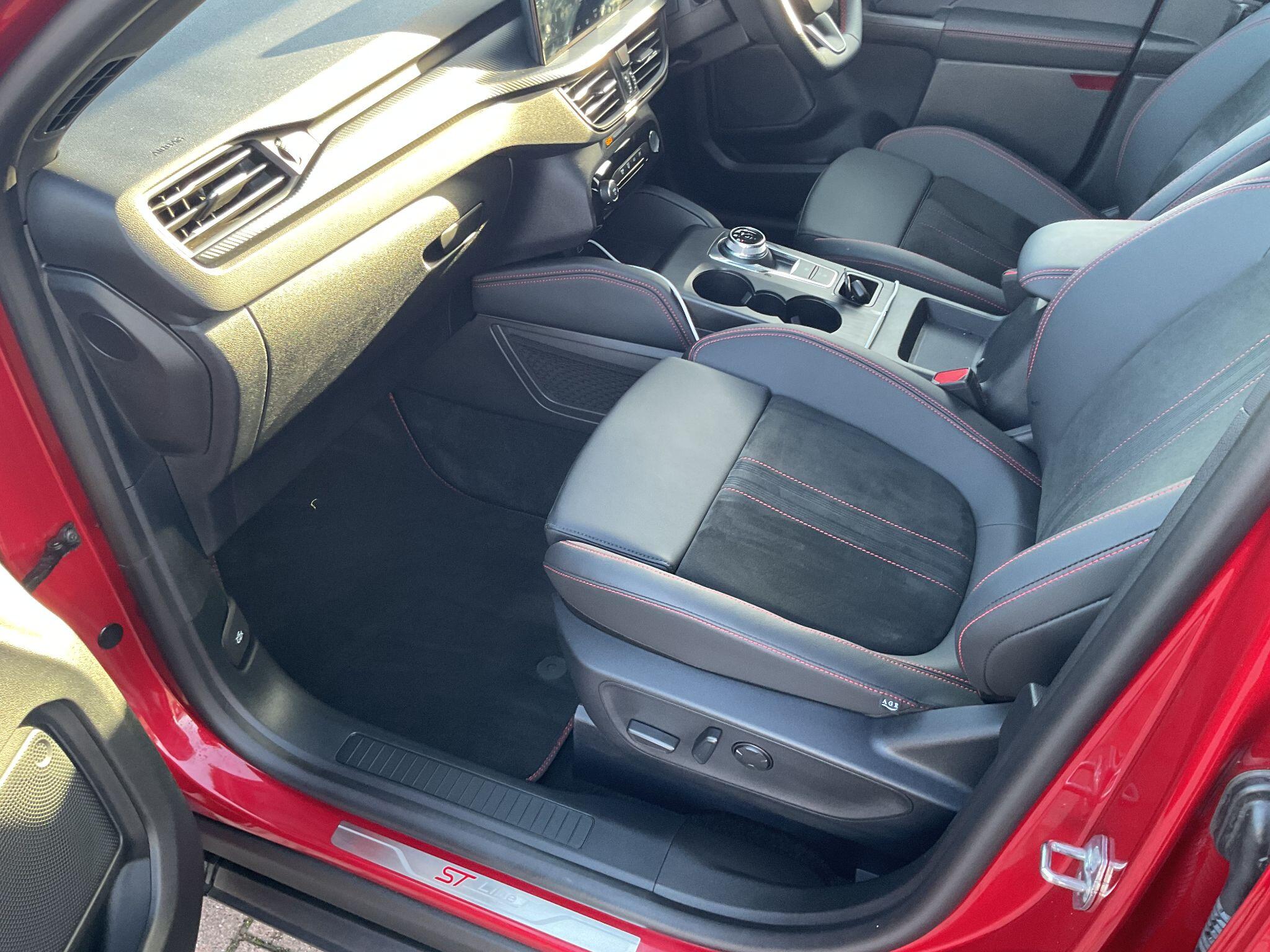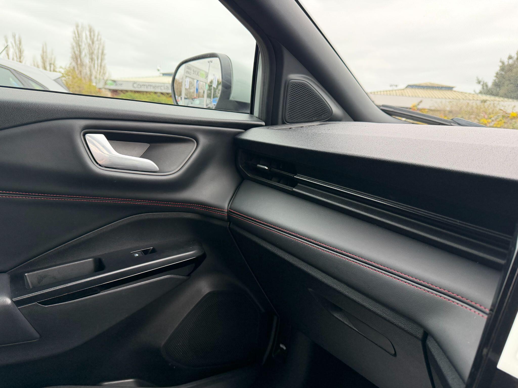 "features": "Cruise control, e-Call (emergency call), Easy fuel capless refuelling system, Ford SYNC 3 nav system with DAB radio,8\" screen, emergency assistance,Apple car play/Android auto, 2x USB, 6 speakers, Ford pass connect, Intelligent speed limiter, PAS, Rear parking sensors, Rear view camera, Traffic sign recognition, Trip computer, Sports suspension, Steering wheel mounted audio controls, Auto dimming rear view mirror, Automatic front wipers, Automatic headlights, Black roof rails, Body colour door handles, Body coloured bumpers, Chrome lower window surround, Electrically adjustable and heated door mirrors, Front fog lights, Front grille bars and surround in black, Headlight levelling control, Large rear roof spoiler, LED day running lights, LED third brake light, Power front and rear windows, Puddle lights, Quick-clear heated windscreen, Rear side wing doors, Rear wiper, ST Line body styling kit - Black headlamp bezel, front and rear sport bumpers, body colour lower door claddings, 12V socket in front and rear, 3 seat bench in 2nd row, 60/40 split rear seats, Ambient lighting, Centre console with sliding front armrest, Cooled glovebox, Courtesy lights with map reading light, Driver seat height/lumbar adjust, Driver's side glovebox, Driver/passenger sunvisors and lidded vanity mirrors, EATC - Electronic Auto Temperature control, Folding grab handles, Front head restraints, Front seat back map pockets, Illuminated glovebox, Illuminated luggage compartment, Isofix system on outer rear seats, Luggage compartment carpet, Neosuede/Partial sensico leather upholstery, Overhead console with sunglasses holder, Rake adjustable rear seats, Reach + rake adjustable steering column, Rear headrests, Sensico trimmed steering wheel, handbrake and gearshift gaiter with red stitching, Single front passenger seat, ST-Line Front floor mats with red stitching, Stainless steel sports pedals, Storage drawers under front seats, Tie down hooks, Variable boot floor, 3x3 point rear seatbelts, ABS, Autonomous emergency braking, Child locks on rear doors, Curtain airbags, Driver airbag, Drivers knee airbag, Electronic Stability Programme with hill launch assist, Front passenger airbag deactivation, Front side airbags, Passenger airbag, Pre collision assist system with AEB, Seatbelt reminder for driver and front passenger, Traction control, Tyre pressure monitoring system, Immobiliser, MyKey system, Remote central locking, Thatcham 1 volume sensing alarm, Low rolling resistance tyres, Tyre inflation kit, ",