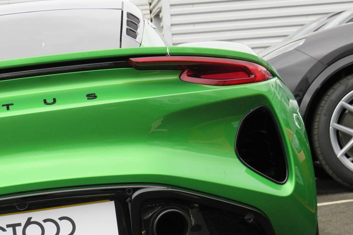 "Exhaust tailpipes in dark chrome",