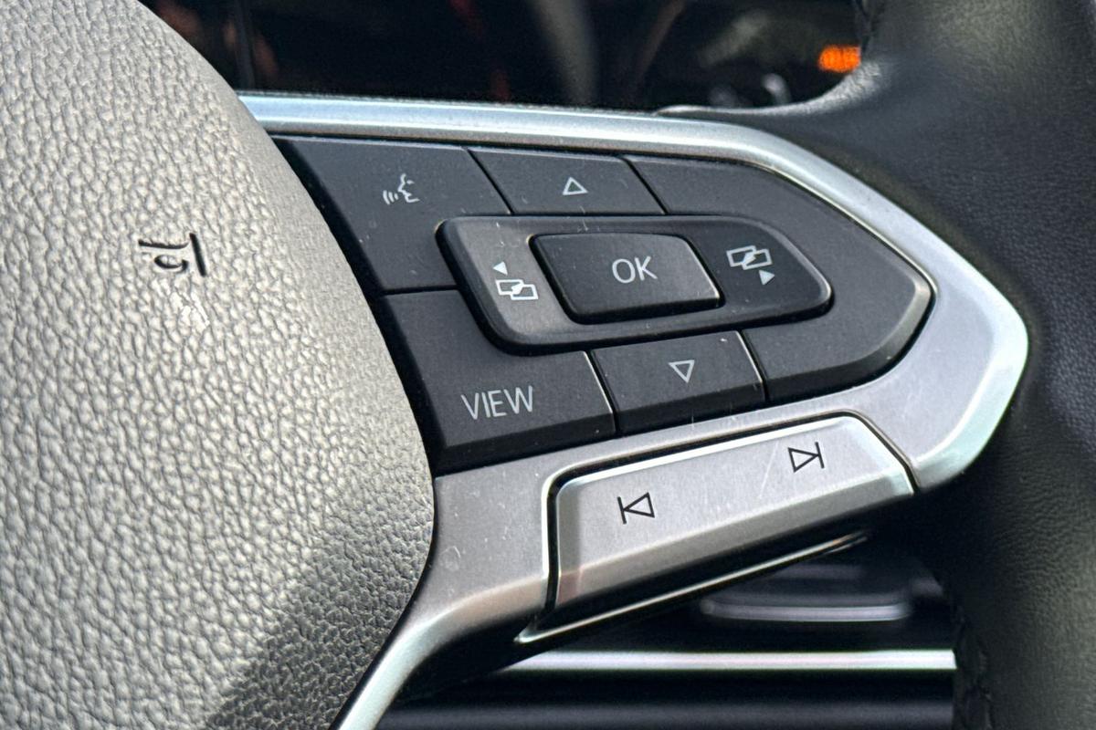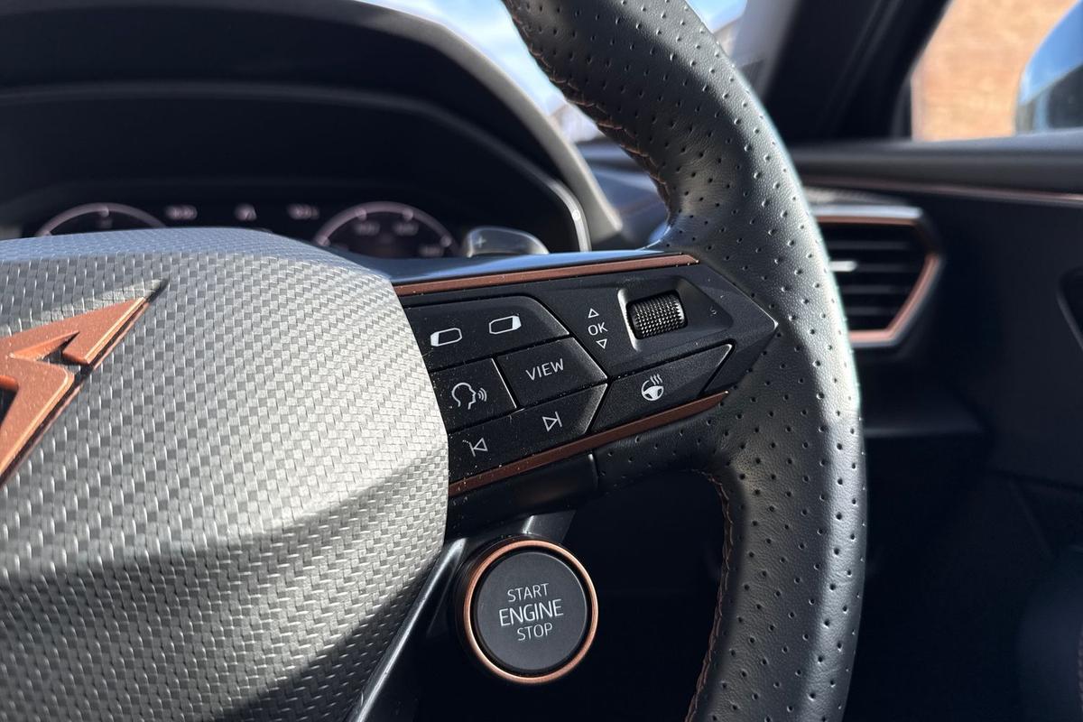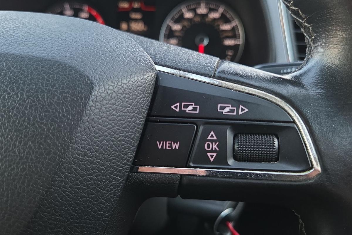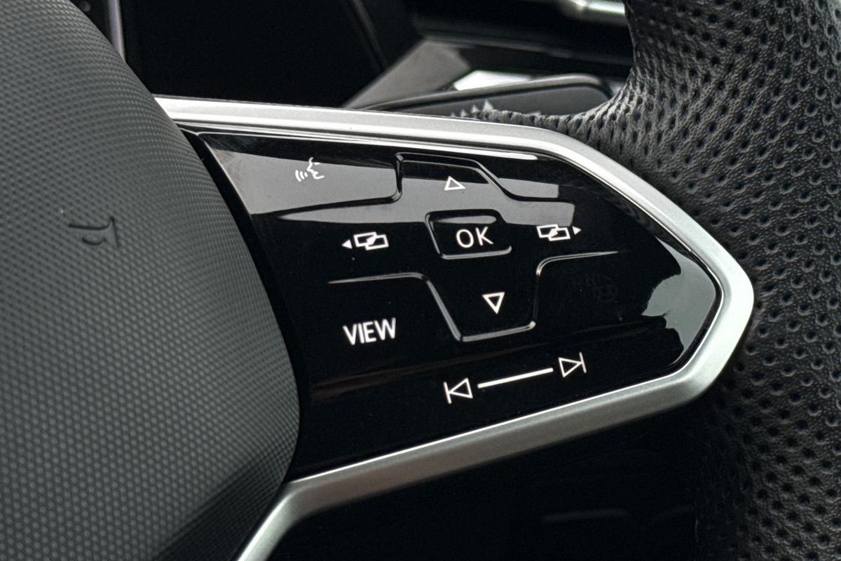 "3 spoke leather trimmed multi-function steering wheel with height and reach adjustable",
