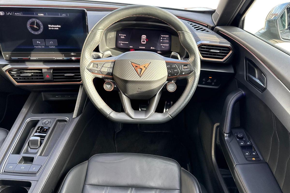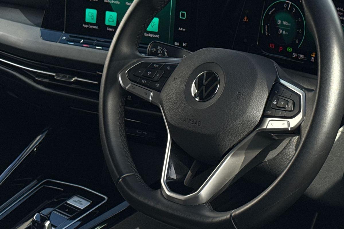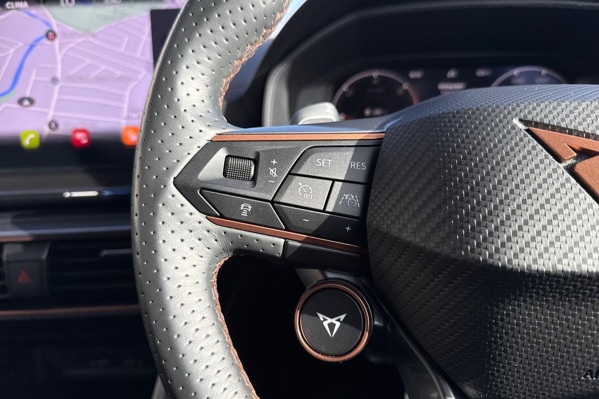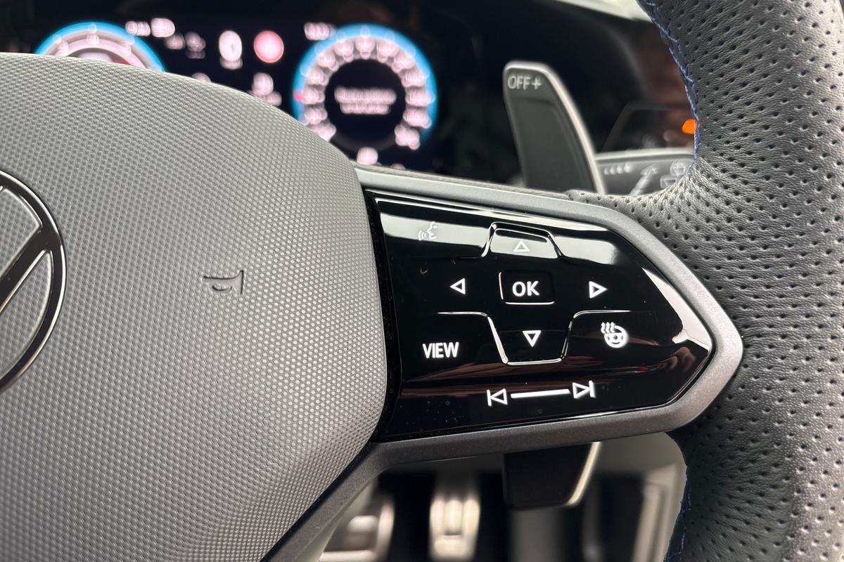 "3 spoke leather trimmed multi-function steering wheel with height and reach adjustable",
