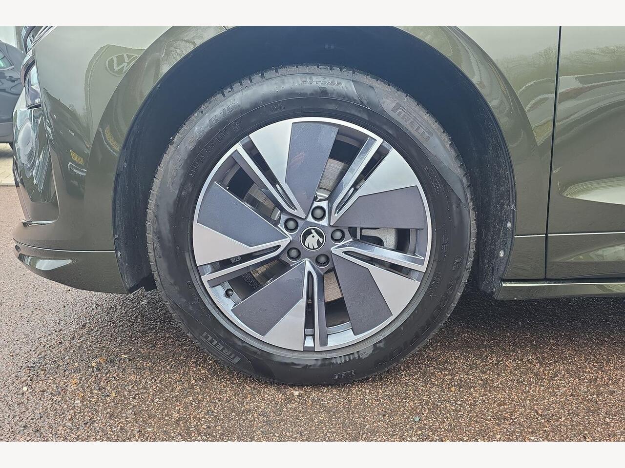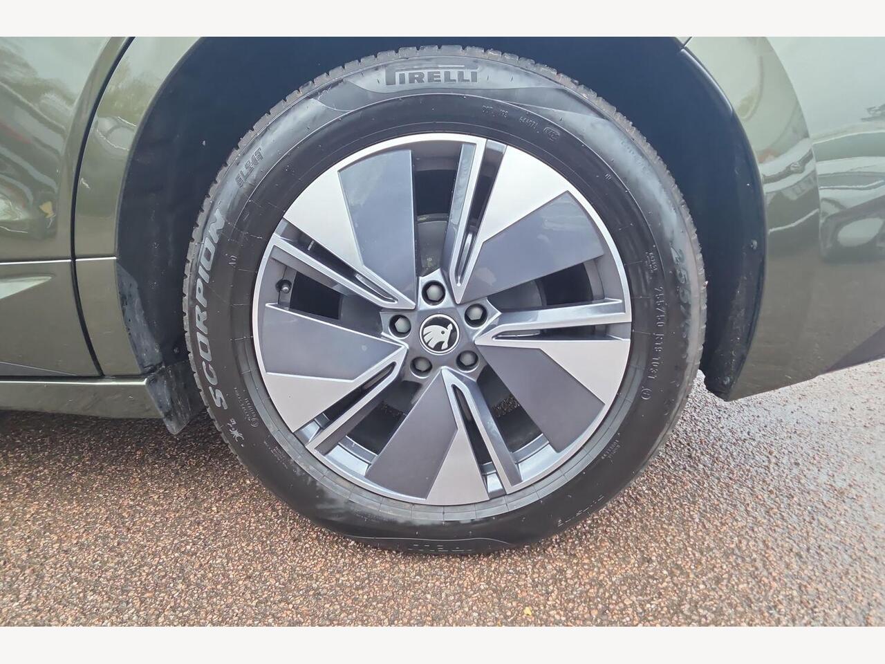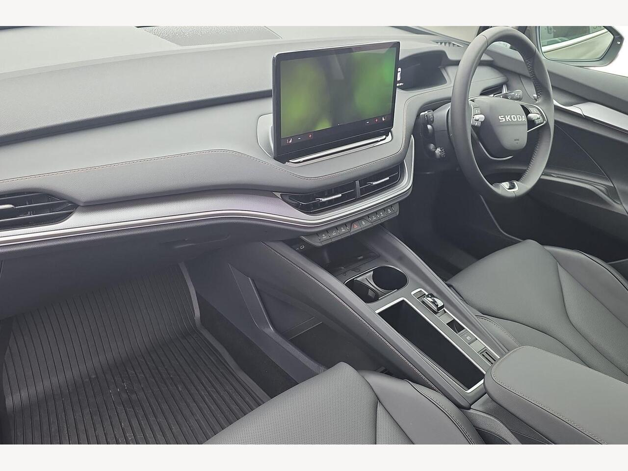 "features": "13\" touchscreen display, 15W wireless charging with cooling function, 5\" Digital cockpit, Blind Spot Detection (BAS), Bluetooth system, Drive mode selector, Driver alert system, E-call, Electrically operated tailgate with kick activation (virtual pedal), Electronic engine sound, Emergency steering support with turn assist, Exterior temperature indicator, Front and rear parking sensors, Front assist with assisted automatic braking to vehicles, pedestrians and cyclists, Gesture control, Power assist steering, Predictive adaptive cruise control with traffic jam assist, Rear view camera, Satellite navigation system, Skoda Connect iV remote services with charging, air conditioning and smart schedules, Speed assist, Speed limiter, Traffic sign recognition, Travel assist plus with emergency assist, lane assist plus with narrow lane assist and urban evasive steering support, Voice control system, Washer fluid level indicator, Wi-Fi hotspot, Wireless smartlink, 135 kW DC charging, 6m mode 3 cable (32A), 45W USB-C ports (charging + data) front and rear, 8 Speakers, DAB Digital radio, Auto dimming rear view mirror, Body colour door mirrors and handles, Body colour door sills, Dashboard and door moulding light in multiple colours, Door mirror memory, Dynamic headlight range control with cornering light function, Electric adjustable heated folding door mirrors with boarding spots and welcome logo, Electric front and rear windows, Full LED Matrix beam headlights with variable light distribution, Heat insulating darkened glass in side and rear windows, Heat insulating glass in windshield, Integrated fog light with all-weather function, LED daytime running lights, LED rear lights with animated indicators, LED third brake light, Light assistant (coming and leaving home), Panoramic glass roof, Privacy glass and acoustic side windows, Radiator grille in matt black with chrome surround, Rain and light sensors, Rear side wing doors, Rear wiper, Safety reflectors on front and rear doors, Sports bumpers, Unique dark chrome side window surrounds, Variable front intermittent wipers, 12V socket in boot, 1x umbrella, 2 spoke black leather heated multi function steering wheel with paddles for recuperation level selection, 3 rear headrests, 3 seat bench in 2nd row, 60:40 foldable rear seat with sliding adjustment and backrest angle adjustment, Black textile floor mats with black stitching, Boot lighting, Electrically adjustable driver seat with memory function, Extended interior noise suppression, Fabric/artificial leather upholstery, Folding boot cover, Front courtesy lights, Front headrests, Front reading lights, Grey fabric dashboard with grey stitching, Grey headlining, Heated front seats, Height adjustable drivers seat, Height adjustable front passenger seat, High centre console with armrest, Isofix child seat fittings in outer rear seats with top tether, Isofix child seat preparation for front passenger seat, Laminated soft-touch plastic knee rest, LED ambient lighting, Manual rear window blind, Manually adjustable steering column, Massage functionality for drivers seat, Pollen filter, Power adjustable lumbar front seats, Rear reading lights, Single front passenger seat, Sunvisors with illuminated vanity mirrors, Tri zone climate control, White front footwell lighting and door handle lighting, 3 point height adj front seatbelts + pretensioners, Auto door release and activation of warning lights in the event of an accident, Central interaction airbag, Crew protection assist, Driver and front passenger airbags, ESC (incl. ABS+MSR+ASR+EDS+HBA+DSR+RBS+MKB), Front and rear three point safety belt on all seats, Front disc brakes, Front passenger airbag deactivation switch, Front side airbags with curtain airbags, Height adjustable seatbelts, Power child locks, Rear drum brakes, Rear side airbags, Two tone horn, Tyre pressure monitor, Visual and acoustic seat belt reminder, Warning lights in front doors, Anti theft alarm system with interior monitoring, backup horn and towing protection, Central locking system with SAFE system, Keyless entry and start/stop system advanced with walk away locking, Brushed aluminium decorative inserts, Matte black lining around drive selector, Anti-theft wheel bolts protection, Tyre repair kit with compressor, ",