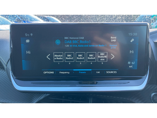 "Central facia display with digital clock, outside air temperature and audio information",