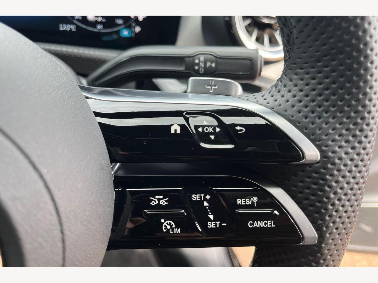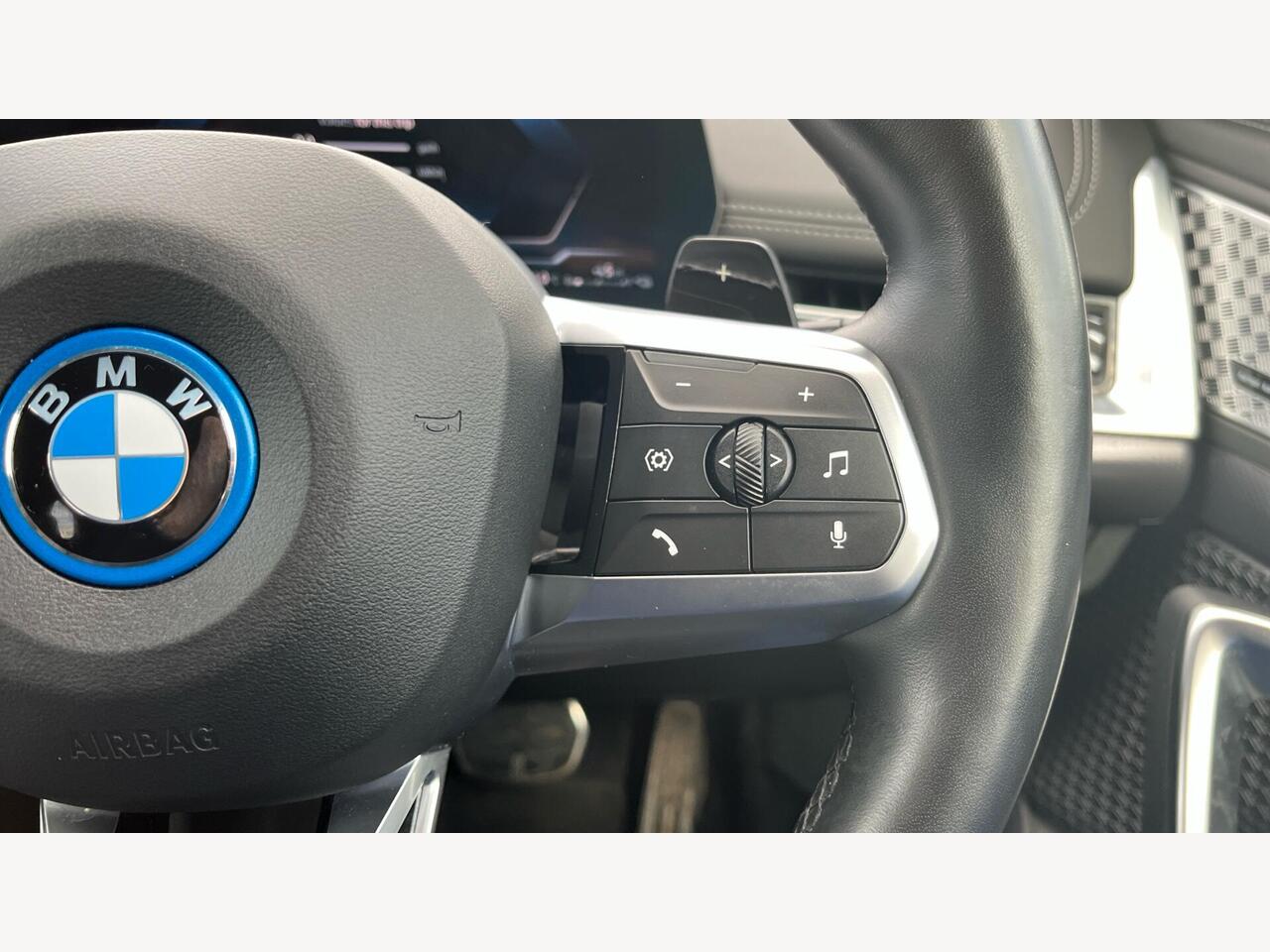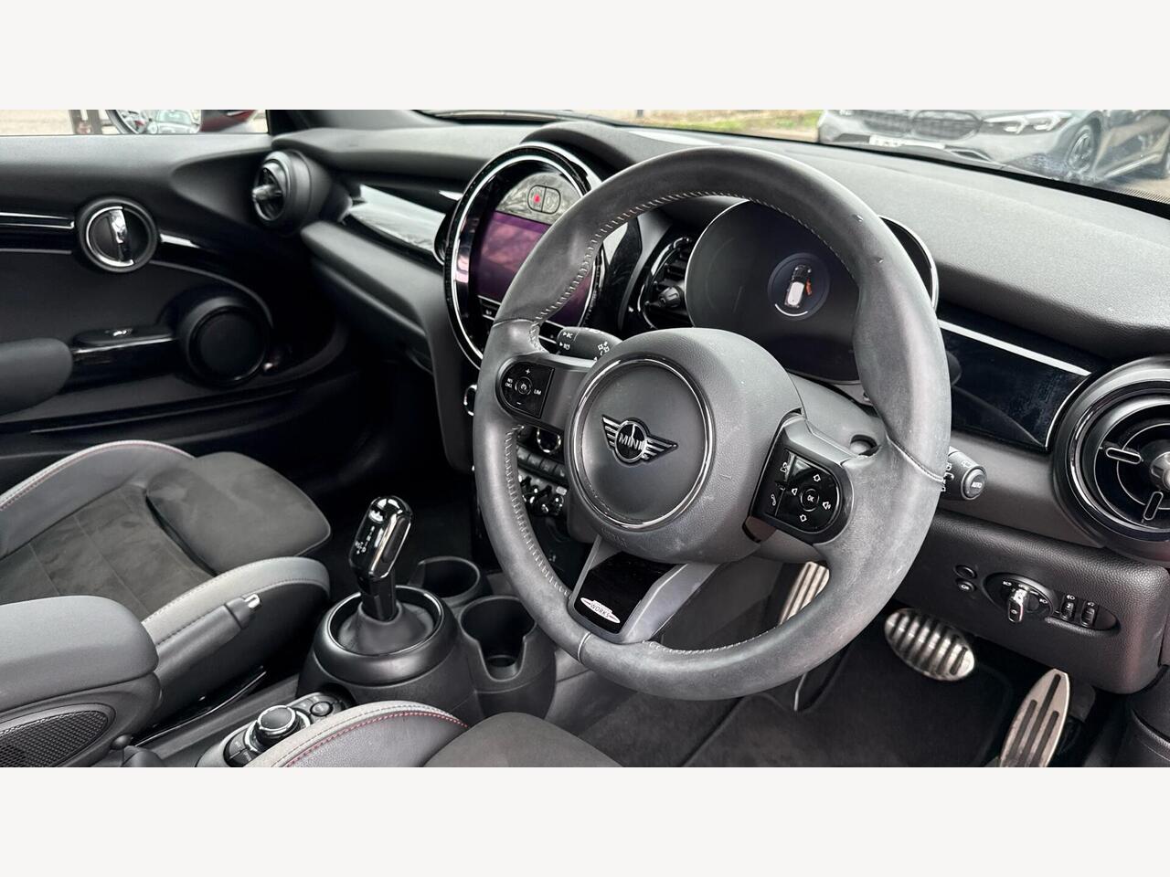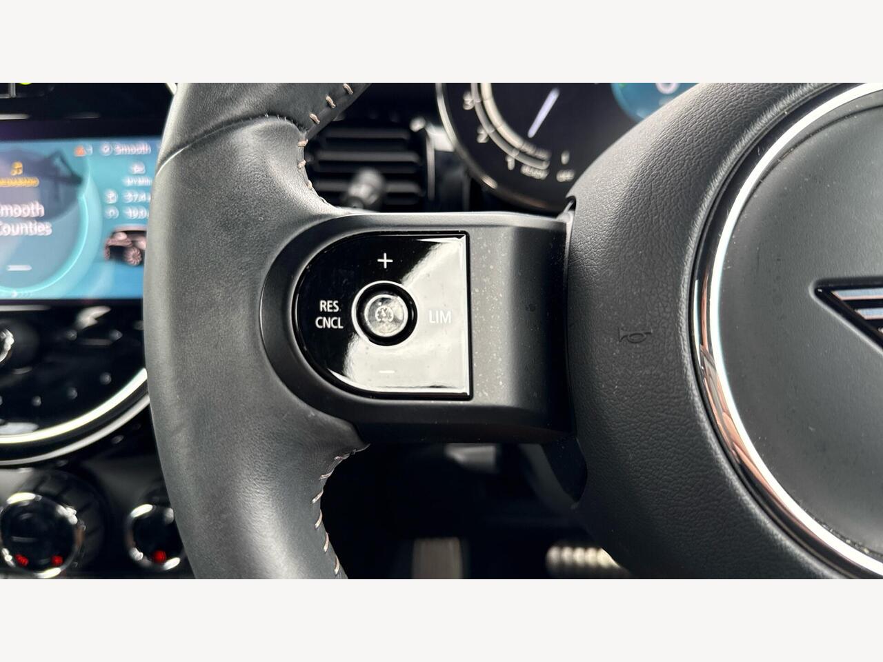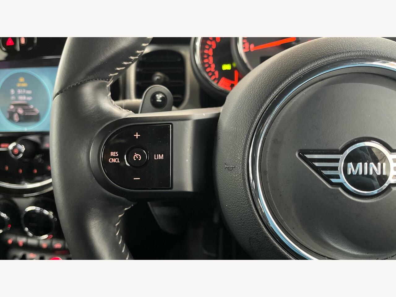 "3 spoke flat bottomed multi-function plus leather steering wheel with S badging, grips in preforated leather, contrast stitching and paddle shift",